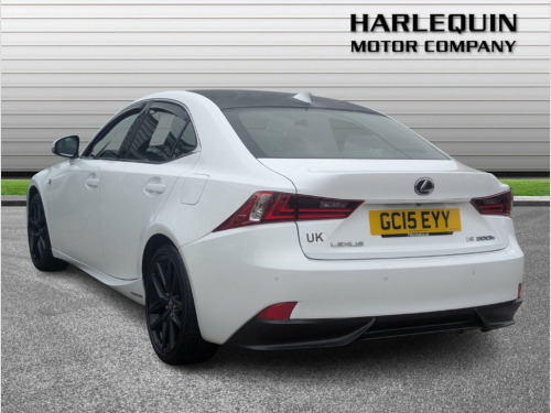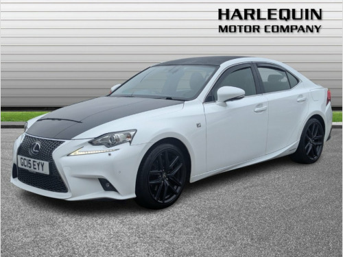 CLEAN AIR ZONE ALL CITYS THIS 2015 LEXUS IS 2.5 300h F SPORT 4 DOOR PETROL HYBRID 4 DOOR AUTOMATIC GLEAMING IN F SPORT WHITE WITH A BLACK BONNET AND ROOF WITH CONTRASTING HEATED 1/2 BLACK LEATHER INTERIOR FULL LEXUS SERVICE HISTORY BEING LAST SERVICED MAY 2025 9 SERVICE STAMPS BIG MEDIA SCREEN WITH SAT NAV BLUETOOTH AND AUX..DUAL AIR CON CRUISE CONTROL FRONT AND BACK PARKING SENSORS 18 INCH 5 DOUBLE SPOKE GLOSS BLACK ALLOYS CLEAN AIR ZONE FRIENDLY IN ALL CITYS 18in Alloy Wheels - 10 Spoke, ABS - Anti-Lock Braking System, Airbags - Curtain Front and Rear, Airbags - Driver, Airbags - Front Knee, Airbags - Front Side, Airbags - Manual Cut Off Switch, Airbags - Passenger, Airbags - Rear Passenger Side, Analogue Clock, Antenna in Rear Glass, Anti Theft System Alarm, Armrest - Front, Armrest - Rear, ASC - Active Sound Control, AUX Connection, BAS - Brake Assist System, Bluetooth Connectivity, Climate Control - Dual Zone, Colour Screen 7in, Console Knee Pad, Cruise Control, Cupholders x2 - in Rear Armrest, DAB Radio, Daytime Running Lights - LED, Door Mirrors - Electrical Foldable - Hea, Door Mirrors - Puddle Lights, Driving Modes - Normal-Eco-Sport-Comf