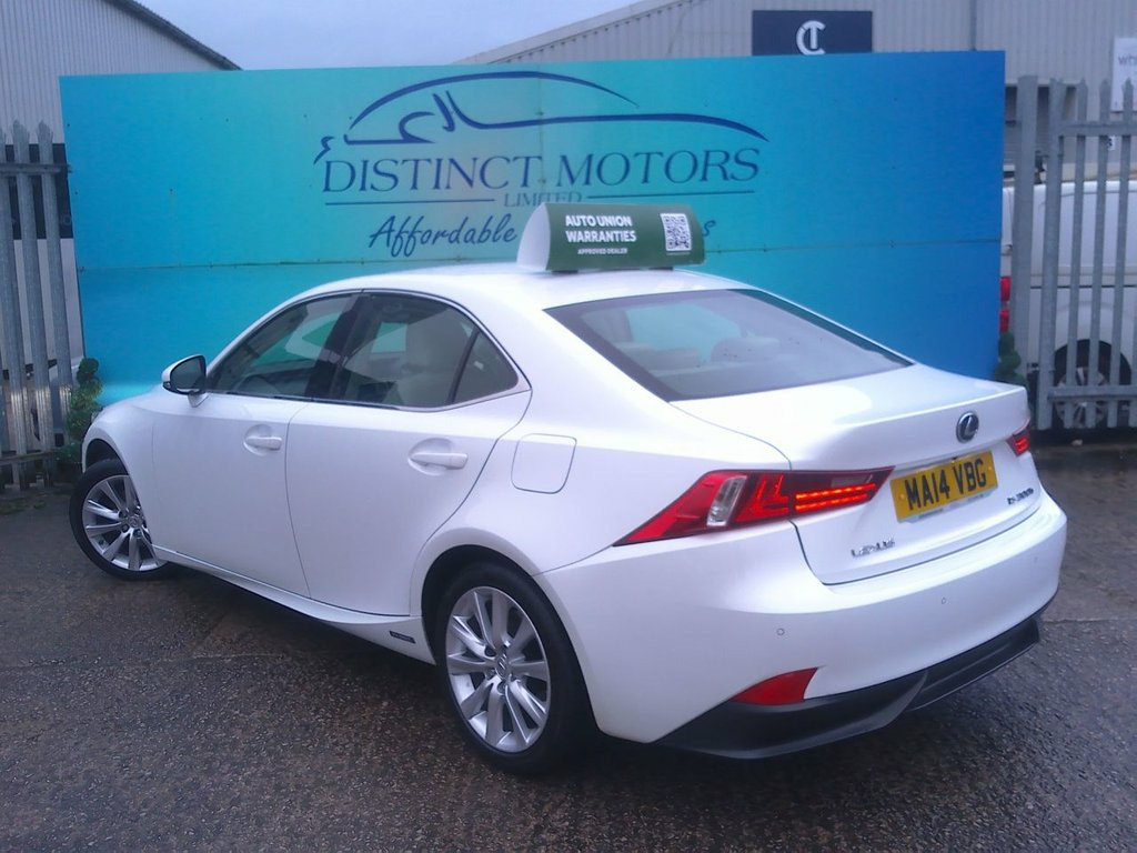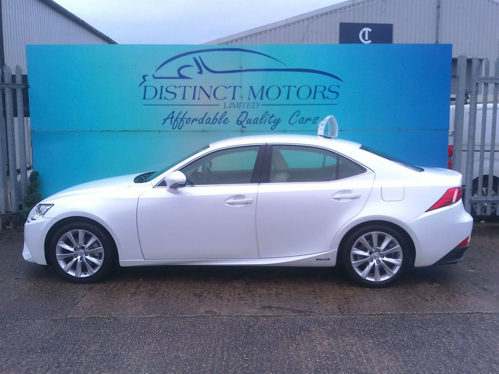 A WONDERFUL EXAMPLE TYPICALLY ECONOMICAL LEXUS IS LUCURY PETROL HYBRID AUTO EDITION IN PEARLESCENT WHITE OFFERED WITH 15 MONTHS NATIONWIDE WARRANTY FOR THIS WEEK ONLY FOR ADDED PEACE OF MIND!. WE ARE A FAMILY RUN BUSINESS WITH MOST OF OUR VEHICLES PURCHASED FROM REPUTABLE MAIN AGENTS AND WE PREPARE OUR VEHICLES TO THE HIGHEST OF STANDARDS WHICH IS WHY WE ARE CONFIDENT ENOUGH TO OFFER 15 MONTHS NATIONWIDE WARRANTY. ONLY 1 OWNER FROM NEW WITH EXCELLENT SERVICE HISTORY (7 LEXUS MAIN AGENT SERVICES LAST SERVICED AT 43K MILES), NEW MOT TO BE COMPLETED TO 01/27, 2 KEYS, FULLY HPI CLEAR WITH FULLY VERIFIED MILEAGE CHECKS COMPLETED TOO. BOTH THE INTERIOR AND EXTERIOR CONDITION EXCELLENT THROUGHOUT WITH GREAT SPECIFICATION INCLUDING ALLOY WHEELS, SAT-NAV, FULL HEATED LEATHER, BLUETOOTH, CLIMATE CONTROL, CRUISE CONTROL, DAB RADIO, FRONT AND REAR PARKING SENSORS, FRONT AND REAR ELECTRIC WINDOWS, REMOTE CENTRAL LOCKING, HEATED ELECTRIC MIRRORS AND MUCH MORE ! 17in Alloy Wheels, ABS - Anti-Lock Braking System, Airbags - Curtain Front and Rear, Airbags - Driver, Airbags - Front Knee, Airbags - Front Side, Airbags - Manual Cut Off Switch, Airbags - Passenger, Airbags - Rear Passenger Side, Analogue Clock, Antenna in Rear Glass, Anti Theft System Alarm, Armrest - Front, Armrest - Rear, ASC - Active Sound Control, AUX Connection, BAS - Brake Assist System, Bluetooth Connectivity, Climate Control - Dual Zone, Colour Screen 7in, Cruise Control, Cupholders x2 - in Rear Armrest, DAB Radio, Daytime Running Lights - LED, Door Mirrors - Electrical Foldable - Hea, Door Mirrors - Puddle Lights, Driving Modes - Normal-Eco-Sport-Comfort, EBD - Electronic Brakefo