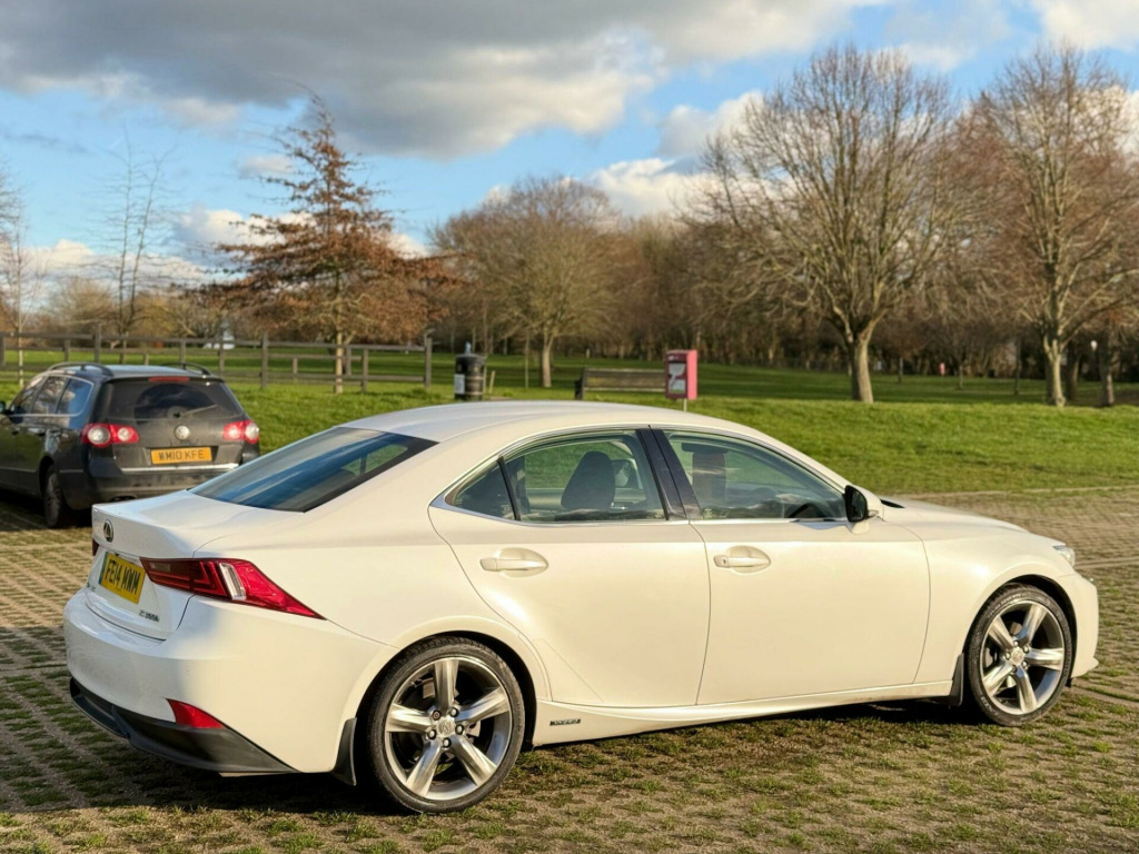 Lexus IS 2.5 300h Premier Saloon 4dr Mileage: 83,128 miles (Warranted)Fuel Type: Petrol HybridTransmission: Automatic (E-CVT)Colour: WhiteBody Type: Saloon (4dr)HPI Status: ClearULEZ Compliant / ULEZ FreePremier Specification & FeaturesAlloy WheelsAir ConditioningLuxury Interior FinishComfortable SeatsSmooth Hybrid DriveLow Running CostsVery EconomicalCondition & MechanicalMechanically PerfectEngine-wise powerful (223 ps combined output) and extremely smoothGearbox & suspension very smoothVery well maintained throughoutOverall ConditionThis Lexus IS 300h Premier looks & drives brilliant. A refined, comfortable and economical hybrid saloon offering strong performance with excellent fuel efficiency.Just buy & drive - truly superb throughout.Peace of MindHPI ClearWarranted MileageULEZ FreeFULL DEALER HISTORY, FRESH SERVICE, FRESH MOT, FREE BREAKDOWN COVER, NATIONWIDE DELIVERY AVAILABLEPart Exchange WelcomeView by Appointment OnlySummaryA well-maintained Lexus IS 300h Premier Automatic Hybrid, combining performance, luxury and efficiency.First to see will buy. in alloy wheels - 5 spoke, 5.1 ch surround system and auto volume system, abs - anti-lock braking system, asc - active sound control, aux connection, airbags - curtain front and rear, airbags - driver, airbags - front knee, airbags - front side, airbags - manual cut off switch, airbags - passenger, airbags - rear passenger side, alloy scuff plate, analogue clock, antenna in rear glass, anti theft system alarm, armrest - front, armrest - rear, bas - brake assist system, blind spot detection-monitor system, bluetooth connectivity, camera - rear view, climate control - dual zone, colour screen 7in, console knee pad, cruise control, cupholders x2 - in rear armrest, dab radio, dvd player, daytime running lights - led, door mirrors - electric adjustment - heated - electrochromatic - memory, door mirrors - electrically foldable - heated - electrochromatic, door mirrors - puddle lights, driving modes - normal-eco-sport-comfort-ev, dynamic route guidance, ebd - electronic brakeforce distribution, ecb - electronically controlled braking, electric windows - front and rear, electrochromatic rear view mirror, front fog lights, full map navigation - europe, glove box insert - grey wood, hac - hill assist control, headlights - dusk sensor, headlights - hid bi-xenon, headlights - washers, isofix child restraint system, immobiliser, lfa - style instrument meters, leather gear stick, lexus premium navigation system, mark levinson premium surround sound system, multimedia coordination function, puh - pop up hood, parking assistance - front sensor, parking assistance - rear sensor, power steering - electric, rain sensitive windscreen wipers, rear cross traffic alert, rear and brake light - led, remote touch interface, seats - 60-40 split folding rear, seats - drivers 2-way lumbar support, seats - front 8-way electric adjustment-heated-sports, seats - front heated and ventilated, seats - front height adjustment, seats - front memory settings, smart entry and start system, speakers x15, steering column - electric adjustment, steering wheel - 3 spoke leather, steering wheel - memory, steering wheel - paddle shift, tmc-tpeg - traffic information, tpws - tyre pressure warning system, trc - traction control system, tyre repair kit, usb input, vdim - vehicle dynamics integrated management, vsc - vehicle stability control, voice control capability, wi-fi connectivity ready