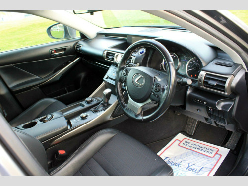 chans cars ltd is pleased to present yourself with this outstanding 2015 Lexus IS 2.5 300h SE Saloon 4dr Petrol Hybrid E-CVT With 52102 Miles, FULL Lexus Service History With 14 stamps,1 Previous Owner , MOT Until-19/11/2026 . £20 TAX/ YEAR , There are many Great features in this car like Sat-Nav to help you navigate To Places, Heated Seats Reverse Parking Sensors, ECO And Sports Mode Driving ,The Blue Tooth interface -Smart, safe and simple to use meaning you can stay connected all the time, lane Assist.. 16in Alloy Wheels, ABS - Anti-Lock Braking System, ASC - Active Sound Control, AUX Connection, Airbags - Curtain Front and Rear, Airbags - Driver, Airbags - Front Knee, Airbags - Front Side, Airbags - Manual Cut Off Switch, Airbags - Passenger, Airbags - Rear Passenger Side, Analogue Clock, Antenna in Rear Glass, Anti Theft System Alarm, Armrest - Front, BAS - Brake Assist System, Bluetooth Connectivity, Climate Control - Dual Zone, Colour Screen 7in, Cruise Control, DAB Radio, Daytime Running Lights - LED, Door Mirrors - Electrical Foldable - Heated, Door Mirrors - Puddle Lights, Driving Modes - Normal-Eco-Sport-Comfort-EV, EBD - Electronic Brakeforce Distribution, ECB - Electronically Controlled Braking, Electric Windows - Front and Rear, Front Fog Lights, Glove Box Insert - Black Gloss, HAC - Hill Assist Control, Headlights - Dusk Sensor, Headlights - HID Bi-Xenon, Headlights - Washers, ISOFIX Child Restraint System, Immobiliser, Leather Gear Stick, Lexus Display Audio - 1 CD, Multimedia Coordination Function, PUH - Pop Up Hood, Power Steering - Electric, Rear and Brake Light - LED, Remote Rotary Dial, Seats - Front Height Adjustment, Smart Entry and Start System, Speakers x6, Steering Column - Manual Adjustment, Steering Wheel - 3 Spoke Leather, Steering Wheel - Paddle Shift, TPWS - Tyre Pressure Warning System, TRC - Traction Control System, Tyre Repair Kit, USB Input, VDIM - Vehicle Dynamics Integrated Management, VSC - Vehicle Stability Control, Lexus Premium Navigation System, Parking Assistance - Front and Rear Sensor, Satellite Navigation - Lexus Navigation System. Full dealership history