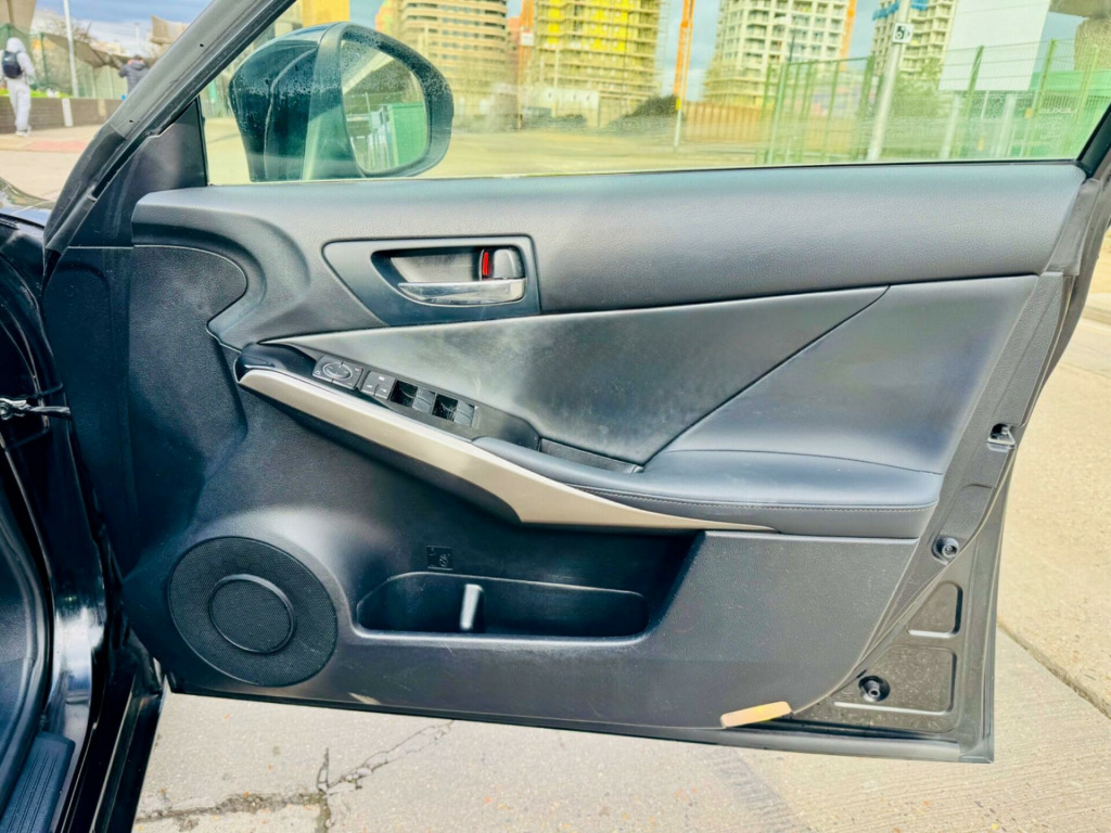 This 2014 Lexus IS 300h SE presents an exceptional opportunity with its remarkably low mileage of just 63,000 miles, especially for a vehicle of its age. This particular example has been cherished by only two owners and boasts a clear vehicle history check, offering peace of mind. Under the bonnet, you'll find an efficient 2.5 litre petrol hybrid engine, combining smooth performance with impressive economy. The SE trim level ensures a comfortable and convenient driving experience, enhanced by features such as dual zone climate control to keep everyone comfortable, and automatic dusk sensing headlights for effortless visibility.Further enhancing the appeal of this Lexus IS are its advanced Xenon HID Bi-Xenon headlights, providing superior illumination. The smart entry and start system, including keyless entry, adds a touch of modern convenience, while Bluetooth connectivity allows for seamless integration of your mobile devices. The low insurance group rating is a significant advantage, indicating that running costs for this stylish saloon are likely to be more affordable compared to many other vehicles in its class. These combined factors demonstrate that this Lexus IS 300h SE offers a superior ownership proposition.FINANCE AVAILABLE, you can apply finance on our website at www.carsealtd.co.uk, If your finance is approved, you can drive the car same day. Recently Mot and Serviced, ULEZ Qualified, Full Service Done, 1 year AA breakdown cover also available for complete peace of mind. Call for more info * Viewing by appointments available* Open 6-days a week Monday to Saturday, Warranty Supplied * P/X Welcome * 100% HPI Clear * VOSA * HPI * Experian Checked and Verified * 5 Days Drive Away Insurance Available * T&C's Apply. 100% Customer Satisfaction. Please call us for more information and to book an appointment to view the car. 1 year AA breakdown cover also available for complete peace of mind. Finance arranged. Please note All our cars attract £99 admin fee. OUR SHOWROOM ADDRESS: 10 Choats Road, Dagenham. RM9 6BF. Please VISIT OUR WEBSITE FOR MORE CARS AT hara cloth - black, 16in alloy wheels, abs - anti-lock braking system, asc - active sound control, aux connection, airbags - curtain front and rear, airbags - driver, airbags - front knee, airbags - front side, airbags - manual cut off switch, airbags - passenger, airbags - rear passenger side, analogue clock, antenna in rear glass, anti theft system alarm, armrest - front, bas - brake assist system, bluetooth connectivity, climate control - dual zone, colour screen 7in, cruise control, dab radio, daytime running lights - led, door mirrors - electrical foldable - heated, door mirrors - puddle lights, driving modes - normal-eco-sport-comfort-ev, ebd - electronic brakeforce distribution, ecb - electronically controlled braking, electric windows - front and rear, front fog lights, glove box insert - black gloss, hac - hill assist control, headlights - dusk sensor, headlights - hid bi-xenon, headlights - washers, isofix child restraint system, immobiliser, leather gear stick, lexus display audio - 1 cd, multimedia coordination function, puh - pop up hood, power steering - electric, rear and brake light - led, remote rotary dial, seats - front height adjustment, smart entry and start system, speakers x6, steering column - manual adjustment, steering wheel - 3 spoke leather, steering wheel - paddle shift, tpws - tyre pressure warning system, trc - traction control system, tyre repair kit, usb input, vdim - vehicle dynamics integrated management, vsc - vehicle stability control