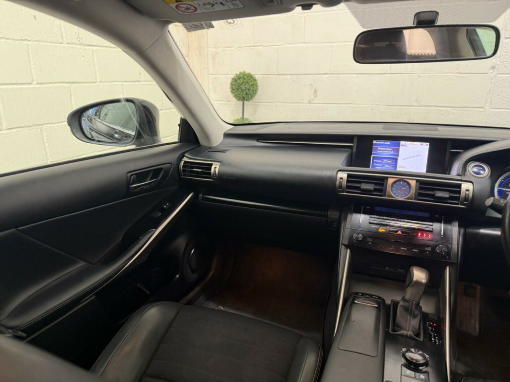 This 2014 Lexus IS 300h SE boasts a clear vehicle history, offering you peace of mind. This 2.5 litre petrol hybrid model comes with the SE trim and features automatic on dusk sensing HID Bi-Xenon headlights, dual zone climate control, and a smart entry and start system for effortless access. Stay connected on the go with Bluetooth connectivity.The Lexus IS 300h SE is designed to offer a superior driving experience. Its low insurance group rating indicates that running costs are kept competitive compared to similar vehicles. The combination of its efficient hybrid powertrain and the refined SE specification makes this a practical and sophisticated choice for everyday driving. in alloy wheels, abs - anti-lock braking system, asc - active sound control, aux connection, airbags - curtain front and rear, airbags - driver, airbags - front knee, airbags - front side, airbags - manual cut off switch, airbags - passenger, airbags - rear passenger side, analogue clock, antenna in rear glass, anti theft system alarm, armrest - front, bas - brake assist system, bluetooth connectivity, climate control - dual zone, colour screen 7in, cruise control, dab radio, daytime running lights - led, door mirrors - electrical foldable - heated, door mirrors - puddle lights, driving modes - normal-eco-sport-comfort-ev, ebd - electronic brakeforce distribution, ecb - electronically controlled braking, electric windows - front and rear, front fog lights, glove box insert - black gloss, hac - hill assist control, headlights - dusk sensor, headlights - hid bi-xenon, headlights - washers, isofix child restraint system, immobiliser, leather gear stick, lexus display audio - 1 cd, multimedia coordination function, puh - pop up hood, power steering - electric, rear and brake light - led, remote rotary dial, seats - front height adjustment, smart entry and start system, speakers x6, steering column - manual adjustment, steering wheel - 3 spoke leather, steering wheel - paddle shift, tpws - tyre pressure warning system, trc - traction control system, tyre repair kit, usb input, vdim - vehicle dynamics integrated management, vsc - vehicle stability control