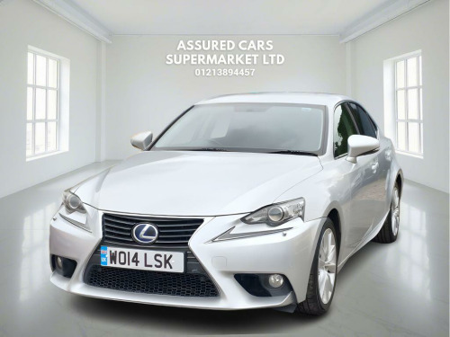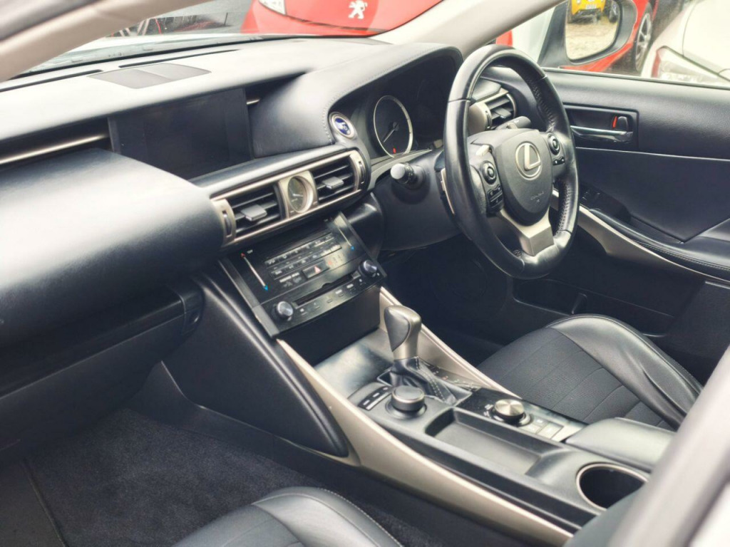 This 2014 Lexus IS 300h SE offers excellent peace of mind with its MOT valid until October 2026. This 2.5 litre petrol hybrid model combines efficiency with a smooth driving experience. It features a sophisticated SE trim level, equipped with HID Bi-Xenon headlights that automatically activate thanks to the dusk sensor, and a dual zone climate control system to keep all occupants comfortable. For convenience, the IS 300h SE includes a smart entry and start system, allowing for keyless entry and ignition, alongside Bluetooth connectivity for seamless phone integration.The Lexus IS 300h SE stands out with its low insurance group, suggesting more affordable running costs compared to similar vehicles. The inclusion of features like automatic headlights and dual zone climate control further enhances its appeal, demonstrating a thoughtful approach to driver and passenger comfort. This model represents a smart choice for those seeking a reliable and well equipped hybrid saloon.. 16in Alloy Wheels, ABS - Anti-Lock Braking System, ASC - Active Sound Control, AUX Connection, Airbags - Curtain Front and Rear, Airbags - Driver, Airbags - Front Knee, Airbags - Front Side, Airbags - Manual Cut Off Switch, Airbags - Passenger, Airbags - Rear Passenger Side, Analogue Clock, Antenna in Rear Glass, Anti Theft System Alarm, Armrest - Front, BAS - Brake Assist System, Bluetooth Connectivity, Climate Control - Dual Zone, Colour Screen 7in, Cruise Control, DAB Radio, Daytime Running Lights - LED, Door Mirrors - Electrical Foldable - Heated, Door Mirrors - Puddle Lights, Driving Modes - Normal-Eco-Sport-Comfort-EV, EBD - Electronic Brakeforce Distribution, ECB - Electronically Controlled Braking, Electric Windows - Front and Rear, Front Fog Lights, Glove Box Insert - Black Gloss, HAC - Hill Assist Control, Headlights - Dusk Sensor, Headlights - HID Bi-Xenon, Headlights - Washers, ISOFIX Child Restraint System, Immobiliser, Leather Gear Stick, Lexus Display Audio - 1 CD, Multimedia Coordination Function, PUH - Pop Up Hood, Power Steering - Electric, Rear and Brake Light - LED, Remote Rotary Dial, Seats - Front Height Adjustment, Smart Entry and Start System, Speakers x6, Steering Column - Manual Adjustment, Steering Wheel - 3 Spoke Leather, Steering Wheel - Paddle Shift, TPWS - Tyre Pressure Warning System, TRC - Traction Control System, Tyre Repair Kit, USB Input, VDIM - Vehicle Dynamics Integrated Management, VSC - Vehicle Stability Control.