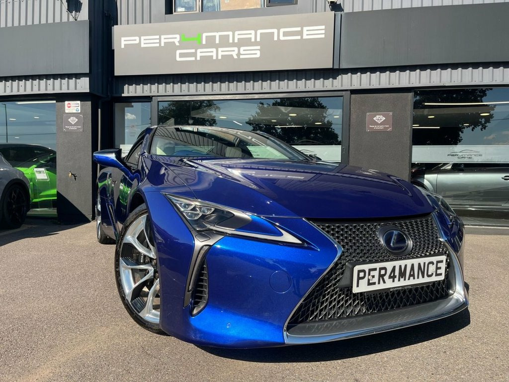 PER4MANCE CARS LIMITED ARE PLEASED TO OFFER THIS BEAUTIFUL FLAGSHIP LEXUS LC500 LIMITED EDITION COUPE (359PS) FINISHED IN STRUCTURAL BLUE METALLIC, THE CABIN IS PRESENTED IN A BREEZY BLUE COLOUR COMBINATION WITH MID BLUE ANLINE LEATHER FOR THE UPPER DOOR TRIMS, STEERING WHEEL, INSTRUMENT PANEL WITH CONTRASTING WHITE FINE LEATHER SEAT UPHOLSTERY AND VIVID ORANGE FOR THE GEAR LEVER SURROUND AND DOOR PANELS. ALCANTARA HEADLINING, LEXUS PREMIUM NAVIGATION WITH DAB AND BLUETOOTH, MARK LEVINSON SOUND SYSTEM WITH 14 SPEAKERS, 6 DRIVING MODES INCLUDING SPORT PLUS, ADAPTIVE CRUISE CONTROL,  FRONT AND REAR PARK ASSIST, 21" FORGED ALLOY WHEELS, GLASS MOON ROOF WITH SUN SHADE, PRIVACY GLASS, BI LED HEADLIGHTS, CARBON FIBRE SILLS WITH "LIMITED EDITION LETTERING", ALCANTARA HEADLINING, AUTO LIGHTS AND WIPERS, COMFORT SEATS, DUAL ZONE CLIMATE CONTROL, KEYLESS GO, HEATED FRONT SEATS, MEMORY SEATS AND MUCH, MUCH MORE...  THIS CAR MAY NOT BE ON SITE PLEASE CALL TO BOOK A VIEWING!                                           Full dealer facilities available, Finance available, please apply via our website or call for a quote. We have a team of experienced buyers who hand pick our cars from all parts of the UK so you can buy with confidence all vehicles are HPI Clear and prepared to the highest standard. We believe in providing our customers with a personal and first class level of service,Full dealer facilities available, Part exchanges welcomed. CONTACT OUR EXPERIENCED SALES TEAM O 1 Cup Holder in Centre Console, 12V Accessory Socket, 2-Tone Outside Mirror Casings, 21in Alloy Wheels - Forged, 2x Coat Hooks in Rear of Cabin, 2x USB Sockets, 3 Spoke Heated Leather Steering Wheel wi, 6 Driving Modes - Eco - Normal - Comfort, ABS - Anti-Lock Braking System, AUX Connection, Active Noise Control -ANC- System, Adaptive Cruise Control with Full Stop F, Adaptive Instrument Meter, Adaptive Variable Suspension - AVS, Alcantara Draped Inside Door Panels, Aluminium Sports Pedals, Analogue Clock, Antenna in Rear Glass, Anti Theft System - Alarm - Intrusion Se, Audible and Visual Seatbelts Reminder, Auto Dimming Rear View Mirror, Auto Door Locking, Auto Locate Tyre Pressure Warning S