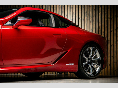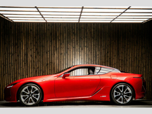 This 2018 Lexus LC 500h Sport Plus is a remarkable example, boasting exceptionally low mileage for its age at just 27,926 miles and having had only two owners. This striking coupe features a sophisticated 3.5 litre petrol hybrid engine, meeting Euro 6 emission standards. The Sport Plus trim enhances the driving experience with a suite of advanced technology, including Lexus Premium Navigation complete with rear camera and parking assistance. You'll also benefit from front and rear parking sensors, the comprehensive Lexus Safety System Plus with adaptive cruise control, and Bi-LED headlights that include an auto high beam and follow me home function. Access is made simple and secure with Smart and Easy Entry, offering keyless entry for ultimate convenience.The Lexus LC 500h Sport Plus offers a refined and technologically advanced driving experience. The inclusion of adaptive cruise control within the Lexus Safety System Plus demonstrates a commitment to driver assistance, setting it apart from many similar vehicles. Furthermore, the Bi-LED headlights with their automatic high beam and follow me home features provide enhanced visibility and safety, especially during night driving. The combination of its hybrid powertrain, premium navigation, and advanced safety features makes this 2018 Lexus LC a compelling choice for those seeking luxury, efficiency, and cutting edge technology.. 1 Cup Holder in Centre Console, 12-Speaker Pioneer Audio, 12V Accessory Socket, 2-Tone Outside Mirror Casings, 21in Alloy Wheels - Forged, 2x Coat Hooks in Rear of Cabin, 2x USB Sockets, 3 Spoke Heated Leather Steering Wheel with Magnesium Paddle Shifts, 6 Driving Modes - Eco - Normal - Comfort - Custom - Sport S - Sport +, ABS - Anti-Lock Braking System, AUX Connection, Active Noise Control -ANC- System, Adaptive Cruise Control with Full Stop Function, Adaptive Instrument Meter, Adaptive Variable Suspension - AVS, Alcantara Draped Inside Door Panels, Aluminium Sports Pedals, Analogue Clock, Antenna in Rear Glass, Anti Theft System - Alarm - Intrusion Sensor - Tilt Sensor - Glass Breakage Sensor and Engine Immobiliser, Audible and Visual Seatbelts Reminder, Auto Dimming Rear View Mirror, Auto Door Locking, Auto Locate Tyre Pressure Warning System, Autonomous Emergency Braking, BAS - Brake Assist System, BSM - Blind Spot Monitor System with RCTA - Rear Cross Traffic Alert, Bi-LED Headlights with Auto High Beam System and Follow Me Home Function, Bluetooth Mobile Phone Connectivity, Carbon Fibre Roof, Carbon Fibre Sheet Moulding Inner Door Panels and Inner Boot Lid, Centre Armrest with Storage, Curtain Shield Airbags - Front and Rear, DAB Radio, DRS - Dynamic Rear Steering, Daytime Running Lights - LED, Driver and Front Passenger 2-Stage Airbags, Driver and Front Passenger Knee Airbags, Driver and Front Passenger Side Airbags, Driver and Passenger 8-Way Electrically Adjustable Front Seats, Driver and Passenger Door Pocket, Dual Zone Climate Control Air Conditioning System, ECB - Electronically Controlled Braking, EPB - Electronic Parking Brake, EPS - Electric Power Steering - Speed Sensitive with VGRS - Variable Gear Ratio Steering, EV Mode, Easy Entry and Exit Facility, Electric Boot Lid Release, Electric Fuel Cap, Electrically Adjustable Steering Column with Lock Protect, Fixed Rear Seat, Front Electric Windows with Auto Up and Down Function, Front and Rear Aero Ducts, Glove Box Illumination - LED, HAC - Hill Assist Control with Hold Switch, Headlight Cleaners, Headlights - Auto Leveling, Heated - Auto-Dimming - Auto-Folding Outside Mirrors with Memory Function - Reverse Tilt Function - Turn Indicators, ISOFIX Child Restraint System on Rear Outer Seats, Instrument Panel Multi Information Display 8in TFT, Instrument Panel and Door Trim Illumination, LED Cornering Lights, LED Door Illumination, LED Interior Illumination, LED Multi Bulb Indicators, LED Rear Combination Lights with Emergency Brake Signal, Leather Gear Lever, Lexus Premium Navigation, Lexus Safety System Plus, Locking Wheel Nuts, Luggage Storage Tray Under Deck Board to Right Side, Memory Function for Driver, PUH - Pop Up Hood, Parking Sensors - 4x Front and 4x Rear, Passenger Airbag Cut Off Switch, Privacy Glass - Rear Quarter and Back, Push Start Button, Rain Sensitive Windscreen Wipers, Rear Fog Light, Retractable Rear Spoiler, Roof Mounted LED Brake Light, Scuff Plates - Carbon Fibre, Seat Belts with Pre-Tensioners - 3-Point, Seats - Front 2-Way Electric Lumbar Support, Seats - Front Heated and Ventilated, Smart and Easy Entry, Sport Seats, Steering Wheel Mounted Controls, Sun Visors for Driver and Passenger with Vanity Mirror and Lamp, TRC - Traction Control System, Textile Carpet Mats, Torsen Limited Slip Differential, Two Motion Door Lock - Double Lock, Ultra Violet and Heat Insulating Tinted Glass, VDIM - Vehicle Dynamics Integrated Management, VSC - Vehicle Stability Control, Window Etching.