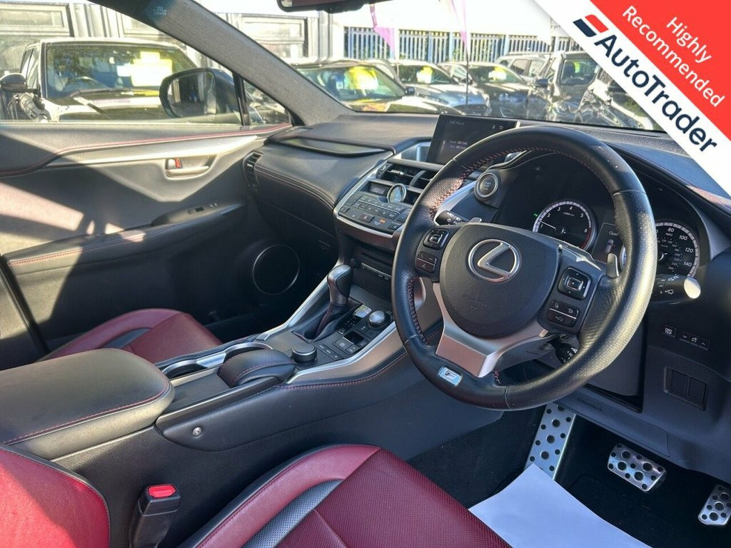 This 2015 Lexus NX 200t F Sport, with a clear vehicle history check and a recent service completed on 13th September 2024 at 91,439 miles, offers a compelling blend of luxury and performance. Powered by a 2.0 litre petrol engine and featuring Four Wheel Drive, this Euro 6 compliant model ensures a capable and efficient drive. The F Sport trim enhances the experience with a striking design and a host of premium features, including a fixed Panoramic Roof for an airy cabin, a Lexus Media Display with Bluetooth connectivity and a branded sound system for your entertainment, and distinctive 3 eye shaped LED headlights for superior visibility. Comfort is also paramount, with heated front seats and the Convenience Pack adding practical touches like wireless phone charging. The Lexus NX 200t F Sport stands out with its impressive acceleration, achieving 0 to 60 miles per hour in just 7.1 seconds, demonstrating its dynamic capabilities. These highlights, such as the advanced LED lighting and the integrated technology, position this vehicle as a superior choice compared to others in its class, offering a refined and technologically advanced driving experience that is characteristic of the Lexus brand. 12V Accessory Port Centre Console and Lu, 18in Alloy Wheels - F Sport - Contrast B, 2 Map Pockets in the Rear, 2 x Fixed Shopping Bag Hooks in Boot, 2 x ISOFIX Child Rear Seat Restraints, 2-Way Electrical Lumbar Adjustment for D, 2x Sun Visors with Vanity Mirror and Lam, 3-eye Shaped LED Headlights, 4.2in - Colour Multi Display TFT, 6 x Tie Down Hooks in Boot, 60-40 Split Folding Rear Seat with Locki, ABS - Anti-Lock Braking System, Adaptive Cruise Control with Pre-crash S, Airbags - Driver Knee, Analogue Clock, Antenna Shark Fin Design, Anti Theft System - Alarm - Intrusion Se, ASC - Active Sound Control, Audible and Visual Seatbelts Reminder, Auto Dimming Rear View Mirror, BAS - Brake Assi