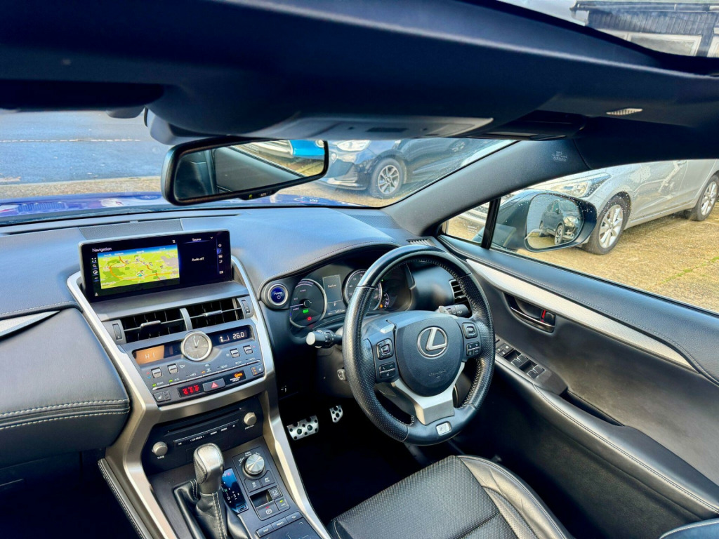 |||| THE USED CAR: |||| Pavillion Car Sales is pleased to offer an excellent example of a Lexus NX 300h in the F Sport Trim!This sleek Blue premium executive SUV is very well equipped with lots of great features including Panoramic Glass Roof, Primier Pack, 18inch Machine Faced Alloys, F Sport Preforated Heated Sport Seats, dual-zone climate control with S Flow, Lexus Safety System Plus with adaptive cruise control, a reversing camera with back guide lines, rear parking sensors, and a convenience pack with wireless phone charging, and more. The 2.5L naturally aspirated Petrol Hybrid engine delivers an impressive 54.3 miles per gallon, while boasting 194 horsepower. With as little as £195 annual road tax and ULEZ compliance, this practical and economical choice invites you for a test drive. The NX300H makes for a great car, it offers great economy, impressive build quality and most importantly, unrivalled reliability and durability. |||| THE HISTORY: |||| Well MaintainedHaving only 1 FORMER KEEPER, this used car has been well maintained inside and out. A thorough mechanical inspection has been carried out, and MOSTLY MAIN DEALER SERVICE HISTORY is provided. (7 Total Services, 5 Main Dealer) at 1st at 9803, 2nd at 52764, 3rd at 61267, 4th at 73150, 5th at 84991, 6th at 85891, 7th at Current Mileage.|||| WHAT'S INCLUDED: |||| Benefits & Peace of MindExperience peace of mind with a NEW MOT, 12 months complimentary AA breakdown cover, and a 3-month warranty extendable to a nationwide 36 months with the AA. 5-day drive-away cover is available, and we can assist with road tax. 3 KEYS!|||| ABOUT US: |||| The Family Run & Award-Winning Used Car DealershipWelcome to Pavillion Car Sales – a multi-award-winning, family-run car dealership with over a decade of expertise; we have used cars for sale in Brighton & Crawley. As an AA-authorised & Trading Standards-approved used car dealership, we're committed to offering high-quality second-hand vehicles for sale at competitive prices. PAVILION CAR SALES – Crawley. 12V Accessory Port Centre Console and Luggage Compartment, 18in Alloy Wheels - F SPORT Design, 2 Map Pockets in the Rear, 2 x Fixed Shopping Bag Hooks in Boot, 2 x ISOFIX Child Rear Seat Restraints, 2-Way Electrical Lumbar Adjustment for Driver, 2x Cup Holders in Centre Console, 2x Sun Visors with Vanity Mirror and Lamp, 3-Beam LED Headlights with Adaptive High Beam System, 4 Driving Modes - Normal - EV - Eco and Sport, 6 Stage Sequential Shift and Kick Down Switch, 6 x Tie Down Hooks in Boot, 60-40 Split Folding Rear Seat with Locking Function, ABS - Anti-Lock Braking System, ASC - Active Sound Control, AUX Socket with VTR Compatibility, Airbags - Driver Knee, Analogue Clock, Anti Theft System - Alarm - Intrusion Sensor - Tilt Sensor - Glass Breakage Sensor and Engine Immobiliser, Auto Dimming Rear View Mirror, BAS - Brake Assist System, Black Outside Mirror Covers, Bluetooth Mobile Phone Connectivity, Body Adhesive - Laser Screw Welding and Laser Brazed Roof Structure, Carbon Look Inlay, Card Holder Installed In the Drivers and Passengers Sun Visors, Centre Armrest with Storage, Convenience Pack, Curtain Shield Airbags - Front and Rear, DAB Radio, Daytime Running Lights - LED, Driver and Front Passenger 2-Stage Airbags, Driver and Front Passenger Side Airbags, Driver and Passenger 8-Way Electrically Adjustable Front Seats, Dual Zone Climate Control Air Conditioning System with S Flow, EBD - Electronic Brakeforce Distribution, ECB-R Electronically Controlled Braking, EPB - Electronic Parking Brake, EPS - Electric Power Steering - Speed Sensitive, Electric Windows - One Touch Power Front and Rear with Anti-Jam Protection, F SPORT Aluminium Scuff Plates, F SPORT Aluminium Sports Pedals, F SPORT Exterior Styling, F SPORT Leather Gear Lever, Front Passenger Cushion Airbag, Front Seat Belts with Pre-Tensioners - 3 Point ELR - Emergency Locking Retractor, HAC - Hill Assist Control, Headlight Cleaners, Heated - Auto-Dimming - Auto-Folding Outside Mirrors with Memory Function - Reverse Tilt Function - Turn Indicators, Illuminated Door Handles with Puddle Light, LED Brake Lights and Rear Lights with Emergency Brake Signal, LED Cornering Lights, LED Front Fog Lights, LED Front and Rear Sequential Indicators, LED Interior Illumination, Lane Change Flasher Function, Lexus Media Display with 10 Speakers - 8in Display Screen - 1-DVD, Lexus Premium Navigation System, Lexus Safety System Plus, Locking Wheel Nuts, Parking Assist Sensors - 4 Front and 4 Rear, Passenger Airbag Cut Off Switch, Power Adjustable F SPORT Leather Steering Wheel with Paddle Shifts, Power Rear Tailgate, Privacy Glass, Push Start Button, Rain Sensitive Windscreen Wipers, Rear Armrest with 2 Cup Holders, Reversing Camera with Back Guide Lines, Roof Rails, Seats - Front Heated, Single Hidden Exhaust Pipe, Smart and Easy Entry, Space Saver Spare Wheel, Speed Sensitive Auto Door Lock, Sports Suspension with Performance Dampers, TPWS - Tyre Pressure Warning System, TRC - Traction Control System, Textile Carpet Mats, Two Motion Door Lock - Double Lock, VDIM - Vehicle Dynamics Integrated Management, VIN Etching, VSC - Vehicle Stability Control, Sunroof, Panoramic Roof, F SPORT Leather - Black, 18in Alloy Wheels - Black Machine Faced, Premier Pack. Part service history