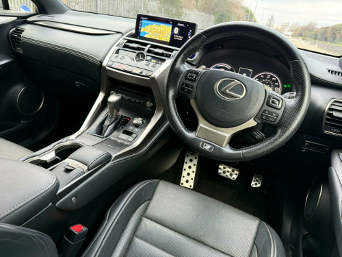 Discover this exceptional 2019 Lexus NX 300h F Sport, boasting remarkably low mileage for its year at just 32,839 miles. This Four Wheel Drive model is powered by an efficient 2.5 litre petrol hybrid engine, meeting Euro 6 emissions standards. The F Sport trim enhances its appeal, and you'll appreciate the convenience of a wireless smartphone charger, alongside the comprehensive Lexus Safety System Plus which includes adaptive cruise control. Maneuvering is made simple with a reversing camera and front and rear parking assistance sensors, while the front seats are heated for added comfort.This Lexus NX 300h F Sport offers a superior driving experience, evident in its advanced features. The inclusion of the Lexus Safety System Plus, with its adaptive cruise control, sets it apart by providing a more relaxed and safer journey. Furthermore, the combination of a reversing camera and eight parking sensors ensures effortless parking, a significant advantage over vehicles with less sophisticated assistance systems. The wireless charger and heated front seats further contribute to a refined and convenient ownership experience. .3in lexus navigation, 12v accessory port centre console and luggage compartment, 18in alloy wheels - f sport, 2 map pockets in the rear, 2 x fixed shopping bag hooks in boot, 2 x isofix child rear seat restraints, 2 x remote key fobs, 2-way electrical lumbar adjustment for driver, 2x cup holders in centre console, 2x sun visors with vanity mirror and lamp, 3-beam led headlights with adaptive high beam system, 4 driving modes - normal - ev - eco and sport, 6 stage sequential shift and kick down switch, 6 x tie down hooks in boot, abs - anti-lock braking system, asc - active sound control, aux socket with vtr compatibility, adjustable back rest tilt on rear seats, adjustable seat belt anchor points, airbags - driver knee, all wheel drive, analogue lexus clock, anti theft system - alarm - intrusion sensor - tilt sensor - glass breakage sensor and engine immobiliser, auto dimming rear view mirror, bas - brake assist system, bluetooth mobile phone connectivity, body adhesive - laser screw welding and laser brazed roof structure, carbon look inlay, card holder installed in the drivers and passengers sun visors, centre armrest with storage, curtain shield airbags - front and rear, dab radio, daytime running lights - led, driver and front passenger 2-stage airbags, driver and front passenger side airbags, driver and passenger 8-way electrically adjustable front seats, dual zone climate control air conditioning system, ebd - electronic brakeforce distribution, ecb - electronically controlled braking, epb - electronic parking brake, eps - electric power steering - speed sensitive, electric windows - one touch power front and rear with anti-jam protection, f sport aluminium sports pedals, f sport exterior styling, f sport leather gear lever, front passenger cushion airbag, front seat belts with pre-tensioners - 3 point elr - emergency locking retractor, hac - hill assist control, headlight cleaners, heated - auto-dimming - auto-folding outside mirrors with memory function - reverse tilt function - turn indicators, illuminated door handles with puddle light, led brake lights and rear lights with emergency brake signal, led cornering lights, led front fog lights, led front and rear sequential indicators, led interior illumination, lane change flasher function, lexus media display with 10 speakers - 1-dvd, lexus safety system plus, locking wheel nuts - thatcham approved, parking assist sensors - 4 front and 4 rear, passenger airbag cut off switch, power adjustable f sport leather steering wheel with paddle shifts, powered tailgate, premium pack, privacy glass - rear doors and tailgate, push start button, rain sensitive windscreen wipers, rear air vents, rear armrest with 2 cup holders, rear view camera with back guide lines, reversing camera, roof rails, seats - 60-40 split folding rear, seats - front heated, single hidden exhaust pipe, smart and easy entry, space saver spare wheel, speed sensitive auto door lock, sports suspension with performance dampers, tpws - tyre pressure warning system, trc - traction control system, textile carpet mats, two motion door lock - double lock, vdim - vehicle dynamics integrated management, vin etching, vsc - vehicle stability control, whiplash injury lessening seats, wireless smartphone charger, f sport leather - black, satllite navigation system, reversing camera, parking sensors front/rear, heated front seats, electric seats, heated steering wheel, radar cruise, lane assist