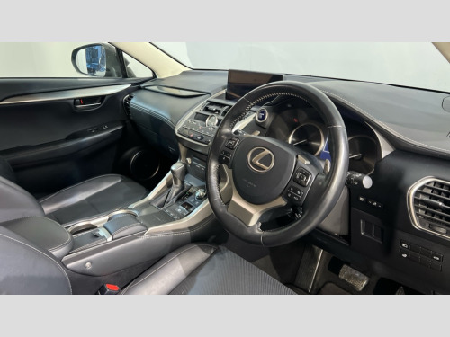 Lexus NX 300h 2.5 5dr CVT [Premium Pack] 4 driving modes EV/Eco/Normal/Sport, 8'' navigation, Adaptive cruise control + pre-crash system, Analogue clock, Bluetooth telephone connectivity, Electric speed sensitive power steering, Full European map, Lane change flasher function, Push button starter, Reversing camera, Wireless charger, Wireless Smartphone charger, VDIM, Vehicle Stability Control (VSC), 10 speakers, AUX socket with VTR compatibility, DAB Digital radio, DVD System, Adaptive high beam assist, Auto dimming interior rear view mirror, Heated and auto folding door mirrors with turn indicators, Hidden exhaust pipe, Illuminated door handles, LED brake lights and rear lights with emergency brake signal, LED daytime running lights, LED fog and cornering lights, LED front and rear sequential indicators, LED low beam headlights with auto high beam, One touch electric front/rear windows with pinch protection, Power back door system, Privacy glass, rear doors and tailgate, Rain sensor windscreen wipers, Roof rails, 12V socket in centre console and luggage area, 2 cupholders in front centre console, 2 map pockets in the rear, 2 x fixed shopping bag hooks in boot, 2 x sun visors with vanity mirror and lamp, 6 tie down hooks in boot, 8 way driver/passenger electrically adjustable front seats, 8 way electrically adjustable front seats, Active sound control, Adjustable height seatbelt anchor, Adjustable rear seat backrest, Card holder installed in driver and passengers sun visors, Centre armrest with storage box, Dual climate control air conditioning system, Front and rear textile carpet mats, Heated front seats, Heated leather steering wheel with paddle shift, Leather gear lever, LED interior illumination, Rear air vents, Rear centre armrest with 2 cupholders, Tahara leather upholstery, Whiplash Injury Lessening (WIL) feature (active headrest) for seats, 2 x Isofix child rear seat restraints, 3 point ELR front and rear seatbelts with pretensioners, ABS, Adjustable seat belt anchor points, Driver/Front Passenger airbags, Driver/front passenger side airbags, Drivers knee airbag, EBD + Brake Assist, ECB (Electronically Controlled Brake System), Electronic parking brake, Front and rear curtain shield airbags, Front passenger seat cushion airbag, Hill start assist, Passenger airbag cut-off device, Traction control, Tyre pressure warning, 2 x remote key fobs, Anti-theft system with siren, alarm, intrusion sensor, glass breakage sensor, tilt sensor and engine immobiliser, Locking wheel nuts, Smart entry, Speed sensitive auto door locking, Two motion door lock with double lock, VIN Window etching, Silver interior trim, 18" Alloy wheels, Space saver spare wheel