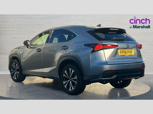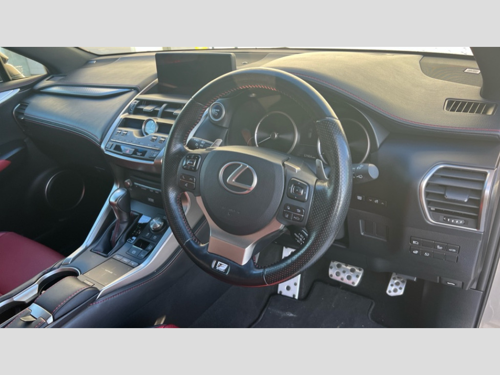 Lexus NX 300h 2.5 F-Sport 5dr CVT [Premier Pack] 8" colour display screen, Adaptive cruise control + pre-crash system, Analogue clock, Blind spot monitoring, Bluetooth telephone connectivity, Drive mode selector, Electric speed sensitive power steering, Head up Display, Intelligent park assist, Lane keep assist, Multimedia display, Premium navigation system, Push button starter, Rear cross traffic alert, Remote touch interface, Service interval indicator, Surround camera system, Traffic sign recognition, Trip computer, Adaptive variable suspension, Performance dampers, VDIM, Vehicle Stability Control (VSC), Aux input, DAB Digital radio, DVD System, Mark Levinson audio with 14 speakers, Steering wheel mounted audio controls, USB connection, Adaptive high beam assist, Black front grille, Black mirror caps, Body colour bumpers, Chrome grille surround, Door mirror memory, Electric windows-anti jam+driver side one touch, Electric/heated/folding door mirrors, Electrochromatic rear view mirror, Headlight washers, Illuminated door handles, LED daytime running lights, LED front fog lights with static cornering light function, LED Headlights, LED rear lights, Privacy glass, Puddle lights in exterior door handles, Rain sensor windscreen wipers, Rear wiper, Roof rails, Roof spoiler, Shark fin roof aerial, 12V socket in centre console and luggage area, 2 cupholders in front centre console, 3 spoke heated leather steering wheel, 60/40 split folding rear seat, 8 way electrically adjustable front seats, Active sound control, Adjustable height seatbelt anchor, Adjustable rear seat backrest, Aluminium pedals, Aluminium scuff plates, Centre armrest with storage box, Driver seat memory function, Driver's electric adjustable lumbar support, Dual climate control air conditioning system, Electric adjustable steering column, Front and rear textile carpet mats, Front seat back map pockets, Gearshift paddles, Heated front seats, Heated steering wheel, Isofix child seat attachment, Leather gear lever, Leather upholstery, LED interior illumination, Rear air vents, Rear centre armrest with 2 cupholders, Rear headrests, Shopping hook in boot, Sliding sunvisors with illuminated vanity mirrors, Tie down hooks in luggage area, Convenience pack - NX, 3x3 point rear seatbelts, ABS, Active front headrests, Curtain airbags, Driver/Front Passenger airbags, Driver/front passenger side airbags, Drivers knee airbag, EBD + Brake Assist, Electronic parking brake, Front/rear seatbelt pre-tensioners, Hill start assist, Passenger airbag cut-off device, Traction control, Tyre pressure warning, Alarm, Immobiliser, Locking wheel nuts, Remote central double locking, Smart keyless entry, Speed sensitive power door locks, Aluminium interior trim, Space saver spare wheel
