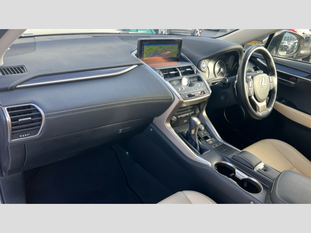 Lexus NX 300h 2.5 Takumi 5dr CVT [Pan roof] 10.3" display screen with remote touch interface, 10.3" Lexus premium navigation with full european map, street view and connected services, 360 degree panoramic view camera, 4 driving modes EV/Eco/Normal/Sport, Analogue clock, Apple car play/Android Auto, Blind spot monitoring with rear cross traffic alert, Bluetooth telephone connectivity, Electric speed sensitive power steering, HUD - Head up Display, Intelligent parking sensors - 4 front and 4 rear, Lane change flasher function, Lexus link connected services with available optional wifi, Powered tailgate, Push button starter, Wireless Smartphone charger, All wheel drive system, VDIM, Vehicle Stability Control (VSC), 2 USB ports, AUX socket with VTR compatibility, DAB Digital radio, DVD System, Mark Levinson premium surround sound system with 14 speakers, 3 beam LED headlights, Auto dimming interior rear view mirror, Body adhesive, laser screw welding and laser brazed roof structure, Front and rear one touch power windows, with anti-jam protection, Headlight cleaners, Heated, auto-folding, auto-dimming outside mirrors with memory function, reverse tilt function, turn indicators and puddle light, Hidden exhaust pipe, Illuminated door handles, LED brake lights and rear lights with emergency brake signal, LED cornering lights, LED daytime running lights, LED front and rear sequential indicators, LED front fog lights, Panoramic roof, Power back door system, Privacy glass, rear doors and tailgate, Rain sensor windscreen wipers, 12V accessory port centre console and luggage compartment, 2 cupholders in front centre console, 2 map pockets in the rear, 2 way electrical lumbar adjustment for driver, 2 x fixed shopping bag hooks in boot, 2 x sun visors with vanity mirror and lamp, 6 tie down hooks in boot, 60/40 split folding rear seat, 8 way driver/passenger electrically adjustable front seats, Adjustable rear seat backrest, Card holder installed in driver and passengers sun visors, Centre armrest with storage box, Driver seat memory function, Dual climate control air conditioning system, Front and rear head restraints, Front and rear textile carpet mats, Heated and ventilated front seats, Heated rear seats, Leather gear lever, LED interior illumination, Power adjustable heated leather steering wheel, Rear air vents, Rear centre armrest with 2 cupholders, Self charging hybrid, Smooth leather upholstery, Whiplash Injury Lessening (WIL) feature (active headrest) for seats, 2 x Isofix child rear seat restraints, 3 point ELR front and rear seatbelts with pretensioners, ABS, Adjustable seat belt anchor points, Driver and front passenger 2 stage airbag, Driver/front passenger side airbags, Drivers knee airbag, EBD + Brake Assist, ECB (Electronically Controlled Brake System), Electronic parking brake, Front and rear curtain shield airbags, Front passenger seat cushion airbag, Hill start assist, Hybrid automatic with 6 stage sequential shift and kick down switch, Lexus safety system + includes dynamic radar cruise control, pre collision system day and night, lane tracing assist, road sign, adaptive high beam, Passenger airbag cut-off device, Traction control, Tyre pressure warning, 2 x remote key fobs, Anti-theft system with siren, alarm, intrusion sensor, glass breakage sensor, tilt sensor and engine immobiliser, Locking wheel nuts, Smart card key, Speed sensitive auto door locking, Two motion door lock with double lock, VIN Window etching, Space saver spare wheel