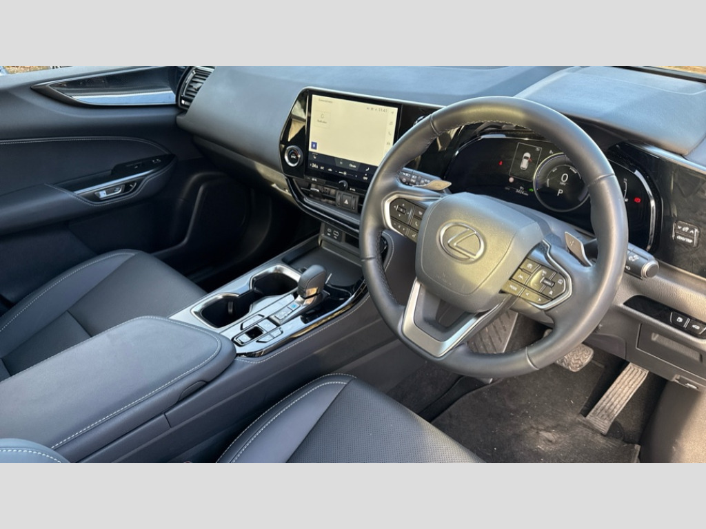 Lexus NX 350h 2.5 5dr E-CVT 4 driving modes EV/Eco/Normal/Sport, 7" display in instrument binnacle, Bluetooth telephone connectivity, eCall emergency system, Electric speed sensitive power steering, Intelligent parking sensors - 4 front and 4 rear, Lane change flasher function, Lexus link connect - Cloud based navigation, cloud based voice assistant, always online and 9.8" VGA touchscreen, Push button starter, Reversing camera with back guidelines, Service interval indicator, Tailgate, Wireless Apple CarPlay/Android Auto, All Wheel Drive (AWD), Hybrid automatic transmission, Vehicle Dynamics Integrated Management (VDIM), Vehicle Stability Control (VSC), 10 speakers, 4 USB ports - 2 front, one USB C, 2 rear USB C, DAB Digital radio, Auto dimming interior rear view mirror, Automatic headlights, Bi LED headlights, Double hidden exhaust pipes, Front and rear one touch power windows, with anti-jam protection, Heated, auto-folding, auto-dimming outside mirrors with reverse tilt function and turn indicators, LED brake lights and rear lights with emergency brake signal, LED daytime running lights, LED Indicators, Light green UV acoustic rear doors & rear glass, Power back door system, Rain sensor windscreen wipers, Rear side wing doors, Rear wiper, Roof rails, 12V accessory port centre console and luggage compartment, 2 cupholders in front centre console, 2 x fixed shopping bag hooks in boot, 2 x sun visors with vanity mirror and lamp, 3 seat bench in 2nd row, 4 x tie down hooks in the boot, 6 tie down hooks in boot, 6 way manually adjustable front seats, 60/40 split folding rear seat, Adjustable rear seat backrest, Card holder installed in driver and passengers sun visors, Centre armrest with storage box, Dual climate control air conditioning system, Front and rear head restraints, Front and rear textile carpet mats, Front passenger seat, Heated front seats, Leather gear lever, LED interior illumination, Power adjustable leather steering wheel with paddle shifts, Rear centre armrest with 2 cupholders, Tahara leather upholstery, Whiplash Injury Lessening (WIL) feature (active headrest) for seats, 2 x Isofix child rear seat restraints, 3 point ELR front seatbelts with pretensioners, 3x3 point rear seat belts, ABS, Adjustable seat belt anchor points, Driver and front passenger 2 stage airbag, Driver/front passenger side airbags, Drivers knee airbag, E-Latch electric door release, EBD + Brake Assist, ECB (Electronically Controlled Brake System), Electronic parking brake, Front and rear curtain shield airbags, Front center airbag, Front passenger seat cushion airbag, Hill assist control, Lexus safety system - dynamic radar cruise control, pre collision system day and night, lane tracing assist, road sign, automatic high beam, OTA, Manual rear child locks, Passenger airbag cut-off device, Traction control, Tyre pressure warning, Anti-theft system with alarm, intrusion sensor, glass breakage sensor, tilt sensor and engine immobiliser, Locking wheel nuts, Speed sensitive auto door locking, Ultra Wide Band (UWB) Anti-theft system, VIN Window etching, Black microdot inlay, Tyre repair kit