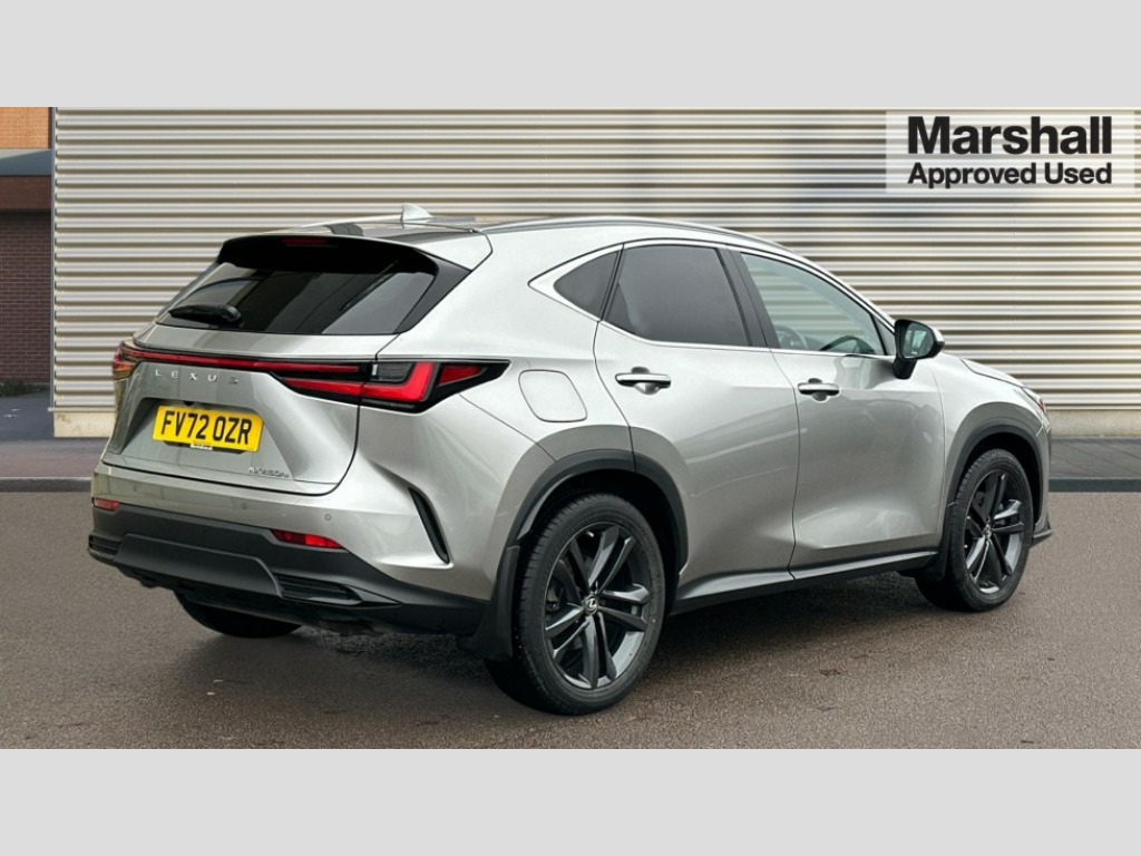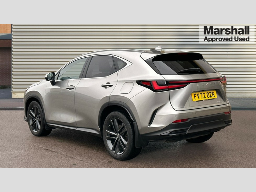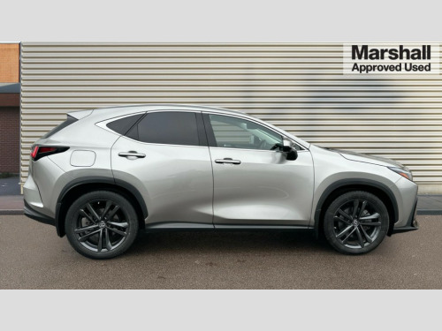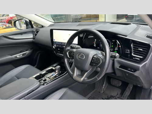 Lexus NX 450h+ 2.5 5dr E-CVT [Premium Pack] 4 driving modes EV/Eco/Normal/Sport, 7" display in instrument binnacle, Blind spot monitoring with rear cross traffic alert, Bluetooth telephone connectivity, eCall emergency system, Electric speed sensitive power steering, Intelligent parking sensors - 4 front and 4 rear, Lane change flasher function, Lexus link connect - Cloud based navigation, cloud based voice assistant, always online and 9.8" VGA touchscreen, Push button starter, Reversing camera with back guidelines, Service interval indicator, Wireless Apple CarPlay and wired Android Auto, Wireless Smartphone charger, 6.6 kW onboard charger, All Wheel Drive (AWD), Hybrid automatic transmission, Vehicle Dynamics Integrated Management (VDIM), Vehicle Stability Control (VSC), 10 speakers, 4 USB ports - 2 front, one USB C, 2 rear USB C, DAB Digital radio, Auto dimming interior rear view mirror, Automatic headlights, Bi LED headlights, Double hidden exhaust pipes, Front and rear one touch power windows, with anti-jam protection, Heated, auto-folding, auto-dimming outside mirrors with reverse tilt function and turn indicators, Illuminated door handles with puddle light, LED brake lights and rear lights with emergency brake signal, LED daytime running lights, LED front fog lights, LED Indicators, Power back door with kick sensor, Privacy glass, rear doors and tailgate, Rain sensor windscreen wipers, Rear side wing doors, Rear wiper, Roof rails, 12V accessory port centre console and luggage compartment, 2 cupholders in front centre console, 2 way electrical lumbar adjustment for driver, 2 x fixed shopping bag hooks in boot, 2 x sun visors with vanity mirror and lamp, 3 seat bench in 2nd row, 4 x tie down hooks in the boot, 6 way manually adjustable front seats, 60/40 split folding rear seat, Adjustable rear seat backrest, Card holder installed in driver and passengers sun visors, Centre armrest with storage box, Dual climate control air conditioning system, Front and rear head restraints, Front and rear textile carpet mats, Front passenger seat, Heated front seats, Heated steering wheel, Leather gear lever, LED interior illumination, Power adjustable leather steering wheel with paddle shifts, Rear centre armrest with 2 cupholders, Tahara leather upholstery, Whiplash Injury Lessening (WIL) feature (active headrest) for seats, 2 x Isofix child rear seat restraints, 3 point ELR front seatbelts with pretensioners, 3x3 point rear seat belts, ABS, Adjustable seat belt anchor points, Driver and front passenger 2 stage airbag, Driver/front passenger side airbags, Drivers knee airbag, E-Latch with safe exit assist, EBD + Brake Assist, ECB (Electronically Controlled Brake System), Electronic parking brake, Front and rear curtain shield airbags, Front center airbag, Front passenger seat cushion airbag, Hill assist control, Lexus safety system - dynamic radar cruise control, pre collision system day and night, lane tracing assist, road sign, automatic high beam, OTA, Manual rear child locks, Passenger airbag cut-off device, Traction control, Tyre pressure warning, 2 x remote key fobs, Anti-theft system with alarm, intrusion sensor, glass breakage sensor, tilt sensor and engine immobiliser, Locking wheel nuts, Smart keyless entry, Speed sensitive auto door locking, Two motion door lock with double lock, VIN Window etching, 3D prism black Inlay, Tyre repair kit