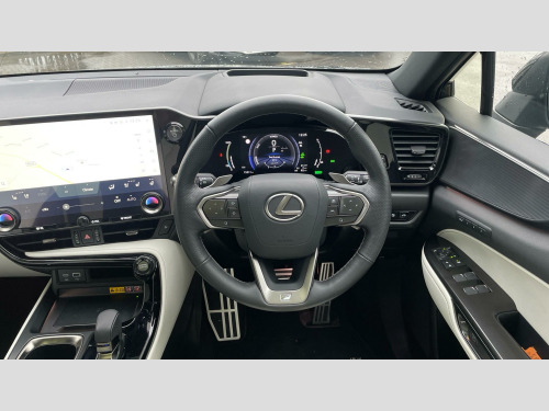 This 2024 Lexus NX 450h+ F Sport Takumi is a Lexus manufacturer approved vehicle with only one owner from new. It features a 2.5 litre petrol plug-in hybrid engine, paired with Four Wheel Drive for confident handling. This Euro 6 compliant model comes in the F Sport Takumi trim, offering a sophisticated driving experience. Notable features include Smart Entry for effortless access, seamless integration with Apple CarPlay and Android Auto, and a fixed Panoramic Roof that floods the cabin with light. The Intelligent Front and Rear Parking Sensors with Object and Pedestrian Detection provide enhanced safety and ease when manoeuvring, while the 4 Eye LED Headlights with Adaptive High Beam System ensure excellent visibility.
