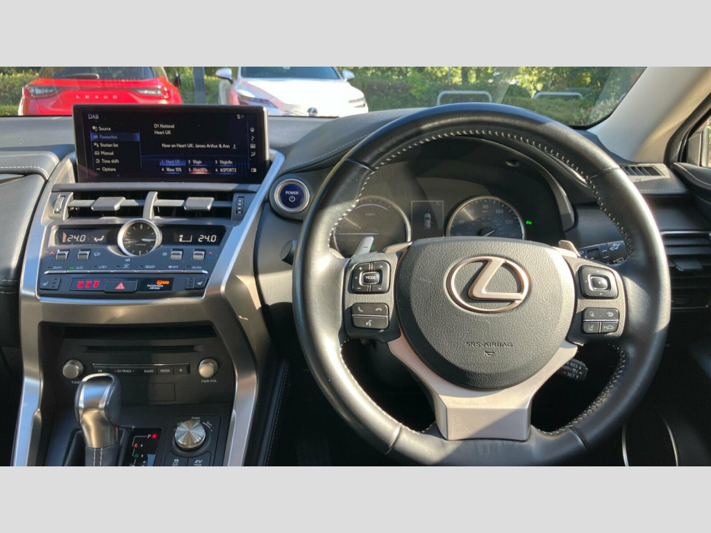 This 2018 Lexus NX 300h Luxury is a Lexus manufacturer approved vehicle, boasting a full dealership service history and a 12 month warranty for your peace of mind. With its 2.5 litre petrol hybrid engine and four wheel drive, this Euro 6 compliant model offers an efficient and capable driving experience. The MOT is valid until September 2026, and it was last serviced on 27 August 2025 at 50,018 miles. Notable features include the Convenience Pack with wireless phone charging, 18 inch black machine faced alloy wheels, and the comprehensive Lexus Safety System Plus with adaptive cruise control.