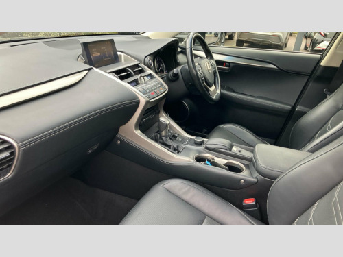 This 2016 Lexus NX 300h Luxury is a manufacturer approved vehicle with a low mileage of just 64,288 miles. This Four Wheel Drive model features a 2.5L Petrol Hybrid engine and meets Euro 6 emissions standards. The last service completed in February 2026 64,288 miles. Notable features include a panoramic roof, 18 inch dark grey alloy wheels, and front and rear sensors.
