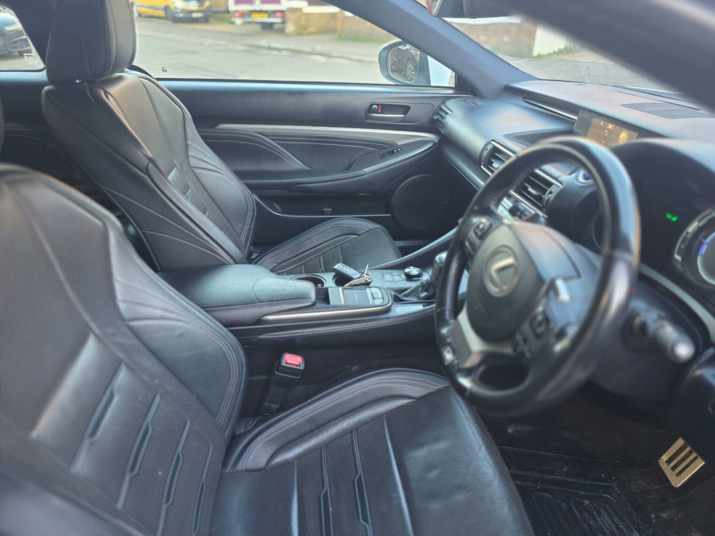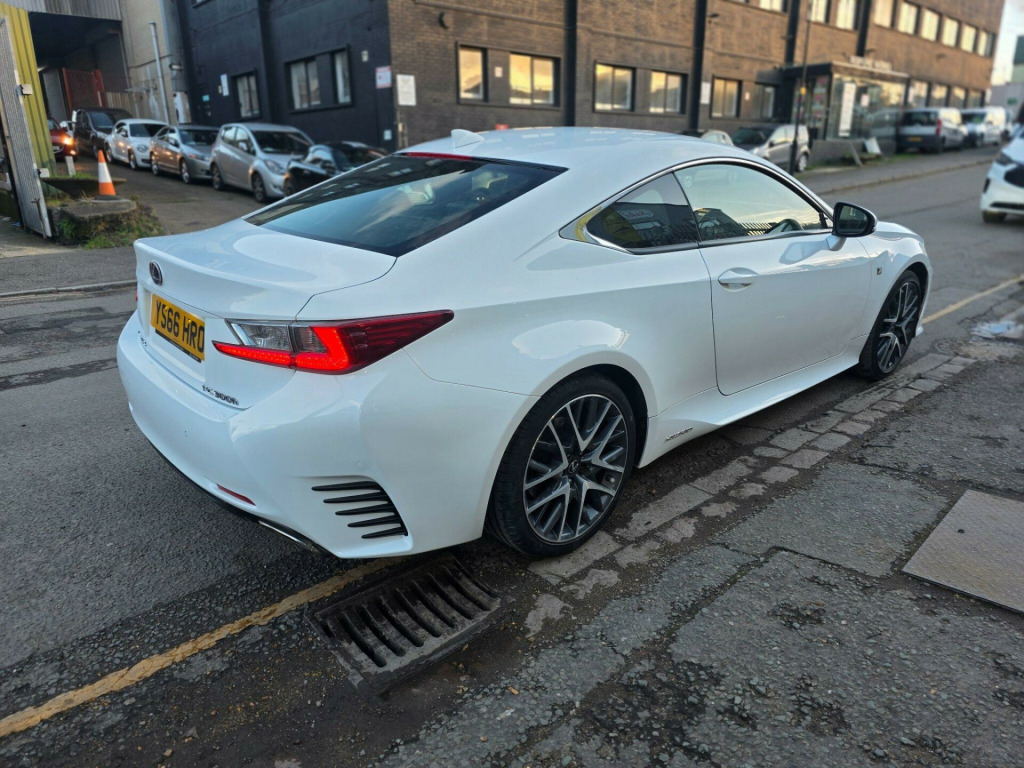 !!!!!! FULLY LOADED SPORT MONSTER !!!! , FULL DEALER SHIP SERVICE HISTORY , JUST HAD A FRESH SERVICE , 1 YEAR AND CLEAN MOT , SATELLITE NAVIGATION , REVERSING CAMERA AND FRONT AND REAR PARKING SENSORS , FULL BLACK LEATHER WITH HEATHED FRONT SEATS , POWERFOLDING WING MIRRORS , BLUETOOTH AUDIO AND PHONE , CRUISE CONTROL , AND MUCH MORE , 3 to 36 months warranty available , 2 days drive away insurance available, in Greenford Perivale London, all major debit and credit card accepted, finance option available, www.wheels4you.co.uk, All Vehicles Are Subject To A £99.99 Administration Fee, Please give us a call for the delivery options, !! viewing & test drive by appointment only !!This 2016 Lexus RC 300h F Sport offers a refined driving experience with its efficient 2.5 litre petrol hybrid engine, meeting Euro 6 emission standards. This particular model benefits from a desirable F Sport trim, enhancing its already premium appeal. Convenience is key with features like Smart Entry and Start System for effortless access and ignition, alongside Bluetooth connectivity for seamless phone calls and audio streaming. Manoeuvring is made simpler with a rear view camera and guide monitor, while the driver will appreciate the comfort of seats with memory function.The Lexus RC 300h F Sport stands out with its thoughtful inclusion of features that enhance everyday usability. Its low insurance group rating indicates a more economical ownership proposition compared to many vehicles in its class. The combination of hybrid efficiency, advanced technology, and the sporty F Sport designation makes this a compelling choice for those seeking a stylish and practical coupe. v accessory socket, 19in alloy wheels - f sport - darkened, 7in multi-information display - vga display, abs - anti-lock braking system, aux connection, airbags - curtain front and rear, airbags - driver 2-stage, airbags - front knee, airbags - front side, airbags - manual cut off switch, airbags - passenger 2-stage, airbags - rear passenger side, analogue clock, anti theft system alarm, armrest - front centre with storage, armrest - rear with storage, audible and visual seatbelt warning, auto door locking with double door lock, bas - brake assist system, bluetooth audio streaming, bluetooth connectivity, camera - rear view with guide monitor, carpets - black, clean air filter with pollen and deodorant, climate control - dual zone, cruise control, dab radio, daytime running lights - led, door memory - memory function, door mirrors - electrically foldable - autofoldable - heated - electrochromatic, door mirrors - puddle lights, double locking door lock, driving modes - normal-eco-sport-sport plus, ebd - electronic brakeforce distribution, ebs - emergency brake signal, electric windows - front, f sport exterior design pack, f sport interior styling, frameless electro chromatic - auto dimming - rear view mirror, front side windows - rain repellent coated window, front and rear seats - pre-tensioners, grille - f sport - spindle, hac - hill assist control, headlights - dusk sensor, headlights - high beam automatic, headlights - led - triple l shaped, headlights - washers, isofix child restraint system, immobiliser, indicator - led, inlays - aluminium, interior illumination - led, lfa - style instrument meters, lane change flasher function, lane departure alert, leather gear stick, lexus display audio - 1 cd, lexus media display, multi information display in centre instrument cluster, outside door handles with illuminated line and puddle lights - keyless design, puh - pop up hood, parking assist monitor, parking assistance - front sensor x4, parking assistance - rear sensor x4, pedal parking brake, power steering - electric, push start button, rain sensitive windscreen wipers, rear and brake light - led, remote rotary dial, scuff plates - f sport, seats - 60-40 split folding rear, seats - drivers memory, seats - front 8-way electric adjustment, seats - front heated and ventilated, seats - front height adjustment, seats - lumbar support, seats - sides and outer sides - black, side windows - uv green glass, smart entry and start system, speakers x6, speed sensitive auto door lock, sports pedals - f sport aluminium, steering wheel - electric adjustment - tilt and telescope, steering wheel - leather, steering wheel - memory, steering wheel - multifunction, steering wheel - paddle shift, suspension - avs-adaptive variable suspension, tmc-tpeg - traffic information, tpws - tyre pressure warning system, trc - traction control system, torsen limited slip differential, usb connection x2, vdim - vehicle dynamics integrated management, vsc - vehicle stability control, zippo type key