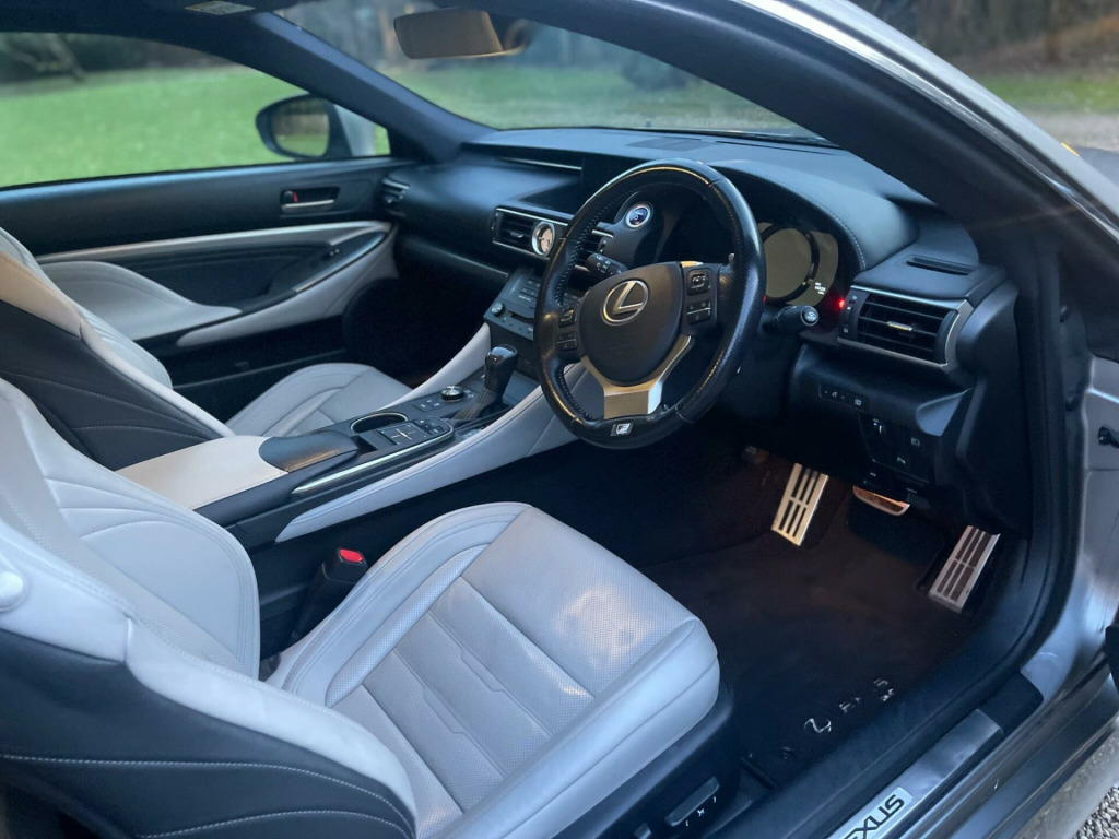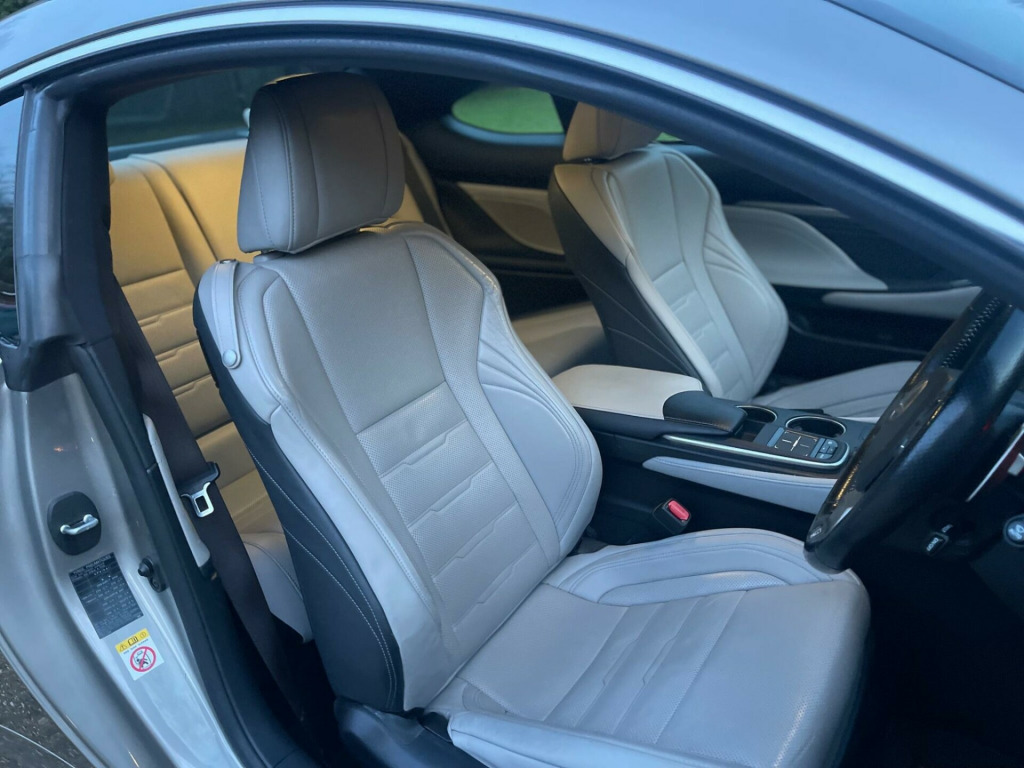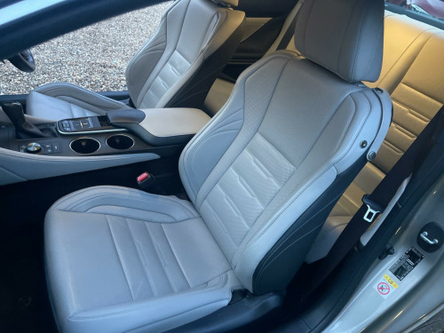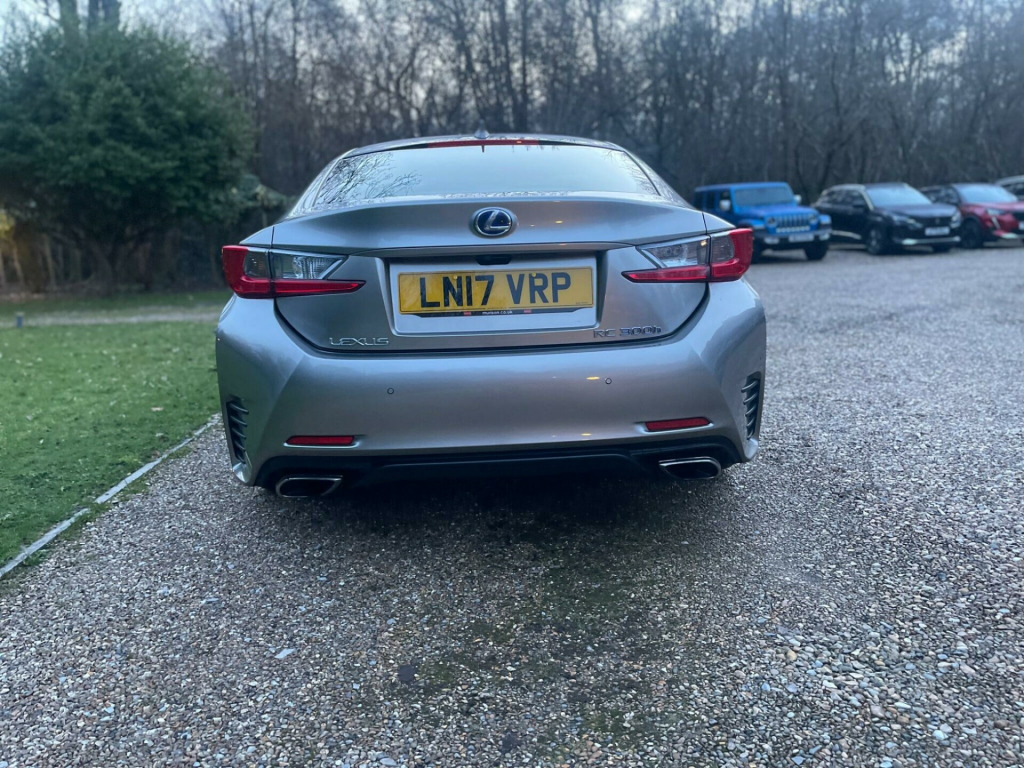 An Exceptional example with Full Service History. Finished in metallic Gunmetal with Cream leather trim. GREAT SPEC incl. SAT NAV, Heated & Cooled seats, Electric mem seats, 19'' Alloy Wheels, Lane Departure warning, Climate control, Cruise Control, Reverse Camera and so much moreDiscover this 2017 Lexus RC 300h F Sport, a sophisticated coupe that offers an engaging driving experience. This Euro 6 compliant model boasts a 2.5 litre petrol hybrid engine, combining efficiency with performance. Inside, you'll find the convenience of a Lexus Premium Navigation System and Bluetooth audio streaming, keeping you connected and on course. For comfort, the F Sport trim includes heated and ventilated front seats, ensuring a pleasant journey in any weather.Parking is made easier with front parking sensors, and the striking triple L shaped LED headlights provide excellent visibility. The F Sport designation signifies a higher level of specification, indicating this RC is equipped with desirable features that set it apart. Furthermore, its low insurance group rating makes it an attractive and cost effective choice for discerning drivers. v accessory socket, 19in alloy wheels - f sport - darkened, 7in multi-information display - vga display, abs - anti-lock braking system, aux connection, airbags - curtain front and rear, airbags - driver 2-stage, airbags - front knee, airbags - front side, airbags - manual cut off switch, airbags - passenger 2-stage, airbags - rear passenger side, analogue clock, anti theft system alarm, armrest - front centre with storage, armrest - rear with storage, audible and visual seatbelt warning, auto door locking with double door lock, bas - brake assist system, bluetooth audio streaming, bluetooth connectivity, camera - rear view with guide monitor, carpets - black, clean air filter with pollen and deodorant, climate control - dual zone, cruise control, dab radio, daytime running lights - led, door memory - memory function, door mirrors - electrically foldable - autofoldable - heated - electrochromatic, door mirrors - puddle lights, double locking door lock, driving modes - normal-eco-sport-sport plus, ebd - electronic brakeforce distribution, ebs - emergency brake signal, electric windows - front, f sport exterior design pack, f sport interior styling, frameless electro chromatic - auto dimming - rear view mirror, front side windows - rain repellent coated window, front and rear seats - pre-tensioners, grille - f sport - spindle, hac - hill assist control, headlights - dusk sensor, headlights - high beam automatic, headlights - led - triple l shaped, headlights - washers, isofix child restraint system, immobiliser, indicator - led, inlays - aluminium, interior illumination - led, lfa - style instrument meters, lane change flasher function, lane departure alert, leather gear stick, lexus display audio - 1 cd, lexus media display, multi information display in centre instrument cluster, outside door handles with illuminated line and puddle lights - keyless design, puh - pop up hood, parking assist monitor, parking assistance - front sensor x4, parking assistance - rear sensor x4, pedal parking brake, power steering - electric, push start button, rain sensitive windscreen wipers, rear and brake light - led, remote rotary dial, scuff plates - f sport, seats - 60-40 split folding rear, seats - drivers memory, seats - front 8-way electric adjustment, seats - front heated and ventilated, seats - front height adjustment, seats - lumbar support, seats - sides and outer sides - black, side windows - uv green glass, smart entry and start system, speakers x6, speed sensitive auto door lock, sports pedals - f sport aluminium, steering wheel - electric adjustment - tilt and telescope, steering wheel - leather, steering wheel - memory, steering wheel - multifunction, steering wheel - paddle shift, suspension - avs-adaptive variable suspension, tmc-tpeg - traffic information, tpws - tyre pressure warning system, trc - traction control system, torsen limited slip differential, usb connection x2, vdim - vehicle dynamics integrated management, vsc - vehicle stability control, zippo type key, lexus premium navigation system