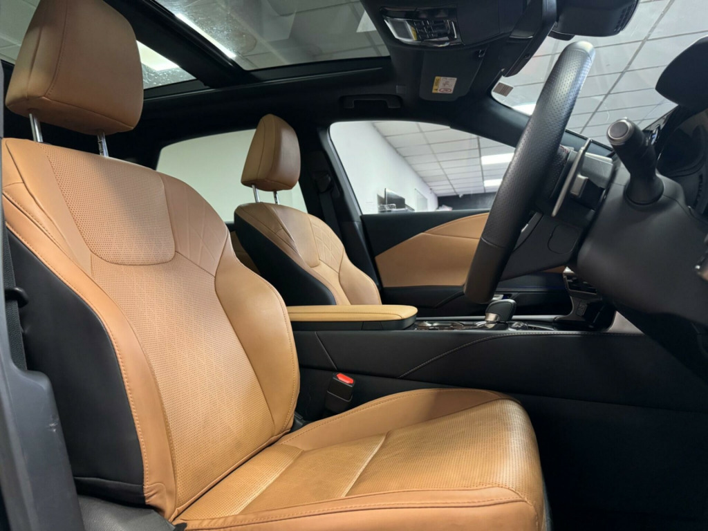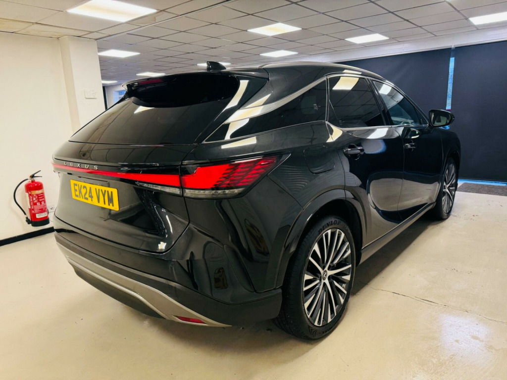 This 2024 Lexus RX 450h+ Prem Plus presents an exceptional ownership proposition with an incredibly low mileage of just 6800 miles, having been cherished by only one owner. This sophisticated Four Wheel Drive model boasts a 2.5 litre petrol plug in hybrid engine, adhering to Euro 6 emissions standards. Inside, you'll find a wealth of premium features designed for comfort and convenience, including a panoramic sunroof that opens to let in the fresh air, ultrasonic parking sensors front and rear to aid manoeuvring, and a head up display to keep your eyes on the road. The driver's seat benefits from a memory function, ensuring your preferred position is always readily available, while the Extended Lexus Safety System Plus3, featuring adaptive cruise control, provides enhanced peace of mind.The Lexus RX 450h+ Prem Plus offers a compelling blend of performance and practicality. Its impressive acceleration, capable of reaching 0 to 62 miles per hour in just 6.5 seconds, demonstrates its dynamic capabilities. This performance, combined with its advanced hybrid technology and Four Wheel Drive system, positions it favourably against other vehicles in its class. Furthermore, the generous boot space ensures that you have ample room for luggage, shopping, or any other essentials, making it a versatile choice for everyday life and longer journeys alike. ooth leather - ammonite sand, panoramic sunroof, 12-speaker audio, 12v accessory port centre console and luggage compartment, 2 x isofix child rear seat restraints, 2 x remote key fobs, 21in alloy wheels, 2x cup holders in centre console, 2x sun visors with vanity mirror and lamp, 3-projector bi-beam led headlight with auto high beam - ahb, 360 panoramic view monitor, 5x usb ports, 6.6kw on-board charger, abs - anti-lock braking system, airbags - curtain shield front and rear, airbags - driver knee, airbags - driver and front passenger dual stage, airbags - driver and front passenger side, airbags - front centre, ambient interior illumination - 64 colour led with 14 pre-set themed colour tones, auto-dimming interior rear view mirror, bas - brake assist system, bsm - blind spot monitor system with rcta - rear cross traffic alert, bluetooth mobile phone connectivity, cable bag, centre armrest with storage - two-way opening, charging cable - 3-pin to type 2 - 10a, charging cable - type 2 mode 3 - 32a, climate control - 3 zone, customisable auto door lock, dab radio, door mirrors - heated - auto-dimming - auto-folding with reverse tilt function - turn signals - blind spot and panoramic view sensors, drive mode select system, driver monitor, driver and passenger 2-way power lumbar support, driver and passenger 8-way electrically adjustable front seats, e four - all wheel drive, e-latch with safe exit assist, ebd - electronic brakeforce distribution, ecb - electronically controlled braking, epb - electronic parking brake, eps - electric power steering - speed sensitive, easy access - steering wheel and drivers seat, extended lexus safety system plus3, front tray in front of centre console, front and rear - left-right force limiter and tension reducers, front and rear - left-right seatbelt reminders, front and rear left-right seat belt with pre-tensioners - elr - emergency locking retractor, front and rear one-touch power windows with voice command, front and rear silver window frame mouldings, glove box, glove and towel set, hac - hill assist control, hud - head-up display, headlight cleaners, heated steering wheel, heated and ventilated front seats, intelligent clearance sonar - ics, l-shaped rear light bar, led brake lights and rear lights with emergency brake signal, led cornering lights, led daytime running lights, led front and rear fog lights, led indicators, lever type shift-control, lexus link connected services including over the air updates, mm21 lexus link pro, manually adjustable rear seats, memory function for driver, motion sensor key, outside rear view mirror, passenger airbag cut off switch, power adjustable steering wheel, power back door with kick sensor, privacy uv glass - rear doors and tailgate, push button start, rain sensitive windscreen wipers, roof rails, scuff plates - front aluminium - rear resin, seats - 40:20:40 split folding rear, smart keyless entry, steering wheel - leather, tpws - tyre pressure warning system, trc - traction control system, textile carpet mats, thatcham approved category 1 - t1 - alarm and immobiliser system, type 2 ac charging, tyre repair kit, ultrasonic parking sensors - front and rear, vin etching, vsc - vehicle stability control, wireless apple carplay and wired android auto, wireless smartphone charger