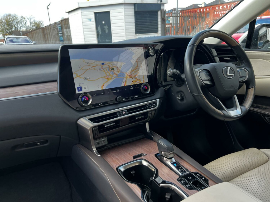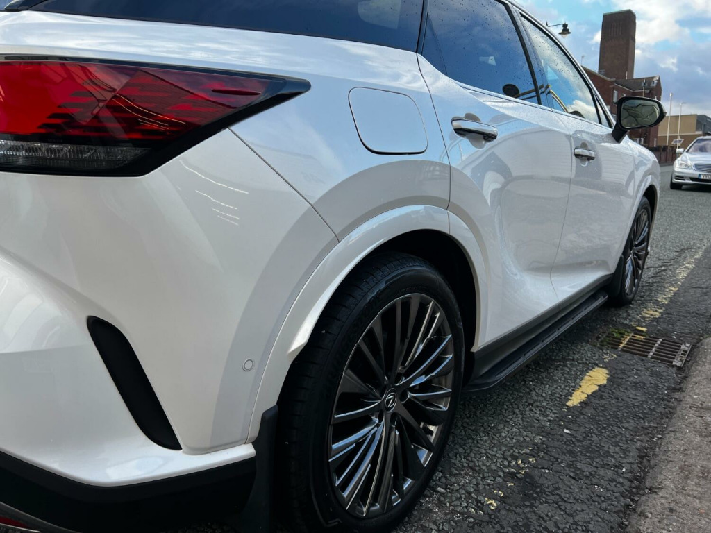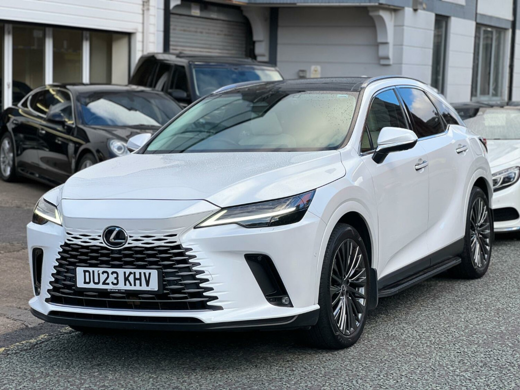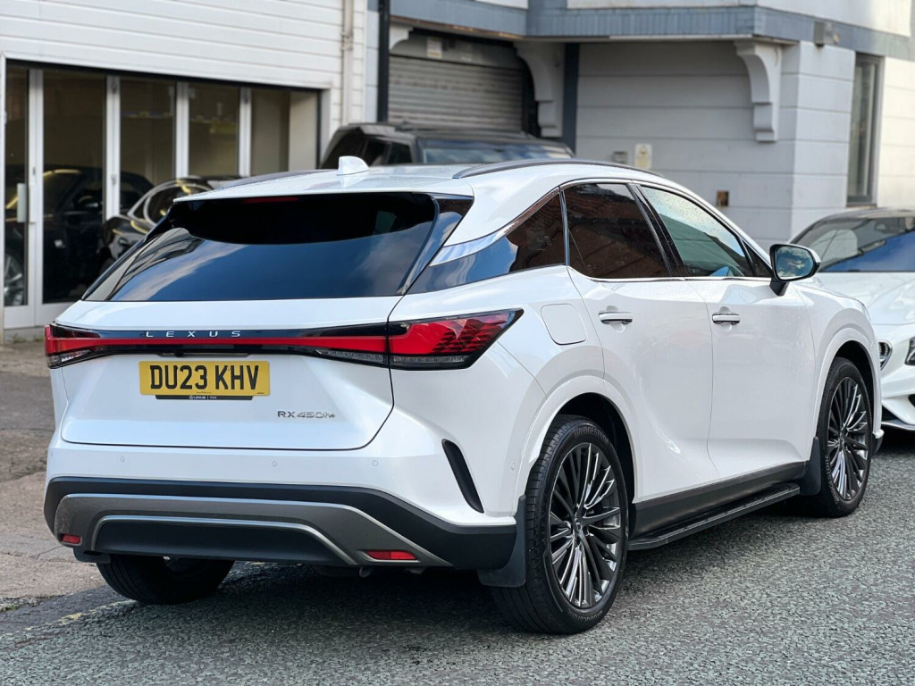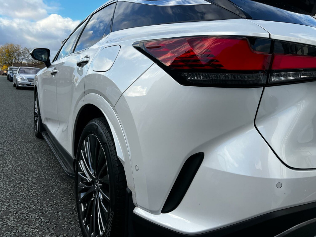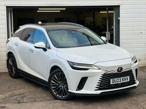 This range toping Lexus RX450h+ is the most recent iteration of the super RX. Proven, reliable Japanese technology that delivers real world results rather than just ticking a box to appease government regulations. Balance of 10 YEAR Lexus warranty remaining (subject to main dealer servicing). Huge interior space and amazingly comfortable yet averaging over 54 MPG! As the top of the Takumi model you get panoramic glass roof, buttery soft semi aniline leather, adaptive LED headlights, self parking, radar cruise with automatic braking and self steer, head up display, heated and cooled seats with can be automatically linked to climate control, Apple car play, 360 degree camera, dual view rear view mirror with camera, heated steering wheel, adaptive air suspension, memory seats and steering column, 21 inch shadow chrome alloy wheels, side steps and gorgeous pearl white paintwork. You would be hard pushed to find a better all rounder. Part exchange welcome.