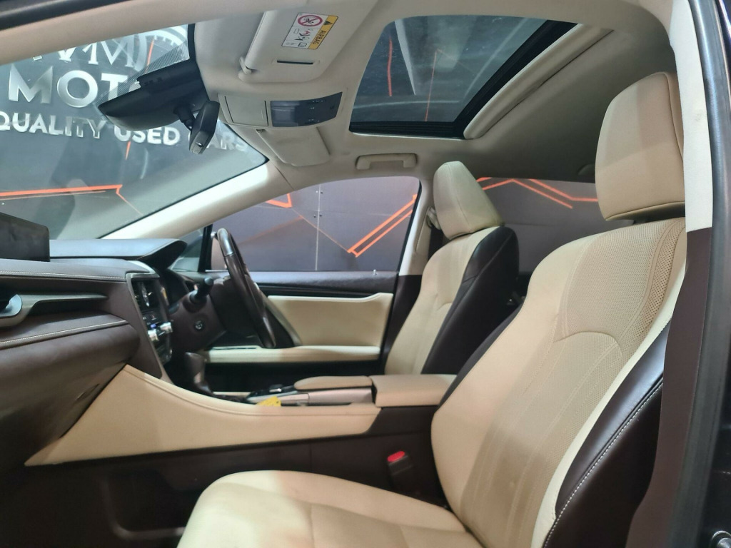 Category N, fresh service, Lexus Dealer service history, 2 keys, Full MOT history, We offer great prices for your Part Exchange, Any Inspection welcome, delivery can be arranged, 3 to 48 months warranty available subject to terms and condition, 12 Months AA Breakdown included, Gearbox & Engine in Excellent ConditionThis 2018 Lexus RX L 450h L Luxury is a Euro 6 compliant, seven seat, four wheel drive hybrid that offers a refined driving experience. Powered by a 3.5 litre petrol hybrid engine, this model benefits from the Luxury trim and includes a Style Pack, a sunroof with electric operation, and independent rear air conditioning with a third row control panel. For added comfort and convenience, it features a three zone climate control system with S Flow and Nanoe technology, alongside Adaptive Cruise Control.The Lexus RX L 450h L Luxury stands out with its impressive acceleration, reaching 0 to 62 miles per hour in just 8.0 seconds, demonstrating its capable performance. This vehicle also boasts a low insurance group, making it an economical choice. Furthermore, the generous boot space ensures practicality for all your needs, highlighting its versatility compared to similar vehicles. nroof, style pack, 1 usb port in the front centre armrest, 2 usb charging ports in the second row armrest, 2 x fixed shopping bag hooks in boot, 2 x isofix child rear seat restraints, 2-way electrical lumbar adjustment, 20in alloy wheels, 2x map pockets in rear of front seats, 2x sun visors with vanity mirror and lamp, 3 zone climate control air conditioning system with s flow, 3 zone climate control air conditioning system with s flow and nanoe technology, 3 x 12v power outlet sockets, 3-eye shaped led headlights with auto high beam, 4 driving modes - normal - ev - eco and sport, 4x tie down hooks in boot, 60-40 split folding rear seat with 40-20-40 folding ability - manual remote release, abs - anti-lock braking system, acc - adaptive cruise control, aux socket with vtr compatibility, airbags - curtain shield front and rear, airbags - driver knee, airbags - front passenger cut off switch, airbags - passenger cushion, airbags - rear passenger side, analogue lexus clock, anti theft system - alarm - intrusion sensor - tilt sensor - glass breakage sensor and engine immobiliser, armrest - front centre with storage, armrest - rear with storage, auto-dimming interior rear view mirror, autonomous emergency braking, bas - brake assist system, black scuff plates, bluetooth mobile phone connectivity, card holder installed in the drivers and passengers sun visors, centre and rear armrest with 2 cup holders, climate concierge, cup holder in the third row, dab radio, daytime running lights - led, driver and front passenger 2-stage airbags, driver and front passenger side airbags, driver and passenger 8-way electrically adjustable front seats, ebd - electronic brakeforce distribution, ecb - electronically controlled braking, epb - electronic parking brake, electric windows - front and rear, electrically adjustable leather steering wheel, front fog lights - led, front and rear seats - pre-tensioners, glasses holder in roof lighting panel, hac - hill assist control, headlight cleaners, heated - auto-folding - auto-dimming outside mirrors with memory function - reverse tilt function - turn indicators and puddle light, inlays - black gloss, intelligent parking assist sensors - 2x front and 4x rear, led brake lights and rear lights with emergency brake signal, led front and rear sequential indicators, led interior illumination, lane change flasher function, leather gearlever, lexus premium navigation system, lexus safety system plus, locking wheel nuts - thatcham approved, memory function for driver, multi-information display 4-inch tft, power folding third row seats, power steering - electric, powered tailgate with kick sensor, push button start, rain sensitive windscreen wipers, rear privacy glass, reclining and sliding rear seats, reversing camera, roof rails, seats - front heated and ventilated, small compartment to right of steering wheel, smart and easy entry, tpws - tyre pressure warning system, trc - traction control system, temporary spare wheel, textile carpet mats, third row ac control panel, two motion door lock - double lock, vdim - vehicle dynamics integrated management, vsc - vehicle stability control, wil - whiplash injury lessening front seats, window etching, wireless smartphone charger