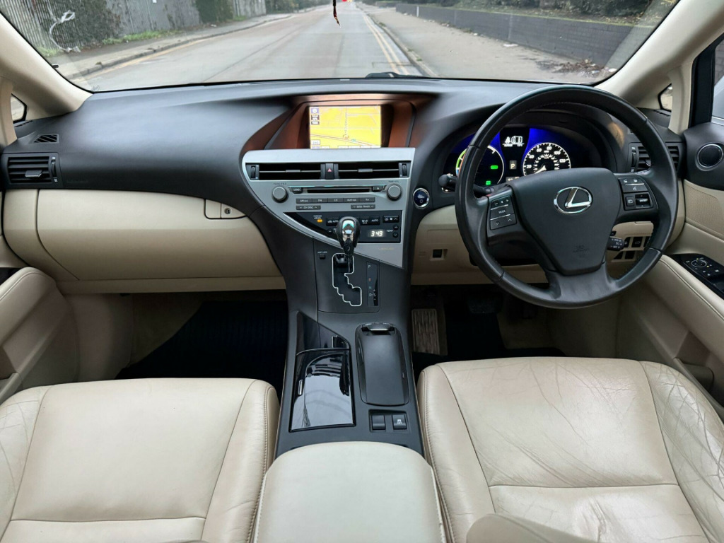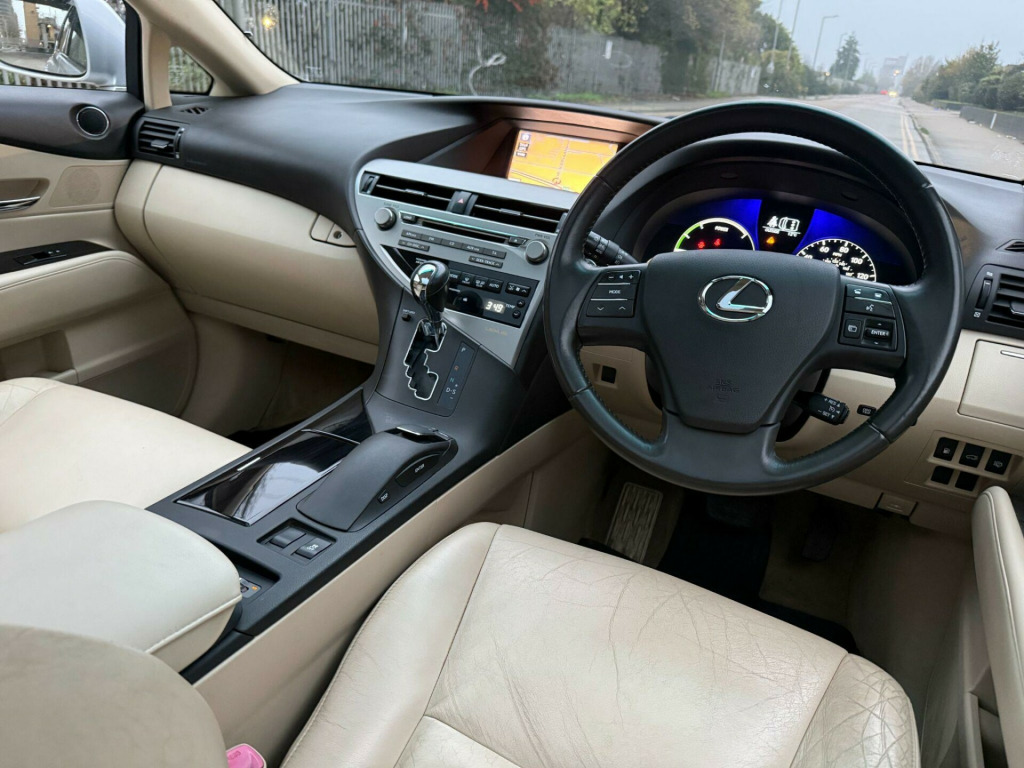 This 2011 Lexus RX 450h Advance boasts a full service history and a clear vehicle history check, offering peace of mind for its next owner. This Four Wheel Drive model features a 3.5L Petrol Hybrid engine and has covered a low mileage of 91983 miles for its age. Inside, you'll find a spacious cabin equipped with a fixed Panoramic Roof, Dual Zone Climate Control with a pollen filter, and Air Conditioning to ensure comfort for all occupants. Stay connected on the go with USB and Bluetooth connectivity, and benefit from the convenience of Front and Rear Parking Sensors.The Lexus RX 450h Advance stands out with its impressive acceleration, reaching 0-62mph in just 7.8 seconds, demonstrating its dynamic performance. Its low insurance group rating also indicates that running costs are kept competitive compared to similar vehicles. This combination of efficient hybrid technology, advanced features, and strong provenance makes this Lexus RX a compelling choice for those seeking a refined and capable SUV. ll leather, parking sensoirs, rear camera, navigation system, panoramic sunroof, dab radio, heated seats, elecyric & memory seats, 19in alloy wheels, abs - anti-lock braking system, air conditioning, airbags - curtain shield front and rear, airbags - driver 2-stage, airbags - front knee, airbags - front passenger cut off switch, airbags - passenger 2-stage, airbags - rear passenger side, airbags - rear side, airbags - thorax abdomen pelvis - tap, anti theft system alarm, auto dimming rear view mirror, bas - brake assist system, cd-radio, central locking, climate control - dual zone with pollen filter, cruise control, door mirrors - electric adjustment - heated - foldable - electrochromatic, ebd - electronic brakeforce distribution, ebs - emergency brake signal, ecb - electronically controlled braking, eco mode, esc - electronic stability control, electric windows - one touch power front and rear, hac - hill assist control, headlights - auto leveling, headlights - hid bi-xenon, headlights - iafs - intelligent adaptive forward lighting, headlights - washers, isofix child restraint system, multi information display in centre instrument cluster, navigation package with 8 colour lcd multi-display - hdd with dynamic route guidance - multi display, optitron display with ecd - electro-chromatic device, parking assistance - front and rear sensor, power boot release, power steering, power steering - electric speed sensitive, premium audio system with hdd navigation-6cd changer-speakers x12, rain sensitive windscreen wipers, rear privacy glass, seats - 40:20:40 split folding and sliding rear, seats - front 8-way electric adjustment-heated-sports, separate driver and passenger temperature controls, smart entry and start system, steering column - electric adjustment, steering wheel - leather, steering wheel - multifunction, trc - traction control system, temporary spare wheel, trim - dark grey gloss, usb and bluetooth connectivity, vdim - vehicle dynamics integrated management, vsc+ vehicle stability control, voice command - bluetooth mobile phone function, wil - whiplash injury lessening front seats, panoramic roof