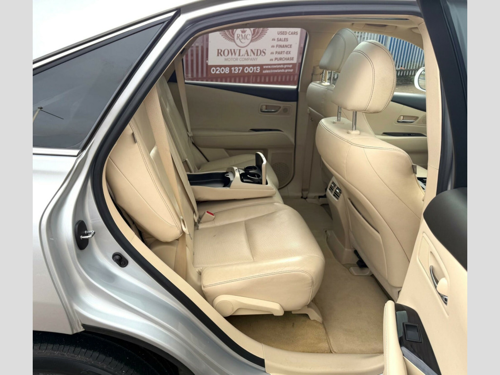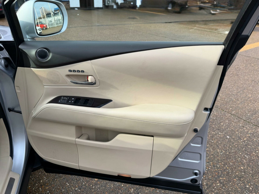 This 2013 Lexus RX 450h Advance boasts exceptionally low mileage for its age, having covered just 48,000 miles, and comes with a clear vehicle history check. This Four Wheel Drive model features a 3.5 litre petrol hybrid engine, offering a refined driving experience. Inside, you'll find a dual zone climate control with pollen filter, heated front seats for comfort, and convenient Bluetooth connectivity. The Advance trim also includes a fixed panoramic roof, allowing natural light to fill the cabin, and rear parking assistance sensors to aid manoeuvring.The Lexus RX 450h Advance stands out with its impressive performance, achieving 0 to 62 miles per hour in just 7.8 seconds, a testament to its powerful yet efficient hybrid system. Its low insurance group rating further enhances its appeal, suggesting lower running costs compared to similar vehicles. This combination of low mileage, advanced features, and strong performance makes this Lexus RX a compelling choice for those seeking a premium and practical SUV. ndemic roof, 19in alloy wheels, abs - anti-lock braking system, airbags - curtain shield, airbags - driver 2-stage, airbags - front knee, airbags - front passenger cut off switch, airbags - passenger 2-stage, airbags - rear passenger side, airbags - thorax abdomen pelvis - tap, anti theft system alarm, armrest - front, armrest - rear, audio system with speakers x12, auto dimming rear view mirror, bas - brake assist system, bluetooth connectivity, bumper protection film, clean air filter with pollen removal mode, climate control - dual zone with pollen filter, colour multi display lcd - 8in, cruise control, dab radio, dvd player, daytime running lights - led, door mirrors - electric adjustment - heated - electrochromatic - memory, door mirrors - electric adjustment-heated-foldable-electrochromatic, ebd - electronic brakeforce distribution, electric windows - front and rear, full map navigation pack - hdd, hac - hill assist control, headlights - iafs - intelligent adaptive forward lighting, headlights - led, headlights - washers, isofix child restraint system, illuminated entry system, immobiliser, interior illumination - led, laminated front side windows with uv-reduction glass, leather gear stick, multi information display in centre instrument cluster, optitron display with ecd - electro chromatic device - auto dimming, panoramic roof, parking assistance - front sensor, parking assistance - rear sensor, power rear tailgate, power steering - electric, privacy glass, rain sensitive windscreen wipers, rear lights - led, remote touch interface, seats - 40:20:40 split folding and sliding rear, seats - drivers 8-way electric adjustment, seats - front heated, seats - front memory settings, seats - front passenger 8-way electric adjustment, separate driver and passenger temperature controls, smart entry and start system, steering wheel - electric adjustment, steering wheel - leather, steering wheel - memory, steering wheel - multifunction, suspension - air, tpws - tyre pressure warning system, trc - traction control system, temporary spare wheel, trim - dark grey gloss, usb and aux connectivity, vdim - vehicle dynamics integrated management, vsc+ vehicle stability control, wil - whiplash injury lessening front seats, windshield wiper de-icer