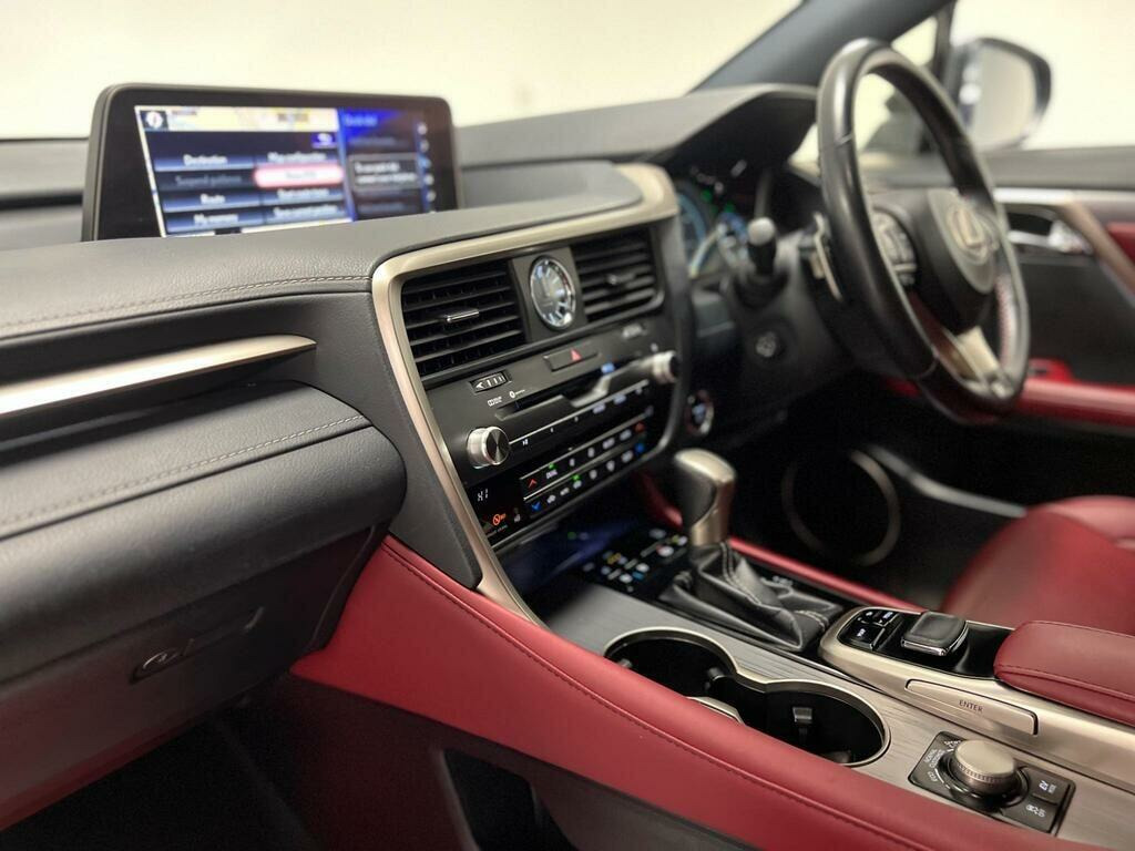 This 2018 Lexus RX 450h F Sport is a prime example of refined engineering and thoughtful ownership. As a Euro 6 compliant model, it showcases a powerful 3.5L Petrol Hybrid engine paired with a smooth Four Wheel Drive system, offering both performance and efficiency. The F Sport trim level enhances the driving experience with the comprehensive Lexus Safety System Plus, including Adaptive Cruise Control for effortless journeys. Inside, you'll find a Dual Zone Climate Control Air Conditioning System with S Flow and Nanoe Technology, ensuring optimal comfort for all occupants. Practicality is also key, with Intelligent Parking Assist Sensors at both the front and rear, making manoeuvring a breeze. For added convenience, the driver benefits from a Memory Function for seats and Bluetooth Connectivity for seamless integration of your devices.The Lexus RX 450h F Sport stands out with its impressive acceleration, achieving 0-62mph in just 7.7 seconds, demonstrating its dynamic capabilities. Furthermore, its placement in a low insurance group indicates that running costs are kept competitive, making it an attractive proposition compared to similar vehicles. This combination of advanced safety features, comfort technologies, and efficient hybrid performance, all within a desirable F Sport package, positions this Lexus RX as a compelling choice for discerning drivers. map pockets in the rear, 2-way electrical lumbar adjustment, 20in alloy wheels - f sport design, 2x sun visors with vanity mirror and lamp, 2x usb sockets, 3 x 12v power outlet sockets, 3-eye shaped led headlights with auto high beam, 4x tie down hooks in boot, 5 driving modes - normal - ev - eco - sport and sport+, 60-40 split folding rear seat with 40-20-40 folding ability - manual remote release, abs - anti-lock braking system, acc - adaptive cruise control, aux socket with vtr compatibility, airbags - driver knee, airbags - front passenger cut off switch, airbags - passenger cushion, airbags - rear passenger side, analogue lexus clock, anti-theft system, armrest - front centre with storage, armrest - rear with storage, auto dimming rear view mirror, autonomous emergency braking, bas - brake assist system, bluetooth connectivity, card holder installed in the drivers and passengers sun visors, centre and rear armrest with 2 cup holders, climate concierge, curtain shield airbags - front and rear, dab radio, daytime running lights - led, drilled aluminium sport pedals, driver and front passenger 2-stage airbags, driver and front passenger side airbags, driver and passenger 8-way electrically adjustable front seats, dual zone climate control air conditioning system with s flow and nanoe technology, ebd - electronic brakeforce distribution, ecb - electronically controlled braking, epb - electronic parking brake, electric windows - front and rear, electrically adjustable f sport leather steering wheel with paddle shifts, f sport aluminium scuff plates, f sport combination meter, f sport exterior styling, f sport leather gear lever, f-sport seats, f-sport suspension tuning, front seat belts with pre-tensioners - 3 point elr - emergency locking retractor, glasses holder in roof lighting panel, hac - hill assist control, headlight cleaners, heated - auto-dimming - auto-folding outside mirrors with memory function - reverse tilt function - turn indicators and puddle light, isofix child restraint system - rear x2, inlays - aluminium, intelligent parking assist sensors - 2x front and 4x rear, led brake lights and rear lights with emergency brake signal, led cornering lights, led front fog lights, led front and rear sequential indicators, led interior illumination, lane change flasher function, lexus premium navigation, lexus safety system plus, locking wheel nuts, memory function for driver, multi-information display 4-inch tft, power steering - electric, powered tailgate with kick sensor, privacy glass, push start button, rain sensitive windscreen wipers, rear door sun shades, reclining and sliding rear seats, reversing camera, roof rails, seats - front heated and ventilated, shopping bag hooks x2, small compartment to right of steering wheel, smart and easy entry, smartphone wireless charger, sport steering, suspension - avs-adaptive variable suspension, tpws - tyre pressure warning system, trc - traction control system, temporary spare wheel, textile carpet mats, two motion door lock - double lock, vdim - vehicle dynamics integrated management, vsc - vehicle stability control, wil - whiplash injury lessening front seats, window etching