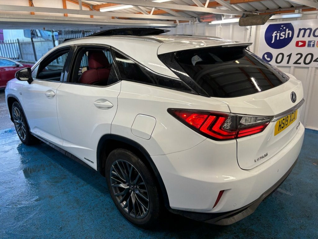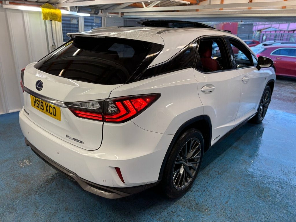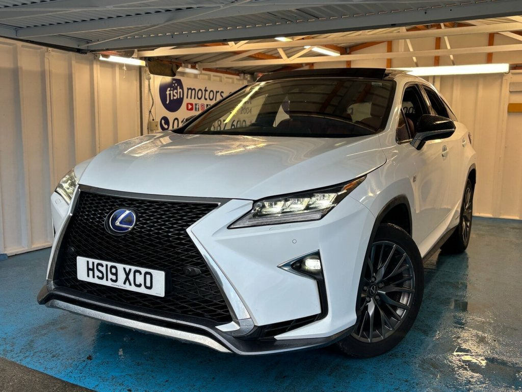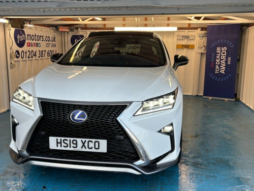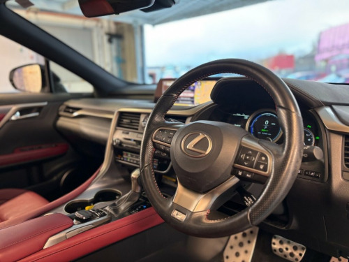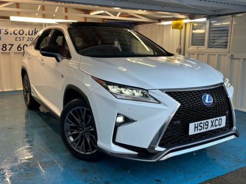 1 FORMER KEEPER+SH+NAV+FULL RED LEATHER HEATED SEATS+CLIMATE+PANORAMIC SUNROOF+PARK CONTROL+20" ALLOYS+CAMERA+20" ALLOYS+BLUETOOTH+MEDIA+CRUISE+HPI CLEAR+VOSA MOT HISTORY PRINTOUT, PART EXCHANGE WELCOME, FULL DEALER FACILITIES, CLEAN CAR+NICE DRIVE+good mpg, The car is in very good condition in and out . Bodywork and interior clean for age and mileage . Interior is clean and tyres good ,Engine and gearbox in good order. This 2019 Lexus RX 450h F Sport is a superb example of refined motoring, boasting a powerful yet efficient 3.5L petrol hybrid engine and a sophisticated Four Wheel Drive system. As a Euro 6 compliant vehicle, it meets stringent emission standards. Inside, you'll find the convenience of a Memory Function for the driver's seat, allowing you to easily recall your preferred driving position. The Smart and Easy Entry system, complete with keyless entry, adds a touch of modern luxury, while Bluetooth connectivity keeps you seamlessly connected on the go. Experience exceptional comfort with the Dual Zone Climate Control Air Conditioning System, featuring S Flow and Nanoe Technology for optimal cabin air quality. The Lexus Safety System Plus provides peace of mind, including Adaptive Cruise Control for effortless long journeys. This RX 450h F Sport also benefits from a low insurance group, making it an economical choice. Its impressive acceleration, reaching 0-60mph in just 7.7 seconds, demonstrates its dynamic performance, setting it apart from 2 Map Pockets in the Rear, 2 USB Ports, 2 x Fixed Shopping Bag Hooks in Boot, 2 x ISOFIX Child Rear Seat Restraints, 2-Way Electrical Lumbar Adjustment, 20in Alloy Wheels - F Sport Design, 2x Sun Visors with Vanity Mirror and Lam, 3 x 12V Power Outlet Sockets, 3-Eye Shaped LED Headlights with Auto Hi, 4x Tie Down Hooks in Boot, 5 Driving Modes - Normal - EV - Eco - Sp, 60-40 Split Folding Rear Seat with 40-20, ABS - Anti-Lock Braking System, ACC - Adaptive Cruise Control, Adaptive Variable Suspension - AVS, Airbags - Front Passenger Cut Off Switch, Airbags - Rear Passenger Side, Analogue Lexus Clock with GPS, Anti Theft System - Alarm - Intrusion Se, ASC - Active Sound Control, Auto-Dimming