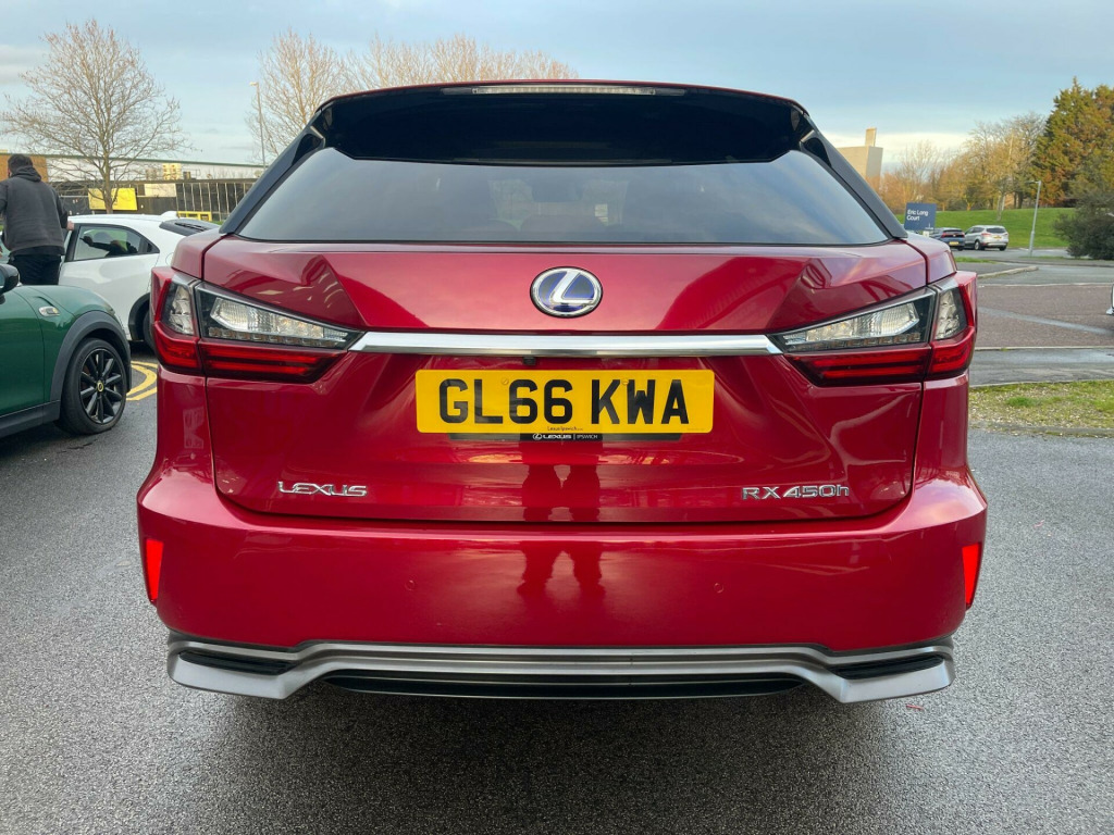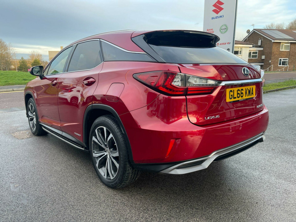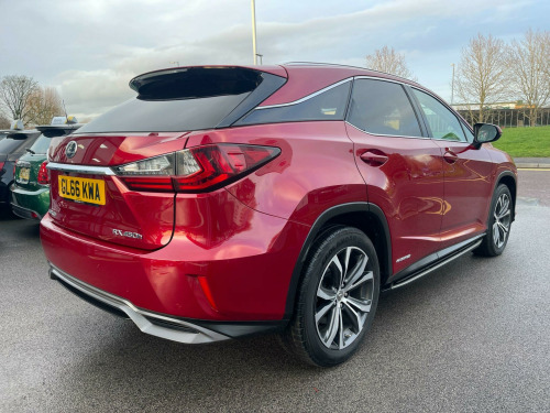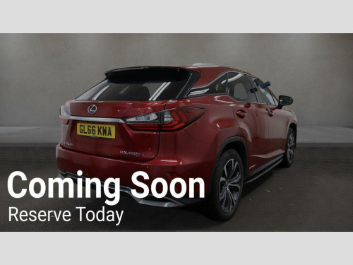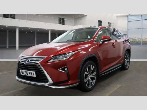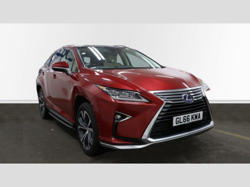 This 2016 Lexus RX 450h Luxury is a superb example, boasting a clear vehicle history and having had only two owners. This Four Wheel Drive model features a 3.5 litre petrol hybrid engine, meeting Euro 6 emissions standards. It comes equipped with a striking Style Pack including side steps, and benefits from advanced 3 eye shaped LED headlights with auto high beam functionality. Inside, you'll find a luxurious panoramic roof with an opening sunroof, a convenient smartphone wireless charger, and a reversing camera to aid with parking.The performance of this Lexus RX is noteworthy, achieving 0 to 62 miles per hour in just 7.7 seconds, demonstrating its responsive acceleration. Its low insurance group rating further enhances its appeal, suggesting lower running costs compared to similar vehicles. The combination of its premium features, efficient hybrid technology, and strong performance makes this RX 450h Luxury a compelling choice for those seeking a refined and capable SUV.Navigation SystemNavigation SD CardParking Camera(s)Bluetooth PreparationDAB Digital RadioSound System - StandardClimate ControlParking Sensor(s)Heated Seat(s)Adaptive Cruise ControlAir ConditioningLeather TrimLeather Trim20'' Alloy WheelsPrivacy GlassMetallic PaintPanoramic Roof. 2 Map Pockets in the Rear, 2-Way Electrical Lumbar Adjustment, 20in Alloy Wheels, 2x Sun Visors with Vanity Mirror and Lamp, 2x USB Sockets, 3 x 12V Power Outlet Sockets, 3-Eye Shaped LED Headlights with Auto High Beam, 4 Driving Modes - Normal - EV - Eco and Sport, 4x Tie Down Hooks in Boot, 60-40 Split Folding Rear Seat with 40-20-40 Folding Ability - Manual Remote Release, ABS - Anti-Lock Braking System, ACC - Adaptive Cruise Control, AUX Socket with VTR Compatibility, Airbags - Driver Knee, Airbags - Front Passenger Cut Off Switch, Airbags - Passenger Cushion, Airbags - Rear Passenger Side, Analogue Lexus Clock, Anti-Theft System, Armrest - Front Centre with Storage, Armrest - Rear with Storage, Auto Dimming Rear View Mirror, Autonomous Emergency Braking, BAS - Brake Assist System, Black Scuff Plates, Bluetooth Connectivity, Card Holder Installed In the Drivers and Passengers Sun Visors, Centre and Rear Armrest with 2 Cup Holders, Climate Concierge, Curtain Shield Airbags - Front and Rear, DAB Radio, Daytime Running Lights - LED, Driver and Front Passenger 2-Stage Airbags, Driver and Front Passenger Side Airbags, Driver and Passenger 8-Way Electrically Adjustable Front Seats, Dual Zone Climate Control Air Conditioning System with S Flow and Nanoe Technology, EBD - Electronic Brakeforce Distribution, ECB - Electronically Controlled Braking, EPB - Electronic Parking Brake, Electric Windows - Front and Rear, Electrically Adjustable Leather Steering Wheel, Front Seat Belts with Pre-Tensioners - 3 Point ELR - Emergency Locking Retractor, Glasses Holder in Roof Lighting Panel, HAC - Hill Assist Control, Headlight Cleaners, Heated - Auto-dimming - Auto-folding Outside Mirrors with Memory Function - Reverse Tilt Function - Turn Indicators and Puddle Light, ISOFIX Child Restraint System - Rear x2, Inlays - Black Gloss, Intelligent Parking Assist Sensors - 2x Front and 4x Rear, LED Brake Lights and Rear Lights with Emergency Brake Signal, LED Front Fog Lights, LED Front and Rear Sequential Indicators, LED Interior Illumination, Lane Change Flasher Function, Leather Gearlever, Lexus Premium Navigation, Lexus Safety System Plus, Locking Wheel Nuts, Memory Function for Driver, Multi-Information Display 4-inch TFT, Power Steering - Electric, Powered Tailgate with Kick Sensor, Privacy Glass, Push Start Button, Rain Sensitive Windscreen Wipers, Reclining and Sliding Rear Seats, Reversing Camera, Roof Rails, Seats - Front Heated and Ventilated, Shopping Bag Hooks x2, Small Compartment to Right of Steering Wheel, Smart and Easy Entry, Smartphone Wireless Charger, TPWS - Tyre Pressure Warning System, TRC - Traction Control System, Temporary Spare Wheel, Textile Carpet Mats, Two Motion Door Lock - Double Lock, VDIM - Vehicle Dynamics Integrated Management, VSC - Vehicle Stability Control, WIL - Whiplash Injury Lessening Front Seats, Window Etching, Panoramic Roof, Style Pack with Side Step.