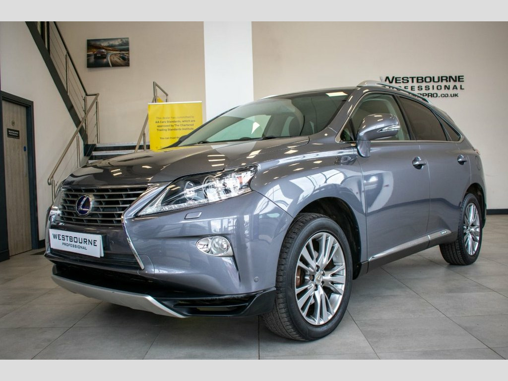 2014 '64' Lexus RX450h Luxury, finished in Mercury Grey with Black Leather interior. Equipped with an excellent level of factory specification including Heated Electric Front Seats with Drivers Memory Function, Satellite Navigation, Front & Rear Parking Sensors, Rear View Camera, Bluetooth Connectivity, DAB Radio, Power Tailgate, Automatic Xenon Headlights, Cruise Control, Leather Multifunction Steering Wheel, Automatic Dual Zone Climate Control, Heated Power Folding Mirrors, Keyless Start, Rear Privacy Glass, 19-inch Alloy Wheels and more. A superb example supplied with full and comprehensive Lexus service history carried out at 6922, 12804, 18142, 22799, 26256, 30877, 33560, 37064 and 40900 miles. Smooth Perforated Leather - Black, Mercury Grey, 19in Alloy Wheels - 15 Spoke - Darkened, ABS - Anti-Lock Braking System, Airbags - Curtain Shield, Airbags - Driver 2-Stage, Airbags - Front Knee, Airbags - Front Passenger Cut Off Switch, Airbags - Passenger 2-Stage, Airbags - Rear Passenger Side, Airbags - Thorax Abdomen Pelvis - TAP, Anti Theft System Alarm, Armrest - Front, Armrest - Rear, Audio System with Speakers x12, Auto Dimming Rear View Mirror, BAS - Brake Assist System, Bluetooth Connectivity, Boot - Power, Bumper Protection Film, Clean Air Filter with Pollen Removal Mod, Climate Control - Dual Zone with Pollen , Cruise Control, DAB Radio, DVD Player, Daytime Running Lights - LED,