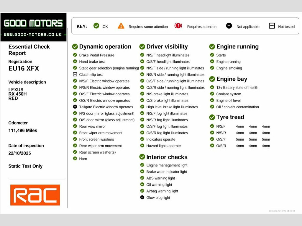 +++ YOU CAN BUY ANY CAR WITH A PART PAYMENT OF JUST £500 THE CAR MUST BE COLLECTED/PAID IN FULL WITHIN 7 DAYS +++  +++SAME DAY NATIONWIDE DELIVERY AVAILABLE+++  +++OVER 150 VEHICLES IN STOCK+++WWW.GOOD-MOTORS.CO.UK+++  +++FINANCE AVAILABLE+++HERE WE HAVE ANOTHER CAREFULLY SELECTED PART EXCHANGE VEHICLE, A VERY NICE EXAMPLE, COMES WITH WARRANTY, FULL MAIN DEALER SERVICE HISTORY, COMES WITH MOT TILL OCTOBER 2026, THE VEHICLE IS IN GOOD CONDITION BOTH INSIDE AND OUT. NON-SMOKER OR PET OWNER CAR, SUPERB SPEC INCLUDING: PANORAMIC SUNROOF FULL MAP SAT NAV, FULL LEATHER INTERIOR, HEATED FRONT SEATS, ELECTRIC FRONT SEATS, COLOUR TOUCH SCREEN DISPLAY, DAB RADIO, BLUETOOTH HANDS FREE, AUDIO STREAMING, USB AND AUXILIARY INPUT SOCKET, DUAL CLIMATE CONTROL. KEY LESS ENTRY, KEY LESS START, CRUISE CONTROL, SPEED LIMITER, DAY TIME RUNNING LIGHTS. REAR LED LIGHTS. AUTO LIGHTS. AUTO WIPERS. ELECTRIC WINDOWS, ELECTRIC POWER FOLDING MIRRORS, ELECTRIC POWER FOLDING TAILGATE. CENTRAL LOCKING, AIR CONDITIONING, PARKING SENSORS, REVERSE CAMERA, ALL AROUND CAMERA VIEW, TYRE PRESSURE MONITORING SYSTEM. ISOFIX & CHILD LOCKS. MULTI FUNCTION STEERING WHEEL CONTROLS. PRIVACY GLASS. ALLOYS, SUPPLIED WITH 2 REMOTE KEYS.   35 POINT HEALTH CHECK WITH 20 MILE TEST DRIVE, HPI CLEAR WITH AND VOSA MILEAGE REPORT, EXTENDED RAC WARRANTIES WITH BREAKDOWN COVER AVAILABLE, ALL BANK TRANSFERS WELCOME, VIEW OVER 150 SIMILAR CARS ON OUR WEBSITE +++WWW.GOOD-MOTORS.CO.UK+++ EVERY EFFORT HAS BEEN MADE TO ENSURE TH 2 Map Pockets in the Rear, 20in Alloy - Velvet Black Inserts, 2x Sun Visors with Vanity Mirror and Lam, 2x USB Sockets, 3 x 12V Power Outlet Sockets, 3-Eye Shaped LED Headlights with Active , 360 Panoramic View Monitor, 4-Way Electrical Lumbar Adjustment, 4x Tie Down Hooks in Boot, 5 Driving Modes - Normal - EV - Eco - Sp, 60-40 Split Folding Rear Seat with 40-20, ABS - Anti-Lock Braking System, ACC - Adaptive Cruise Control, AUX Socket with VTR Compatibility, Airbags - Driver Knee, Airbags - Front Passenger Cut Off Switch, Airbags - Passenger Cushion, Airbags - Rear Passenger Side, Analogue Lexus Clock, Anti-Theft System, Armrest - Front Centre with Storage, Armrest - Rear with Storage, Aut