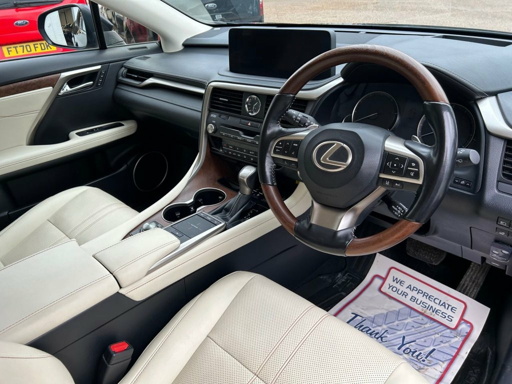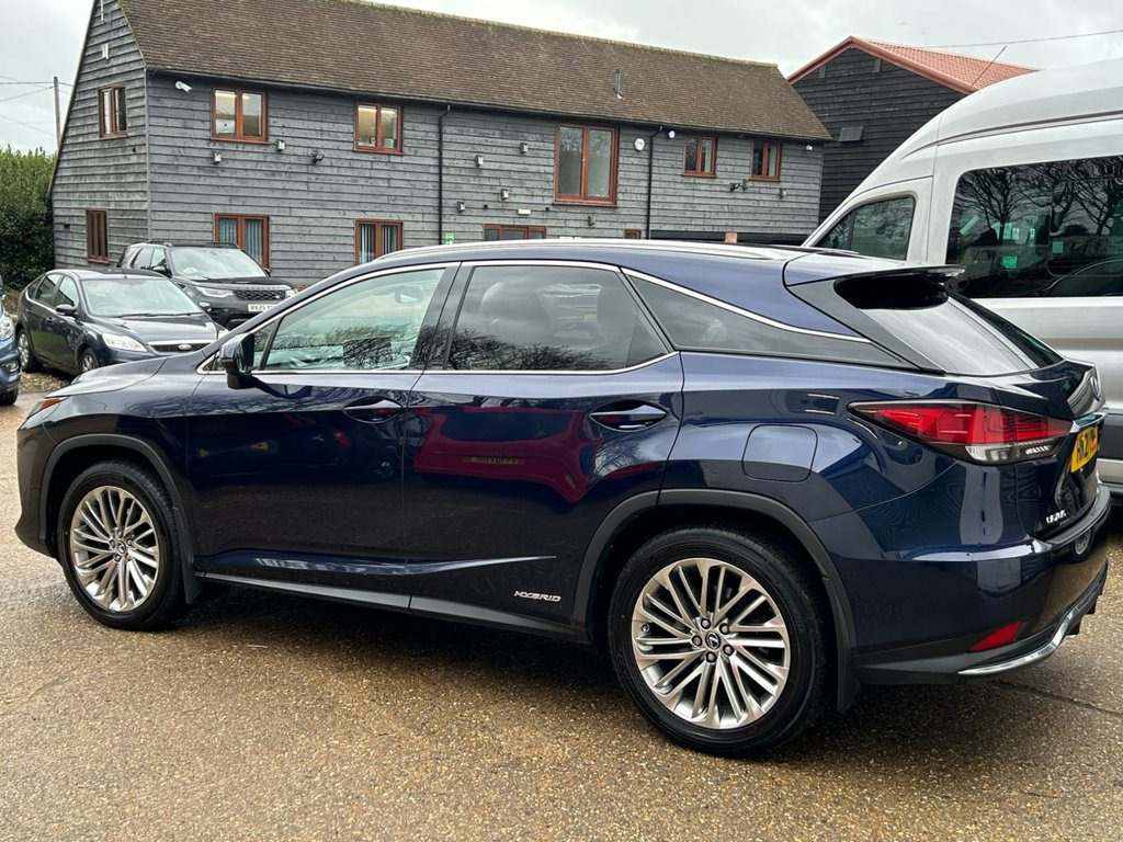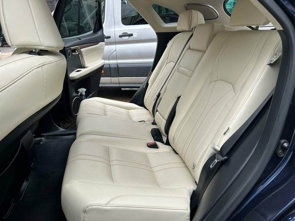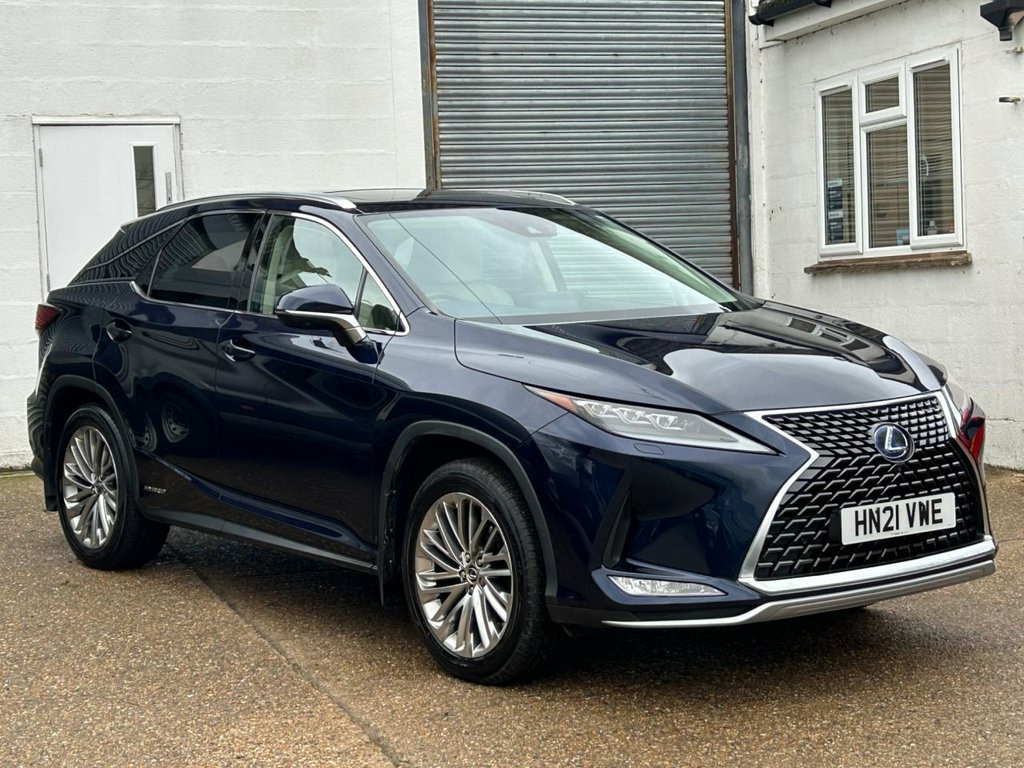 Autotrader award winners for customer experience 2025 we offer low deposit flexible finance plans from 9.9% APR This 2021 Lexus RX 450h Takumi is a superb example, having been cherished by just one owner since new and boasting a full Lexus service history. The comprehensive Lexus warranty is valid till 21 November 2026 or 100,000 miles whichever comes first. Under the bonnet, you'll find a powerful yet efficient 3.5 litre petrol hybrid engine paired with a smooth Four Wheel Drive system, all meeting the Euro 6 emission standards. This premium SUV also features a delightful electric sunroof, perfect for letting in natural light, and a truly immersive Mark Levinson premium surround sound system with 15 speakers to elevate every journey. The top Takumi trim level ensures a wealth of desirable features, including intelligent clearance sonar with front and rear parking sensors to aid manoeuvrability, 360 surround view camera and rear cross traffic alert. So it's almost impossible to have that little parking mishap! The unmarked semi-analine leather is of the highest quality and is unique to the Takumi. Both front and rear seats are heated, with the front seats featuring auto climate controlled ventilation and 14 way memory functions for ultimate personalised comfort. The rear seats feature electric recline and can be folded and raised at the touch of a button. Experience refined driving with the electrically adjustable, heated wooden steering wheel, complete with a Dark Brown Shimamoku Inlay, Sunroof, Deep Blue, Semi Aniline Leather - Ivory, 1-DVD, 12.3in Touchscreen Display with Remote T, 2 Map Pockets in the Rear, 2 x Fixed Shopping Bag Hooks in Boot, 2 x ISOFIX Child Rear Seat Restraints - , 20in Alloy Wheels - Takumi Grade, 2x Sun Visors with Vanity Mirror and Lam, 3 x 12V Power Outlet Sockets, 3-Eye Shaped LED Headlights with Active , 4-Way Electrical Lumbar Adjustment, 4x Tie Down Hooks in Boot, 5 Driving Modes - Normal - EV - Eco - Sp, 60-40 Split Folding Rear Seat with 40-20, ABS - Anti-Lock Braking System, AUX Socket with VTR Compatibility, Adaptive High Beam with BladeScan, Adaptive Variable Suspension - AVS, Airbags - Front Passenger Cut Off