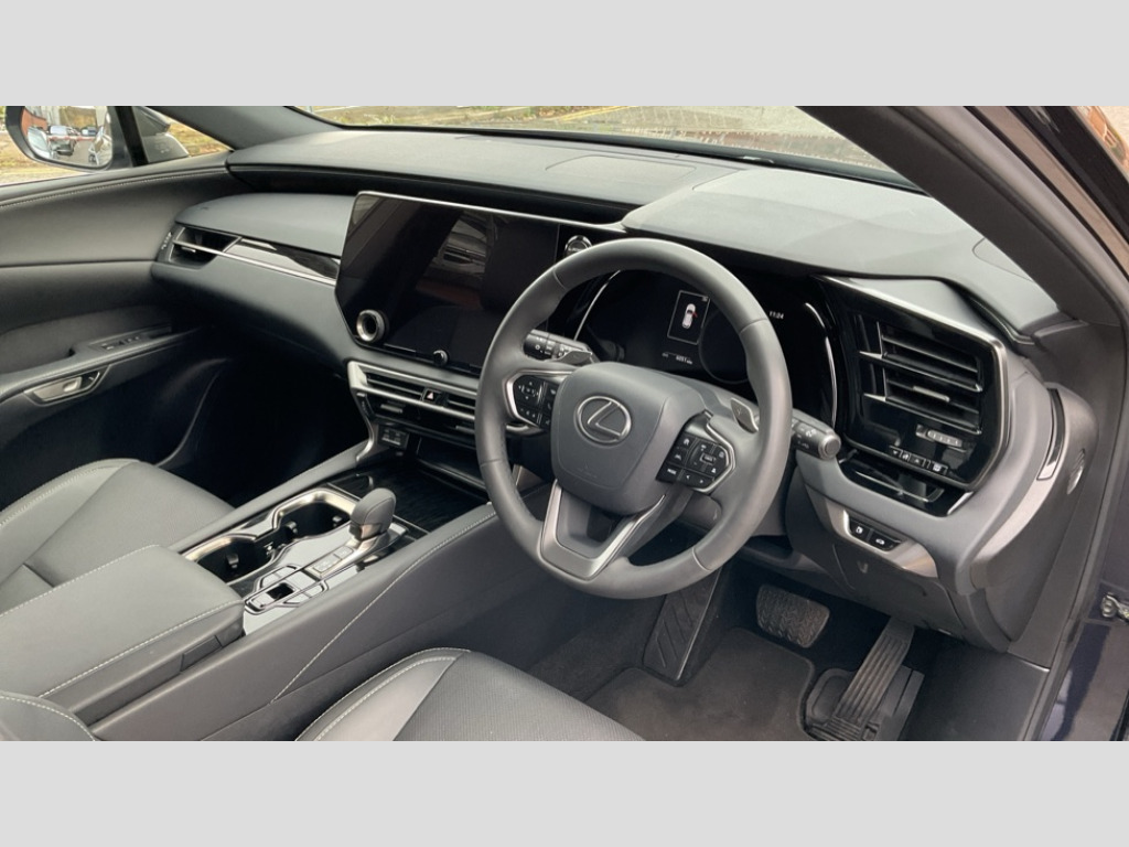 Lexus RX 450h+ 2.5 5dr E-CVT [Premium Plus Pack] Bluetooth mobile phone connectivity, BSM - Blind spot monitoring, Drive mode selector, E-call, Intelligent clearance sonar, Lexus link connected services including over the air updates, MM21 Lexus link pro - 14" HD touchscreen with embedded and cloud based navigation, voice assistant, connected services, over the air and always online, Push button starter, Rear cross traffic alert, Speed sensitive electric power assisted steering, Ultrasonic parking sensors, Wireless Apple CarPlay and wired Android Auto, Wireless Smartphone charger, 3 pin to Type 2 10A charging cable, 6.6 kW onboard charger, E-Four Automatic transmission, Type 2 AC charging, Type 2 mode 3 32A charging cable, Vehicle Stability Control (VSC), 12 speakers audio, 5 USB ports (3 front USB C and 2 rear USB C), DAB Digital radio, 3 projector bi-beam LED headlight with auto high beam, Auto dimming rear view mirror, Auto headlights, Front and rear one touch power windows with voice command, Front and rear silver window frame mouldings, Glove and towel set, Headlight washers, Heated, auto-folding door mirrors, auto dimming with rerverse tilt and turn indicators, L-shaped rear light bar, LED brake lights and rear lights with emergency brake signal, LED cornering headlights, LED daytime running lights, LED front and rear fog lights, LED Indicators, Power back door system, Privacy UV glass, rear doors and tailgate, Rain sensor windscreen wipers, Rear side wing doors, Rear wash/wipe, Roof rails, Variable front intermittent wipers, 12V accessory port centre console and luggage compartment, 2 cup holders in centre console, 2 way electric lumbar support for driver and front passenger, 2 x Sunvisors with vanity mirror and lamp, 3 rear headrests, 3 seat bench in 2nd row, 40:20:40 split folding rear seats, 8 way electrically adjustable front seats, Charge cable bag, Front aluminium scuff plates, Front headrests, Front tray in front of centre console, Glovebox, Heated front seats, Heated steering wheel, Lever type shft control, Manually adjustable rear seats, Power adjustable steering wheel, Rear resin scuff plates, Single colour ambient lighting, Single front passenger seat, Tahara leather steering wheel with paddle shifts, Tahara man-made leather upholstery, Textile carpet mats, Three zone climate control air conditioning system, Two way opening centre armrest with storage, 2 x Isofix child rear seat restraints, 3 point ELR front and rear seatbelts with pretensioners, ABS, Curtain shield airbags (front and rear), Driver and front passenger 2 stage airbag, Driver/front passenger side airbags, Drivers knee airbag, E-Latch with safe exit assist, EBD + Brake Assist, Electronic parking brake, Electronically controlled braking, Front and rear left/right force limiters and tension reducers, Front and rear left/right seatbelt reminders, Front centre airbag, Hill assist control, Lexus safety system+ 3 - dynamic radar cruise control, pre collision system day and night, lane tracing assist, road sign, Manual child lock in rear doors, Passenger airbag cut-off device, Traction control, Tyre pressure warning, 2 x remote key fobs, Customisable auto door lock, Locking wheel nuts, Motion sensor key, Smart keyless entry, Thatcham category 1 alarm + immobiliser, VIN etching, Black Inlay