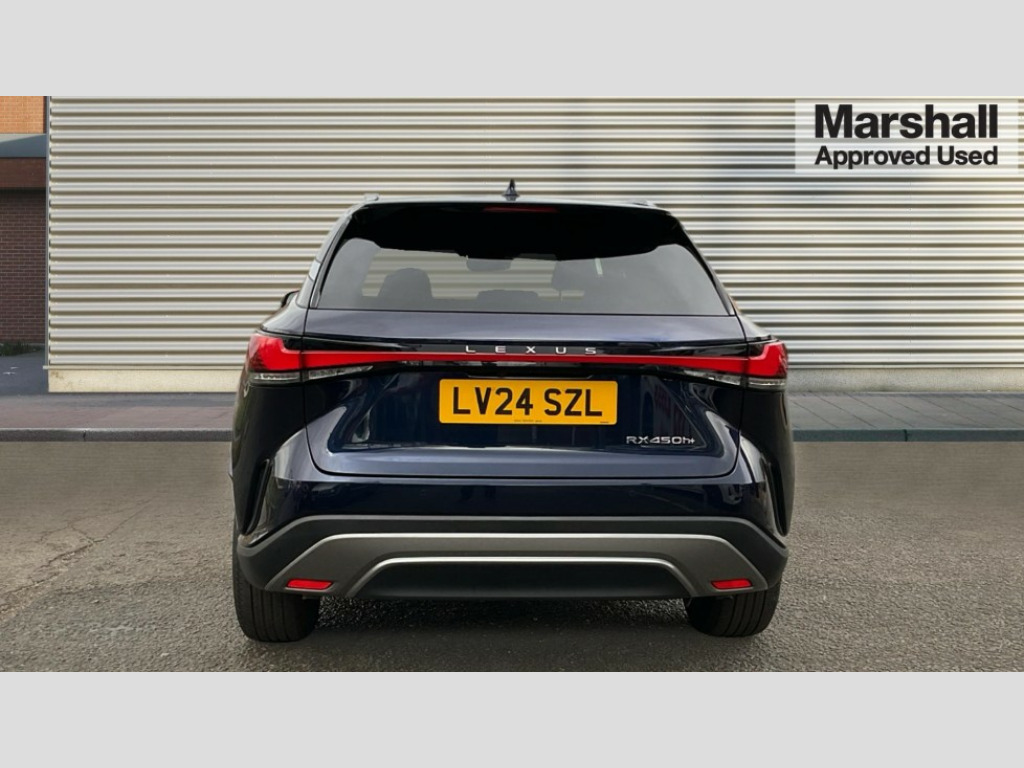 Lexus RX 450h+ 2.5 5dr E-CVT [Premium Plus Pack] 360 degree panoramic view monitor, Bluetooth mobile phone connectivity, BSM - Blind spot monitoring, Drive mode selector, Driver monitoring system, E-call, Head up Display, Intelligent clearance sonar, Lexus link connected services including over the air updates, MM21 Lexus link pro - 14" HD touchscreen with embedded and cloud based navigation, voice assistant, connected services, over the air and always online, Push button starter, Rear cross traffic alert, Speed sensitive electric power assisted steering, Ultrasonic parking sensors, Wireless Apple CarPlay and wired Android Auto, Wireless Smartphone charger, 3 pin to Type 2 10A charging cable, 6.6 kW onboard charger, E-Four Automatic transmission, Type 2 AC charging, Type 2 mode 3 32A charging cable, Vehicle Stability Control (VSC), 12 speakers audio, 5 USB ports (3 front USB C and 2 rear USB C), DAB Digital radio, 3 projector bi-beam LED headlight with auto high beam, Auto dimming rear view mirror, Auto headlights, Front and rear one touch power windows with voice command, Front and rear silver window frame mouldings, Glove and towel set, Headlight washers, Heated, auto-folding door mirrors, auto dimming with rerverse tilt, turn indicators and panoramic view sensors, L-shaped rear light bar, LED brake lights and rear lights with emergency brake signal, LED cornering headlights, LED daytime running lights, LED front and rear fog lights, LED Indicators, Power back door with kick sensor, Privacy UV glass, rear doors and tailgate, Rain sensor windscreen wipers, Rear side wing doors, Rear wash/wipe, Roof rails, Variable front intermittent wipers, 12V accessory port centre console and luggage compartment, 2 cup holders in centre console, 2 way electric lumbar support for driver and front passenger, 2 x Sunvisors with vanity mirror and lamp, 3 rear headrests, 3 seat bench in 2nd row, 40:20:40 split folding rear seats, 64 colour LED ambient interior illumination with 14 pre-set themed colour tones, 8 way electrically adjustable front seats, Charge cable bag, Driver seat memory function, Easy access driver seat, Easy access steering wheel, Front aluminium scuff plates, Front headrests, Front tray in front of centre console, Glovebox, Heated and ventilated front seats, Heated steering wheel, Leather steering wheel, Lever type shft control, Manually adjustable rear seats, Power adjustable steering wheel, Rear resin scuff plates, Single front passenger seat, Smooth leather upholstery, Textile carpet mats, Three zone climate control air conditioning system, Two way opening centre armrest with storage, 2 x Isofix child rear seat restraints, 3 point ELR front and rear seatbelts with pretensioners, ABS, Curtain shield airbags (front and rear), Driver and front passenger 2 stage airbag, Driver/front passenger side airbags, Drivers knee airbag, E-Latch with safe exit assist, EBD + Brake Assist, Electronic parking brake, Electronically controlled braking, Extended lexus safety system+ 3 - lane change assist, front cross traffic assist, Front and rear left/right force limiters and tension reducers, Front and rear left/right seatbelt reminders, Front centre airbag, Hill assist control, Lexus safety system+ 3 - dynamic radar cruise control, pre collision system day and night, lane tracing assist, road sign, Manual child lock in rear doors, Passenger airbag cut-off device, Traction control, Tyre pressure warning, 2 x remote key fobs, Customisable auto door lock, Locking wheel nuts, Motion sensor key, Smart keyless entry, Thatcham category 1 alarm + immobiliser, VIN etching, Black Inlay, 21" Alloy wheels