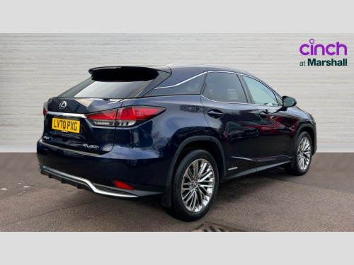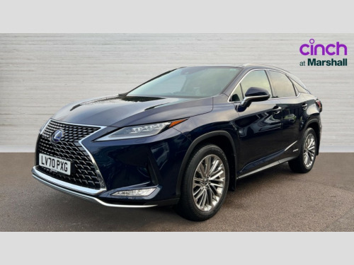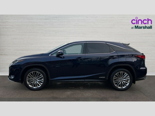 Lexus RX 450h 3.5 Takumi 5dr CVT 12.3" Touchscreen display and remote touch interface, 360 degree panoramic view monitor, 5 Driving modes EV/Normal/Eco/Sport/Sport+, Analogue clock with GPS function, Apple car play/Android Auto, Bluetooth mobile phone connectivity, BSM - Blind spot monitoring, Electric power steering, Front and rear parking sensors with intelligent clearance sonar, Hands free power boot lid operation with kick sensor, Head up Display, Lane change flasher function, Lexus link connected services with available optional wifi, Lexus Premium Navigation with full European map capability, street view and connected services, Multi-information display 4-inch TFT, Push button starter, Reversing camera with back guide lines, Wireless Smartphone charger, Adaptive variable suspension, Vehicle Dynamics Integrated Management (VDIM), Vehicle Stability Control (VSC), AUX socket with VTR compatibility, DAB Digital radio, DVD, Front and rear USB ports, Mark Levinson sound system with 15 speakers, 3 eye LED headlights with adaptive high beam system with bladescan, Auto dimming rear view mirror, Front and rear electric windows, Headlight washers, Heated, auto-folding door mirrors, auto dimming with rerverse tilt and memory, LED brake lights and rear lights with emergency brake signal, LED cornering headlights, LED daytime running lights, LED front and rear sequential indicators, LED front fog lights, Privacy glass, rear doors and tailgate, Puddle lights, Rain sensor windscreen wipers, Roof rails, 10 way electric power front seats, 2 map pockets in the rear, 2 way manually adjustable front headrests, 2 way manually adjustable rear headrests, 2 x fixed shopping bag hooks in boot, 2 x Sunvisors with vanity mirror and lamp, 3 x 12V power sockets, 4 way electric lumbar support for driver and front passenger, 4 x tie down hooks in the boot, 60/40 split folding rear seat with 40/20/40 folding ability, Card holder installed in driver and passengers sun visors, Centre and rear armrest with 2 cupholders, Centre armrest with storage box, Climate concierge, Driver and passenger seat memory, Driver's seat easy access auto retraction function, Dual zone climate control air conditioning system with S flow and Nanoe technology, Electric folding rear seats, Electrically adjustable steering column, Electrically adjustable wooden and leather steering wheel with paddle shifts and auto retraction function, Glasses holder in roof lighting panel, Heated front seats, Heated rear seats, Heated steering wheel, Isofix standard child seat restraint mounting, Leather gear lever, LED aluminium scuff plates, LED interior illumination, Rear armrest with storage, Rear door sunshades, Self charging hybrid, Semi-aniline leather upholstery, Sliding/reclining rear seats, Small compartment to right of steering wheel, Textile carpet mats, Unique LED illumination instrumnet panel, Ventilated front seats, 3 point ELR front and rear seatbelts with pretensioners, ABS, Curtain airbags, Driver and front passenger 2 stage airbag, Driver/front passenger side airbags, Drivers knee airbag, EBD + Brake Assist, Electronic parking brake, Electronically controlled braking, Front passenger seat cushion airbag, Hill start assist, Lexus safety system + includes dynamic radar cruise control, pre collision system day and night, lane tracing assist, road sign, adaptive high beam, Passenger airbag cut-off device, RCTB - Rear cross traffic auto brake, Rear passenger side airbags, Traction control, Tyre pressure warning, WIL whiplash protection front seats, Anti theft system with alarm, intrusion sensor, tilt sensor, glass breakage sensor and engine immobiliser, Locking wheel nuts, Security window etching, Smart card key, Smart keyless entry, Two motion door lock with double lock, 20" Takumi alloy wheels, Temporary spare wheel