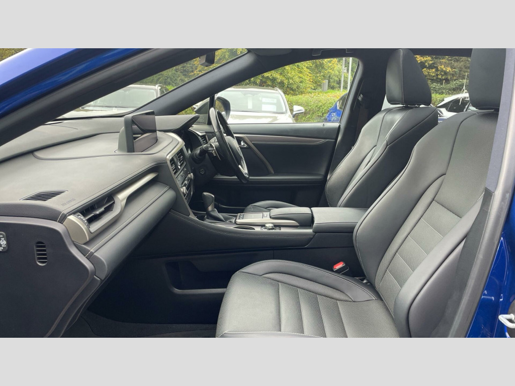 Experience a refined drive with the Lexus Safety System Plus, featuring adaptive cruise control for relaxed journeys, and stay connected with seamless Bluetooth mobile phone connectivity. The 12 speaker Pioneer audio system provides an immersive sound experience, complementing the spacious interior and generous boot space. With an impressive 0-62mph acceleration time of just 7.7 seconds, this RX 450h F Sport offers a compelling blend of performance and efficiency, further enhanced by its favourable low insurance group rating, making it a standout choice in its class. Takumi Pack, Panoramic Roof, 1-DVD, 12-Speaker Pioneer Audio, 12.3in Touchscreen Display with Remote Touch Interface, 2 Map Pockets in the Rear, 2 x Fixed Shopping Bag Hooks in Boot, 2 x ISOFIX Child Rear Seat Restraints - On Second Row, 2-Way Electrical Lumbar Adjustment, 20in Alloy Wheels - F Sport Design, 2x Sun Visors with Vanity Mirror and Lamp, 3 x 12V Power Outlet Sockets, 3-Eye Shaped LED Headlights with Active High Beam System with BladeScan, 4x Tie Down Hooks in Boot, 5 Driving Modes - Normal - EV - Eco - Sport and Sport+, 60-40 Split Folding Rear Seat with 40-20-40 Folding Ability, ABS - Anti-Lock Braking System, ASC - Active Sound Control, AUX Socket with VTR Compatibility, Adaptive High Beam with BladeScan, Adaptive Variable Suspension - AVS, Airbags - Front Passenger Cut Off Switch, Airbags - Rear Passenger Side, Analogue Lexus Clock with GPS, Anti Theft System - Alarm - Intrusion Sensor - Tilt Sensor - Glass Breakage Sensor and Engine Immobiliser, Apple CarPlay and Android Auto, Auto-Dimming Interior Rear View Mirror, BAS - Brake Assist System, Bluetooth Mobile Phone Connectivity, Card Holder Installed In the Drivers and Passengers Sun Visors, Centre Armrest with Storage, Centre and Rear Armrest with 2 Cup Holders, Climate Concierge, Curtain Shield Airbags - Front and Rear, DAB Radio, Drilled F Sport Aluminium Sports Pedals, Driver Knee Airbag, Driver and Front Passenger 2-Stage Airbags, Driver and Front Passenger Side Airbags, Driver and Passenger 8-Way Electrically Adjustable Front Seats, Drivers Seat Easy Access Auto Retraction Function, Dual Zone Climate Control Air Conditioning System with S Flow and Nanoe Technology, EBD - Electronic Brakeforce Distribution, ECB - Electronically Controlled Braking, EPB - Electronic Parking Brake, EPS - Electric Power Steering, Electrically Adjustable F SPORT Leather Steering Wheel with Paddle Shift and Auto Retraction Function, F SPORT Aluminium Scuff Plates, F SPORT Combination Meter, F SPORT Exterior Styling, F SPORT Leather Gear Lever, F Sport Steering, F-Sport Suspension Tuning, Front Passenger Cushion Airbag, Front and Rear Electric Windows, Front and Rear Performance Dampers, Front and Rear Seat Belts with Pre - Tensioners 3-Point ELR - Emergency Locking Retractor, Front and Rear USB Ports, Glasses Holder in Roof Lighting Panel, HAC - Hill Assist Control, Headlight Cleaners, Heated - Auto-dimming - Auto-folding Outside Mirrors with Memory Function - Reverse Tilt Function - Turn Indicators and Puddle Light, Heated and Ventilated Front Seats, Inlays - Aluminium, Intelligent Clearance Sonar - ICS, LED Brake Lights and Rear Lights with Emergency Brake Signal, LED Cornering Lights, LED Daytime Running Lights, LED Front Fog Lights, LED Front and Rear Sequential Indicators, LED Interior Illumination, Lane Change Flasher Function, Lexus Link Connected Services with available Optional Wifi, Lexus Premium Navigation, Lexus Safety System Plus, Locking Wheel Nuts - Thatcham Approved, Memory Function for Driver, Multi-Information Display 4-inch TFT, Powered Tailgate with Kick Sensor, Premium Pack, Privacy Glass - Rear Doors and Tailgate, Push Button Start, Rain Sensitive Windscreen Wipers, Rear Armrest with Storage, Rear Door Sun Shades, Reclining and Sliding Rear Seats, Reversing Camera with Back Guide Lines, Roof Rails, Small Compartment to Right of Steering Wheel, Smart and Easy Entry, TPWS - Tyre Pressure Warning System, TRC - Traction Control System, Temporary Spare Wheel, Textile Carpet Mats, Two Motion Door Lock - Double Lock, Unique LED Illumination - Instrument Panel, VDIM - Vehicle Dynamics Integrated Management, VSC+ Vehicle Stability Control, WIL - Whiplash Injury Lessening Front Seats, Window Etching, Wireless Smartphone Charger