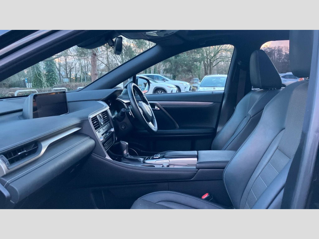 This 2019 Lexus RX 450h F Sport is a Lexus manufacturer approved vehicle, boasting a full dealership service history with its last service completed in January 2026 at 50,025 miles. This impressive four wheel drive SUV is powered by a 3.5 litre petrol hybrid engine, meeting Euro 6 emission standards. Inside, you'll find the F Sport trim offering a wealth of technology and safety features, including the Tech and Safety Pack with Blind Spot Assistance and a Head Up Display, alongside an opening panoramic sunroof. Comfort is enhanced with a memory function for the driver's seat and a heated steering wheel as part of the Premium Pack, while the Lexus Safety System Plus includes adaptive cruise control.