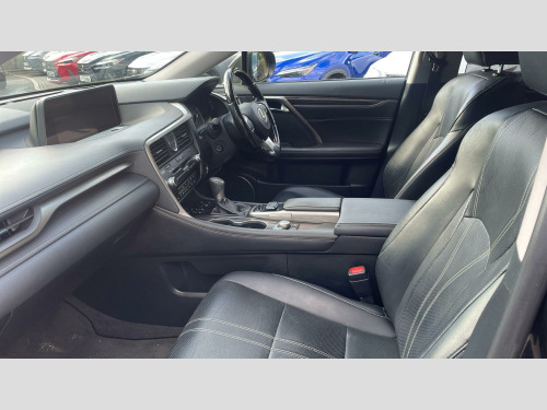 The RX 450h Premier stands out with its remarkable acceleration, achieving 0-62mph in just 7.7 seconds, demonstrating its dynamic performance. Its low insurance group rating further enhances its appeal, suggesting lower running costs compared to similar vehicles. These highlights collectively indicate a vehicle that offers a superior blend of efficiency, advanced technology, and driving pleasure, making it a distinguished choice in its class. Sunroof, Semi Aniline Leather - Black, 2 Map Pockets in the Rear, 20in Alloy - Velvet Black Inserts, 2x Sun Visors with Vanity Mirror and Lamp, 2x USB Sockets, 3 x 12V Power Outlet Sockets, 3-Eye Shaped LED Headlights with Active High Beam System, 360 Panoramic View Monitor, 4-Way Electrical Lumbar Adjustment, 4x Tie Down Hooks in Boot, 5 Driving Modes - Normal - EV - Eco - Sport and Sport+, 60-40 Split Folding Rear Seat with 40-20-40 Folding Ability - Manual Remote Release, ABS - Anti-Lock Braking System, ACC - Adaptive Cruise Control, AUX Socket with VTR Compatibility, Airbags - Driver Knee, Airbags - Front Passenger Cut Off Switch, Airbags - Passenger Cushion, Airbags - Rear Passenger Side, Analogue Lexus Clock, Anti-Theft System, Armrest - Front Centre with Storage, Armrest - Rear with Storage, Auto Dimming Rear View Mirror, Autonomous Emergency Braking, BAS - Brake Assist System, BSM - Blind Spot Monitor System with RCTA - Rear Cross Traffic Alert, Bluetooth Connectivity, Card Holder Installed In the Drivers and Passengers Sun Visors, Card Key - In Addition to Standard Keys, Centre and Rear Armrest with 2 Cup Holders, Climate Concierge, Colour Head Up Display, Curtain Shield Airbags - Front and Rear, DAB Radio, Daytime Running Lights - LED, Driver and Front Passenger 2-Stage Airbags, Driver and Front Passenger Side Airbags, Driver and Passenger 10-Way Electrically Adjustable Front Seats, Dual Zone Climate Control Air Conditioning System with S Flow and Nanoe Technology, EBD - Electronic Brakeforce Distribution, ECB - Electronically Controlled Braking, EPB - Electronic Parking Brake, Electric Windows - Front and Rear, Electrically Adjustable Heated Wooden Steering Wheel, Front Seat Belts with Pre-Tensioners - 3 Point ELR - Emergency Locking Retractor, Glasses Holder in Roof Lighting Panel, HAC - Hill Assist Control, Headlight Cleaners, Heated - Auto-dimming - Auto-folding Outside Mirrors with Memory Function - Reverse Tilt Function - Turn Indicators and Puddle Light, ISOFIX Child Restraint System - Rear x2, Intelligent Parking Assist Sensors - 2x Front and 4x Rear, LED Aluminium Scuff Plates, LED Brake Lights and Rear Lights with Emergency Brake Signal, LED Cornering Lights, LED Front Fog Lights, LED Front and Rear Sequential Indicators, LED Interior Illumination, Lane Change Flasher Function, Laser Cut Dark Wood with Aluminium Inlay, Leather Gearlever, Lexus Premium Navigation, Lexus Safety System Plus, Locking Wheel Nuts, Mark Levinson Audio System, Memory Function for Driver and Passenger, Multi-Information Display 4-inch TFT, Panoramic Roof, Power Steering - Electric, Powered Tailgate with Kick Sensor, Privacy Glass, Push Start Button, Rain Sensitive Windscreen Wipers, Rear Door Sun Shades, Reclining and Sliding Rear Seats, Reversing Camera, Roof Rails, Seats - Front Heated and Ventilated, Shopping Bag Hooks x2, Small Compartment to Right of Steering Wheel, Smart and Easy Entry, Smartphone Wireless Charger, Suspension - AVS-Adaptive Variable Suspension, TPWS - Tyre Pressure Warning System, TRC - Traction Control System, Temporary Spare Wheel, Textile Carpet Mats, Two Motion Door Lock - Double Lock, Unique LED Illumination - Instrument Panel, VDIM - Vehicle Dynamics Integrated Management, VSC - Vehicle Stability Control, WIL - Whiplash Injury Lessening Front Seats, Window Etching