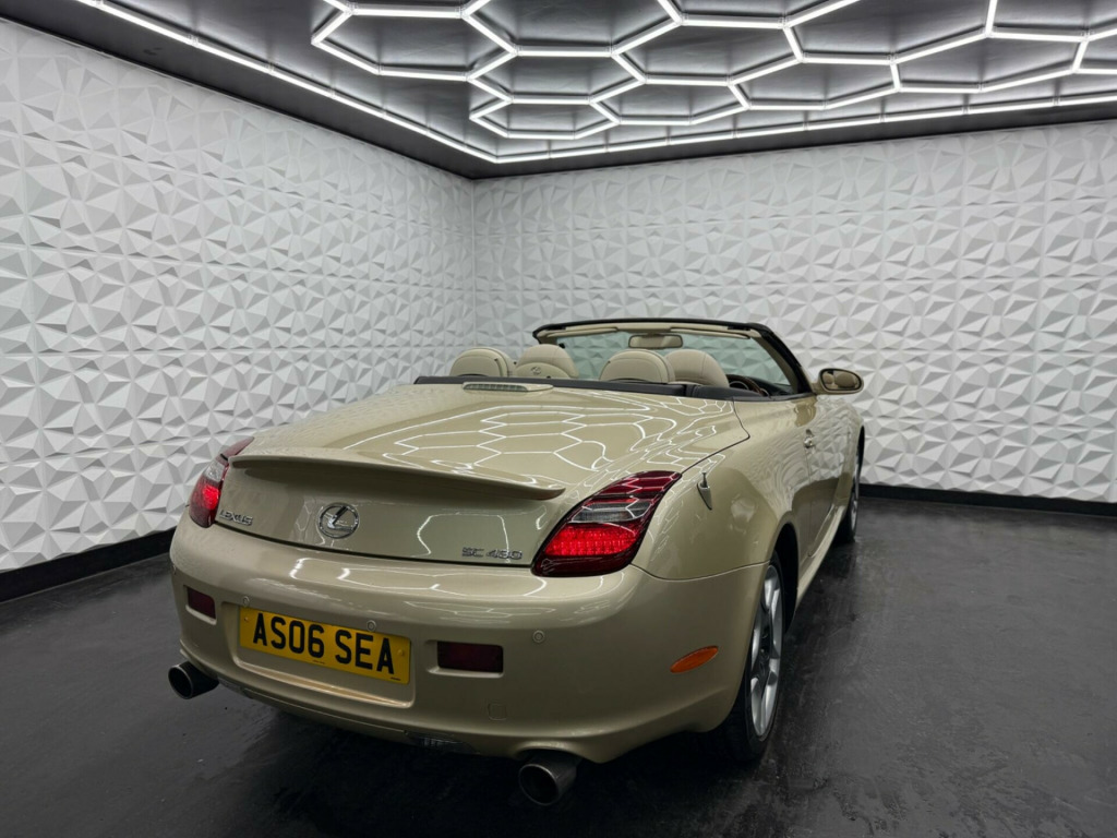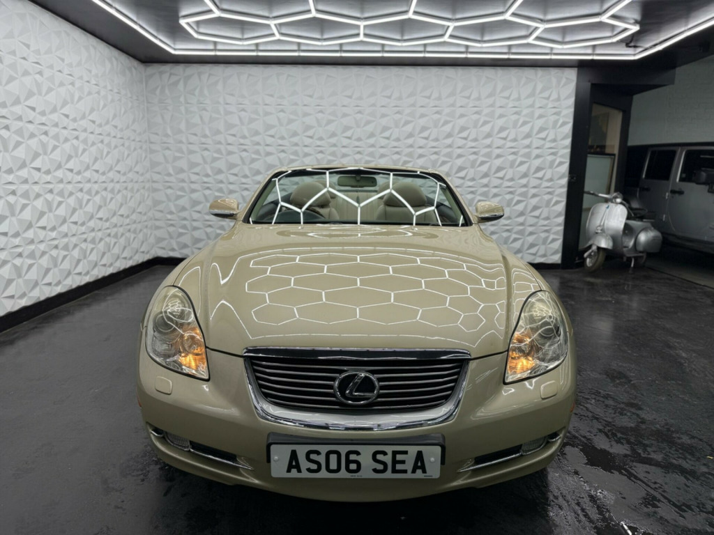 WE ARE PROUD TO OFFER THIS LOVELY VERY RARE LEXUS SC430 FINISHED IN METALLIC GOLD. COMES WITH A CONTRASTING FULL BEIGE LEATHER INTERIOR. THIS VEHICLE WILL COME WITH A FRESH MOT AND A FRESH SERVICE READY FOR THE NEW OWNER. COMES WITH A FULL SERVICE HISTORY FULLY UP TO DATE. COMES WITH A FOLDER FULL OF INVOICES. COMES WITH 2 KEYS. THIS VEHICLE COMES WITH A HUGE AMOUNT OF SPEC. THIS VEHICLE REALLY NEEDS TO BE SEEN TO BE APPRECIATED. HERE AT E.S.A AUTOMOTIVE LTD WE OFFER AS STANDARD A 12 MONTHS AA BREAKDOWN COVER, 5 DAY DRIVEAWAY INSURANCE & A COMPREHENSIVE 3 MONTHS WARRANTY ON ALL VEHICLES. RESERVE ANY VEHICLE WITH A £99 REFUNDABLE DEPOSIT. WE HAVE A HUGE PANEL OF LENDERS FOR GOOD&BAD FINANCE SO WHY NOT CALL US TODAY. WE ARE COMMITED TO THE AA CARS STANDARDS & ALSO TRADING STANDARDS APPROVED. WE ARE THE PROUD WINNERS OF THE AUTOTRADER RETAILERS CUSTOMER CHOICE AWARD WINNER FOR 2020, ALSO THE PROUD WINNERS OF THE 2021/22 CAR DEALER OF THE YEAR (YORKSHIRE) PRESTIGE AWARD AND FINALLY WE HAVE WON THE CAR/VAN DEALER OF THE YEAR (SOUTH YORKSHIRE) 2023. WITH 100 PERCENT POSITIVE VERIFIED REVIEWS & SELECTED HIGHLY RATED BY AUTOTRADER 2019,20,21,22,23,2024 AND ON ROUTE TO BEING HIGHLY RATED FOR 2025. WE TAKE PRIDE IN NOT JUST SELLING CARS BUT AN AMAZING AFTERCARE SERVICE. CALL THE TEAM TODAY TO START YOUR CAR BUYING JOURNEY.. Adjustable Steering Column/Wheel, Air Bag Driver, Air Bag Passenger, Air Bag Side, Alarm, Alloy Wheels (18in), Anti-Lock Brakes, Armrest, Body Coloured Bumpers, Central Door Locking, Climate Control, Cruise Control, Deadlocks, Electric Windows (Front/Rear), Electronic Stability Programme, Front Fog Lights, Head Restraints, Immobiliser, In Car Entertainment (Radio/Cassette/CD Autochanger), Mirrors External (Electric Heated/Folding), Mirrors Internal, Paint Metallic, Power-Assisted Steering, Satellite Navigation, Seat Height Adjustment, Seat Lumbar Support, Seats Electric (Memory Driver/Passenger), Seats Heated (Driver/Passenger), Speakers, Steering Wheel Mounted Controls (Audio), Traction Control System, Upholstery Leather, Carpet, Centre Rear Seat Belt, Gear Knob Leather, Seat - ISOFIX Anchorage Point, Spare Wheel, Steering Wheel Leather, Metallic Paint. Full service history