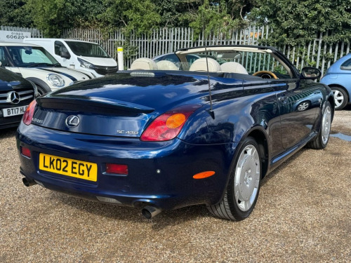 We have a lovely Lexus SC430 Auto offered in excellent condition throughout. Superb level of finish, the car oozes quality and delivers a super smooth drive. Clearly well maintained, the car comes with a plenty of service history, most recent by ourselves including a new Cambelt. The mot runs until end Nov 25. We will renew on sale. Not many of these about so if looking for this class of car, don't miss out. We took this car in part exchange against another SC430. Call for an appointment to view/test drive. Adjustable Steering Column/Wheel, Air Bag Driver, Air Bag Passenger, Air Bag Side, Air-Conditioning, Alarm, Alloy Wheels (18in), Anti-Lock Brakes, Body Coloured Bumpers, Central Door Locking, Climate Control, Cruise Control, Deadlocks, Electric Windows (Front/Rear), Head Restraints, Immobiliser, In Car Entertainment (Radio/Cassette/CD , Mirrors External (Electric Heated/Foldin, Power-Assisted Steering, Satellite Navigation, Seat Lumbar Support, Seats Electric (Memory Driver/Passenger), Seats Heated (Driver/Passenger), Sound Processor, Speakers, Traction Control System, Upholstery Leather