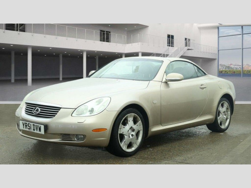 This 2001 Lexus SC 430 Coupe Coupe is currently available for £4,999 in Tonbridge Kent with Petrol engine and Automatic gearbox. For more information or to arrange a viewing, click here to send us an email using form below.