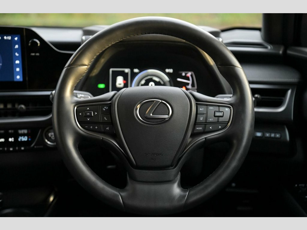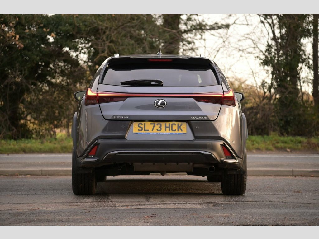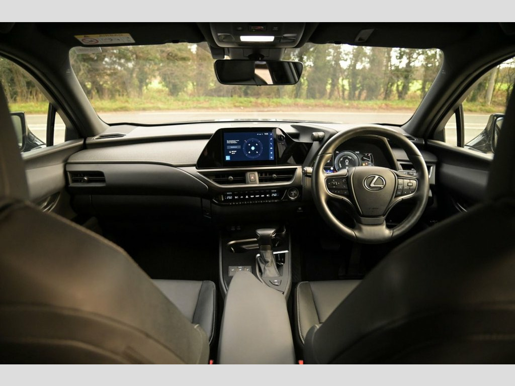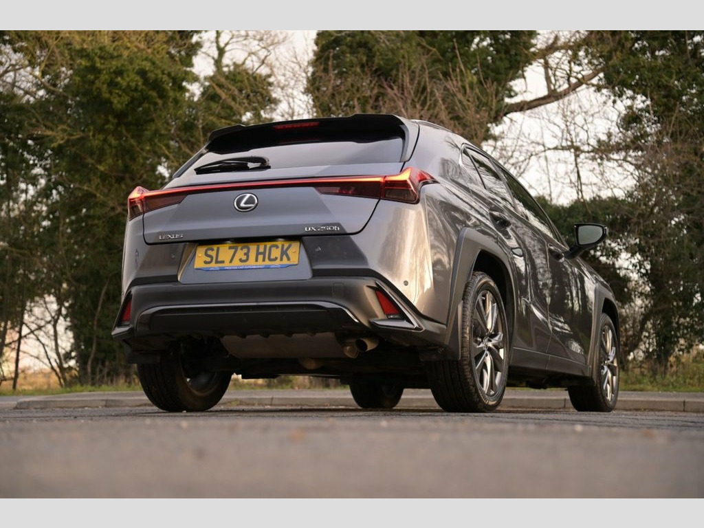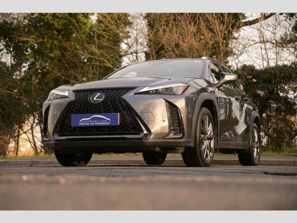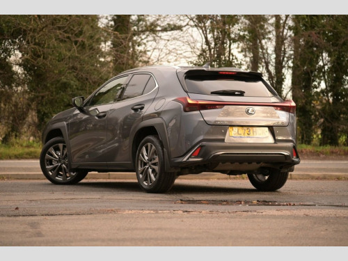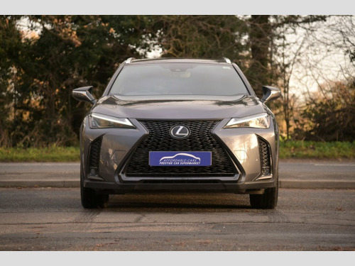 Prestige Car Supermarket in York presents this superb 2023 Lexus UX 2.0 250h F Sport Design Hybrid finished in Sonic Grey with Black Tahara upholstery and distinctive F Sport exterior styling. It sits on 18in F Sport alloys and features Bi-LED headlights with Auto High Beam, LED fog lights, LED daytime running lights, privacy glass, black wheel arches, aluminium roof rails and headlight cleaners. Inside, the cabin offers an 8in touchscreen display, 7in TFT meter, wireless Apple CarPlay, wired Android Auto, Bluetooth, six speakers, rear vents, dual-zone climate control and LED interior lighting alongside the Japanese Washi paper instrument panel. Comfort and practicality are supported by manual front seats, 60-40 split folding rear seats, multiple USB ports, 12V sockets, under-deck storage, a rear armrest with cup holders and F Sport design touches including a heated leather steering wheel. Safety and driver assistance systems include Lexus Safety System Plus, Blind Spot Monitor with Rear Cross Traffic Alert and Auto Brake, Intelligent Clearance Sonar with front and rear parking sensors, a reversing camera, Vehicle Dynamics Integrated Management, Traction Control, Vehicle Stability Control, Hill Start Assist, Brake Assist, ABS, EBD, ECB, TPWS, Secondary Collision Brake and an extensive airbag system. Four driving modes, keyless start, auto-dimming mirror, rain-sensing wipers and heated power-fold mirrors complete this high-specification hybrid SUV. Sonic Grey, Tahara - Black, 1 AUX Port, 12V Accessory Port Centre Console and Lu, 18in Alloy Wheels - F Sport, 2 Cup Holders in Front Centre Console, 2 Front USB C and Data USB A Ports - 2 R, 2 x ISOFIX Child Rear Seat Restraints, 2 x Remote Key Fobs, 2x Folding Shopping Bag Hooks in Boot, 2x Sun Visors with Vanity Mirror and Lam, 4 Driving Modes - Normal - EV - Eco and , 4x Tie Down Hooks in Boot, 7in TFT Meter, 8in Touchscreen Display, ABS - Anti-Lock Braking System, AM-FM Radio, Acoustic Noise Reducing Front Windscreen, Adjustable Seat Belt Anchor Points, Anti Theft System - Alarm - Intrusion Se, Auto Dimming Rear View Mirror, BAS - Brake Assist System, Bi-LED Headlights with Auto High Be
