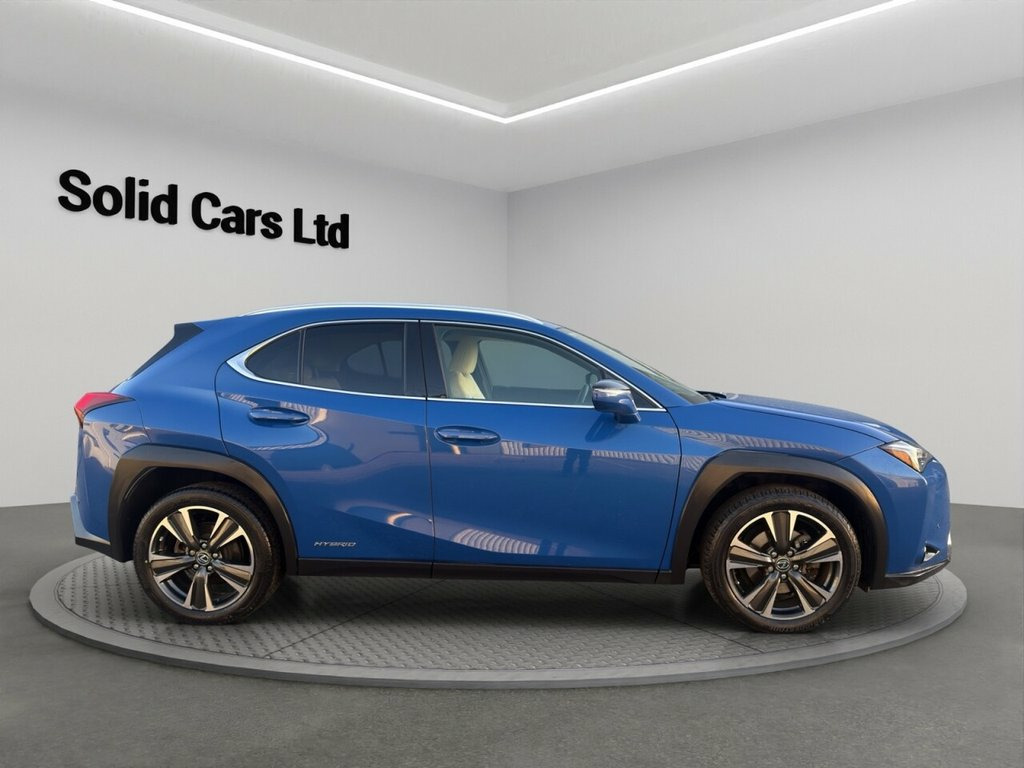 This 2020 Lexus UX 250h boasts an exceptionally low mileage of just 27050 miles, complemented by a full dealership service history and a clear vehicle history check, ensuring complete peace of mind. This Euro 6 compliant model features a 2.0L petrol hybrid engine, offering an impressive fuel economy of 53 mpg. With its MOT valid until September 2026 and a remaining 6 months warranty, this Lexus UX is presented in excellent condition. The Lexus UX 250h stands out with its economical running costs, indicated by its low insurance group and low CO2 emissions, making it an environmentally conscious choice. Its performance is also noteworthy, achieving 0-60mph in a brisk 8.5 seconds, demonstrating a good balance between efficiency and responsiveness. The last service was completed at 25864 miles, further underscoring the meticulous care this vehicle has received. Premium Pack, Lexus Driver Assist, Tech and Sound Pack, 1 AUX Port, 12V Accessory Port Centre Console and Lu, 17in Alloy Wheels, 2 Cup Holders in Front Centre Console, 2 Front USB and 2 Rear USB Charging, 2 x ISOFIX Child Rear Seat Restraints, 2 x Remote Key Fobs, 2x Folding Shopping Bag Hooks in Boot, 2x Sun Visors with Vanity Mirror and Lam, 4x Tie Down Hooks in Boot, 7in Display Screen, 7in TFT Meter, ABS - Anti-Lock Braking System, AM-FM Radio, Acoustic Noise Reducing Front Windscreen, Adjustable Seat Belt Anchor Points, Analogue Lexus Clock, Anti Theft System - Alarm - Intrusion Se, Apple CarPlay and Android Auto, BAS - Brake Assist System, Bi-LED Headlights with Auto High Beam Sy, Blue