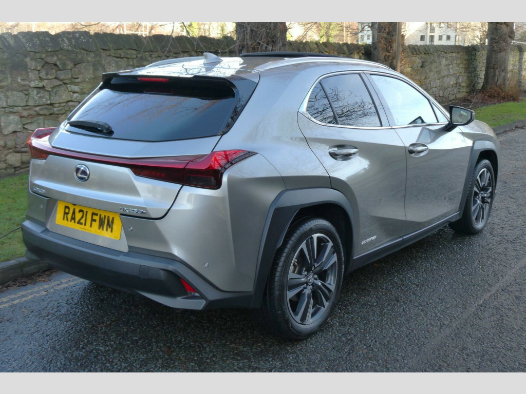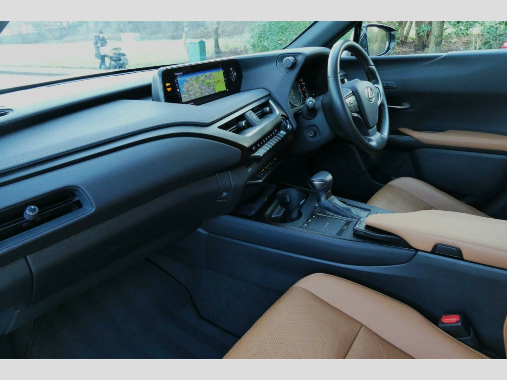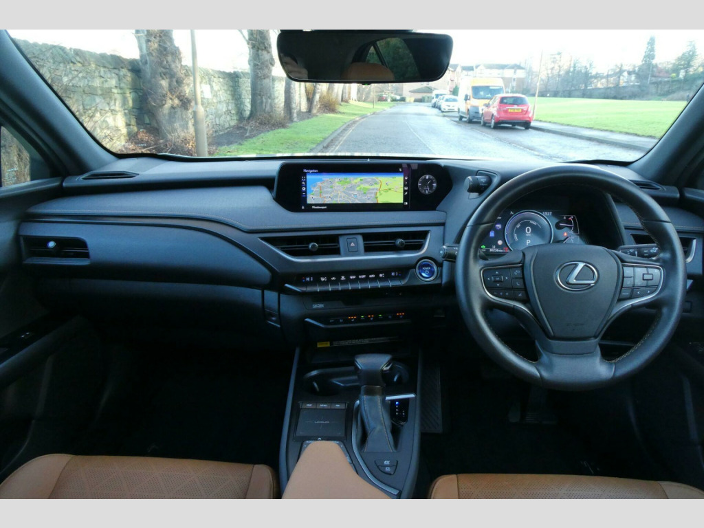 We Are Delighted To Offer This 1 Owner Flagship Model UX 250 Takumi Benefiting From A Full Lexus Service History & The Following Impressive Factory Specification. Finished In Sonic Titanium Metallic With Contrasting Ochre Leather. For Further Information Or To Arrange A Viewing Please Contact Andrew Or Ross You Will Not Be Disappointed. Supplied With original Book Packs, Fully Stamped Service Book & 2 Sets Of Keys. This 2021 Lexus UX 250h Takumi is a superb example, having been owned by just one careful keeper from new. This stylish compact SUV boasts a sophisticated 2.0 litre petrol hybrid engine, meeting Euro 6 emission standards. The Takumi trim level ensures a premium experience, enhanced by features such as intelligent parking sensors front and rear, a 360 panoramic view monitor for effortless manoeuvring, and a heated leather steering wheel for added comfort. Driving is made safer and more convenient with the Lexus Safety System Plus, which includes adaptive cruise control, and a clear Head Up Display keeps essential information in your line of sight.Experience impressive efficiency with this Lexus UX, achieving a remarkable 50 miles per gallon, a figure that highlights its advantage over many other vehicles in its class. Furthermore, its low CO2 emissions contribute to a more environmentally conscious drive. For those who appreciate performance, this hybrid SUV accelerates from 0 to 62 miles per hour in a brisk 8.5 seconds, demonstrating a pleasing blend of power and economy.. 1 AUX Port, 10.3in Display Screen, 12V Accessory Port Centre Console and Luggage Compartment, 18in Alloy Wheels, 2 Cup Holders in Front Centre Console, 2 Front USB and 2 Rear USB Charging, 2 x ISOFIX Child Rear Seat Restraints, 2 x Remote Key Fobs, 2-Way Electrical Lumbar Adjustment for Driver, 2x Folding Shopping Bag Hooks in Boot, 2x Sun Visors with Vanity Mirror and Lamp, 3 Eye LED Headlights with Two-Stage Adaptive High Beam System AHS, 360 Panoramic View Camera, 360 Panoramic View Monitor, 4x Tie Down Hooks in Boot, 7in TFT Meter, ABS - Anti-Lock Braking System, AM-FM Radio, Acoustic Noise Reducing Front Windscreen, Adjustable Seat Belt Anchor Points, Analogue Lexus Clock, Anti Theft System - Alarm - Intrusion Sensor - Tilt Sensor - Glass Breakage Sensor and Engine Immobiliser, Apple CarPlay and Android Auto, Auto Dimming Rear View Mirror, BAS - Brake Assist System, Blind Spot Monitor System with RCTA - B - Rear Cross Traffic Alert with Brake, Bluetooth Mobile Phone Connectivity, Body Adhesive - Laser Screw Welding and Laser Brazed Roof Structure, Card Holder Installed In the Drivers and Passengers Sun Visors, Centre Armrest with Storage - 4.4 Litre, Curtain Shield Airbags - Front and Rear, DAB Radio, DVD Player, Door Mirrors - Auto-Fold - Auto-Tilt on Reverse with Memory, Driver and Front Passenger 2-Stage Airbags, Driver and Front Passenger Knee Airbags, Driver and Front Passenger Side Airbags, Driver and Passenger 8-Way Electrically Adjustable Front Seats, Driver and Passenger Door Pocket with Bottle Holder, Driving Modes - Normal - EV - Eco - Sport, Dual Zone Climate Control Air Conditioning System, E-Call, EBD - Electronic Brakeforce Distribution, ECB - Electronically Controlled Braking, EPB - Electronic Parking Brake, EPS - Electric Power Steering - Speed Sensitive, Front Seat Belt with Pre-Tensioners - Force Limiter and Tention Reduction 3-Point with Active Safety Link to PCS, Front and Rear One-Touch Automatic Power Windows with Jam Protection, Glove Box - 7.2 Litres, Head Up Display, Headlight Cleaners, Heated Front Seats, Heated Leather Steering Wheel, Heated and Ventilated Front Seats, Hill Start Assist Control, Illuminated Door Handles with Puddle Light, Intelligent Parking Sensors 4 Front and 4 Rear, Japanese Washi Paper Instrument Panel, LED Cornering Lights, LED Daytime Running Lights, LED Front and Rear Fog Lights, LED Interior Illumination, Lane Change Flasher Function, Leather Gear Lever, Lexus Driver Assist, Lexus Link Connected Services, Lexus Navigation, Lexus Safety System Plus, Locking Wheel Nuts - Thatcham Approved, Map Pockets in Rear of Passenger Front Seats, Mark Levinson Premium Surround Sound System with 13 Speakers, Memory Function for Driver, Passenger Airbag Cut Off Switch, Power Adjustable Leather Steering Wheel, Powered Tailgate - Power Back Door, Premium Pro Pack, Privacy Glass - Rear Doors and Tailgate, Push Button Start, Rain Sensitive Windscreen Wipers, Rear Air Vents, Rear Armrest with 2 Cup Holders, Rear Outer Seat Belt with Pre-Tensioners Force Limiter and Tention Reduction, Remote Touch Interface, Reversing Camera with Back Guide Lines, Roof Rails - Aluminium, Seats - 60-40 Split Folding Rear, Secondary Collision Brake - SCB, Single Hidden Exhaust Pipe, Smart Keyless Entry, Speed Sensitive Auto Door Lock, Storage Tray Under Audio Panel, Sunroof, TPWS - Tyre Pressure Warning System, TRC - Traction Control System, Textile Carpet Mats, Two Motion Door Lock - Double Lock, Under Deck Storage, Under Desk Side Storage, VDIM - Vehicle Dynamics Integrated Management, VIN Etching, VSC - Vehicle Stability Control, Wireless Smartphone Charger, Finished In Sonic Titanium Metallic With Contrasting Ochre Leather, Smooth Leather - Ochre.