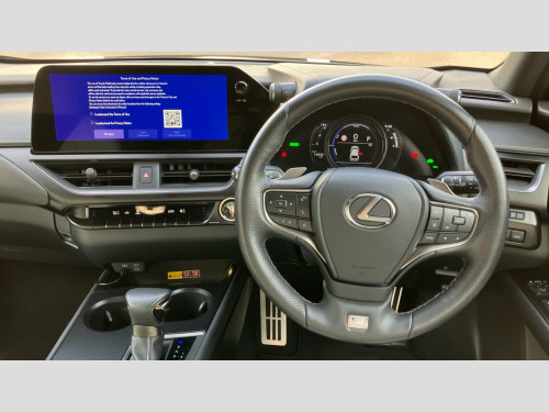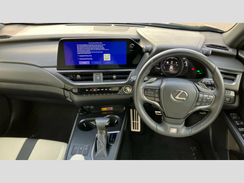 This 2023 Lexus UX 250h F Sport is a Lexus manufacturer approved vehicle with a full dealership service history, having last been serviced on 2025-05-06 at 13352 miles, and boasts exceptionally low mileage for its age at just 14530 miles. This Euro 6 compliant hybrid features a 2.0L petrol hybrid engine and comes with a 12 month warranty for your peace of mind. The F Sport trim is enhanced by the F SPORT Premium Plus Pack, and includes Bi-LED Headlights with Auto High Beam System, the comprehensive Lexus Safety System Plus with Adaptive Cruise Control, and seamless Bluetooth mobile phone connectivity, alongside Apple CarPlay and Android Auto integration.