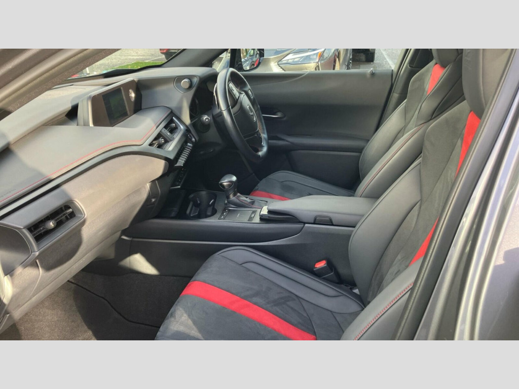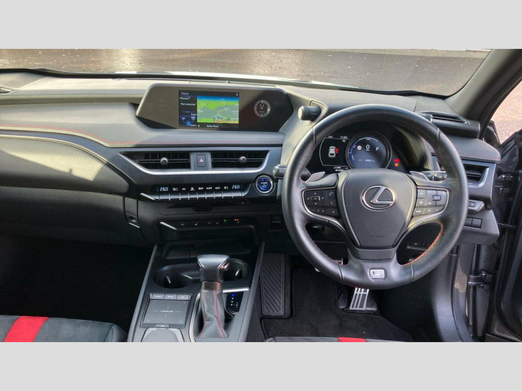 This 2021 Lexus UX 250h F Sport is a Lexus manufacturer approved vehicle with exceptionally low mileage for its age, having covered just 8280 miles. It boasts a 2.0 litre petrol hybrid engine and meets Euro 6 emission standards. This F Sport model comes with a 12 month warranty and a 12 month MOT provided on purchase, alongside partial service history due to low mileage, with the last service completed on by our centre recently at 8280 miles. Notable features include Bi LED headlights with an automatic high beam system, an F Sport heated leather steering wheel with paddle shifts, Apple CarPlay and Android Auto integration, a reversing camera with back guide lines, and parking assistance sensors both front and rear.