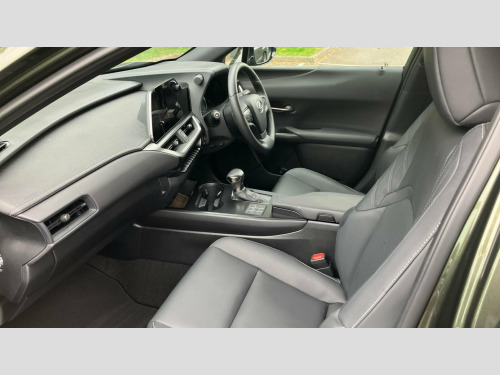 This 2023 Lexus UX 250h F Sport Design is a Lexus manufacturer approved vehicle with a full dealership service history,recently serviced by our centre and comes with up to 10 years warranty. This single owner vehicle boasts a 2.0L petrol hybrid engine, meeting Euro 6 emissions standards, and offers the convenience of Wireless Apple CarPlay and Wired Android Auto. The F Sport Design trim includes a Premium Pack with front and rear parking sensors, a rear camera, heated seats, and a heated steering wheel, alongside a dual zone climate control air conditioning system and Bluetooth mobile phone connectivity. For added safety, it features Blind Spot Monitor with Rear Cross Traffic Alert and Auto Brake.
