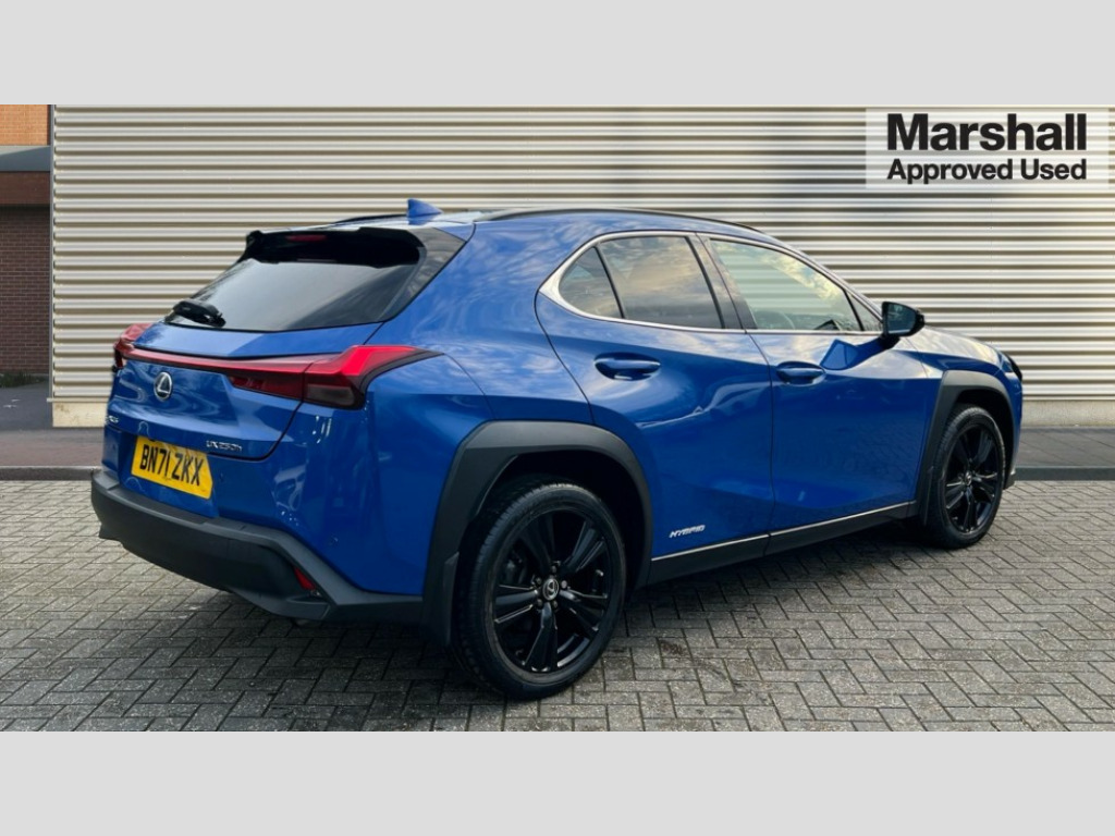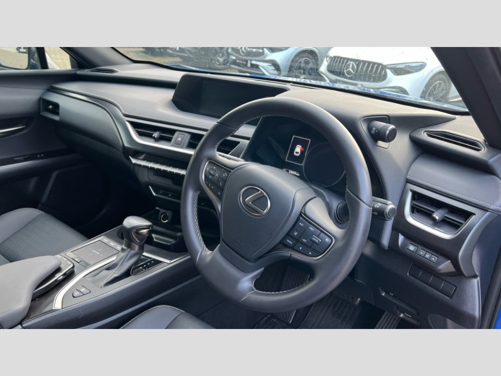 Lexus Ux 250h 2.0 5dr CVT [without Nav] 4 driving modes EV/Eco/Normal/Sport, 7" Lexus media display, 7" TFT instrument cluster, Analogue clock with GPS function, Apple car play/Android Auto, Compatible mobile phone bluetooth with audio streaming, E-call, Electric power steering (EPS) with speed sensitive features, Lane change flasher function, Lexus link connected services, Lexus safety systems + includes dynamic radar cruise control, pre collision system day and night, lane tracing assist, road sign assist, Push button start, Remote touch interface, Trip computer, Vehicle Dynamics Integrated Management (VDIM), Vehicle Stability Control (VSC), 2 front USB and 2 rear USB charging points, 6 speakers, AM/FM and DAB radio, AUX socket with VTR compatibility, CD player, Acoustic windscreen, Aero stabilising arch mouldings, Aero stabilising rear lights, Aero ventilated wheels, Bi-LED (low and high beam) headlights with Auto High Beam (AHB), Black roof drip mouldings, Black wheel arches, Body adhesive, laser screw welding and laser brazed roof structure, Body coloured bumpers, Electric adjustable/heated door mirrors, Front and rear one touch power windows, with anti-jam protection, Headlight cleaners, LED daytime running lights, LED tail lights, LED third brake light, Light green UV glass, Manual control of windscreen wipers, Rear wiper, Shark fin roof aerial, Single hidden exhaust pipe, Towing preparation, Variable front intermittent wipers, 12V accessory port centre console and luggage compartment, 2 cup holders in the front and rear centre console, 2 x folding shopping bag hooks in boot, 2 x sun visors with vanity mirror and lamp, 4 x tie down hooks in the boot, 5 headrests, 6 way driver and passenger manually adjustable front seats, 60/40 split folding rear seat, Card holder installed in driver and passengers sun visors, Centre armrest with storage, Driver and passenger door pocket, Dual zone electronic climate control + Nano-E humidity sensor, Glovebox, Illuminated entry system, Leather gear lever, Leather steering wheel, LED interior illumination, Map pockets in the rear of passenger's front seat, Premium fabric upholstery, Rear air vents with 2 USB chargers, Rear armrest with 2 cupholders, Storage tray under audio panel, Textile carpet mats, Tilt/reach adjustable steering column, Under deck storage, Under desk side storage, 2 x Isofix child rear seat restraints, 3x3 point rear seatbelts, Anti-lock braking system (ABS), BAS (Brake Assist System), Driver and front passenger 2 stage airbag, Driver and front passenger knee airbag, Driver/front passenger side airbags, EBD - Electronic brakeforce distribution, ECB (Electronically Controlled Brake System), Electric parking brake, Front adjustable seatbelt anchor points, Front and rear curtain shield airbags, Front outer seatbelt+pre-tensioners,force limiter+tension reduction: 3-point with active safety link to PCS, Hill start assist control (HAC), Passenger airbag cut-off device, Rear outer seatbelt+pre-tensioners,force limiter+tension reduction: 3-point with active safety link to PCS,Centre belt w/o pre tensioner+force limiter, Secondary Collision Brake (SCB), TRC (Traction Control), Tyre pressure warning, 2 x remote key fobs, Anti theft system : Alarm instruction sensor,glass breakage sensor and engine immobiliser, Locking wheel nuts, Remote central door locking, Speed sensitive auto door locking, Two motion door lock with double lock, VIN Window etching, 17" Alloy wheels, Tyre repair kit
