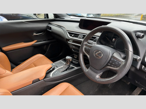 Lexus Ux 250h 2.0 Takumi 5dr CVT 10.3" display screen, 360 degree panoramic view monitor, 4 driving modes EV/Eco/Normal/Sport, 7" TFT instrument cluster, Analogue clock with GPS function, Apple car play/Android Auto, Blind spot monitoring (BSM) with Rear cross traffic alert and auto brake (RCTAB), Compatible mobile phone bluetooth with audio streaming, E-call, Electric power steering (EPS) with speed sensitive features, Front and rear parking sensor with intelligent clearance sonar, HUD - Head up Display, Lane change flasher function, Lexus link connected services, Lexus navigation system, Lexus safety systems + includes dynamic radar cruise control, pre collision system day and night, lane tracing assist, road sign assist, Push button start, Remote touch interface, Reversing camera with back guide lines, Trip computer, Wireless Smartphone charger, Vehicle Dynamics Integrated Management (VDIM), Vehicle Stability Control (VSC), 2 front USB and 2 rear USB charging points, AM/FM and DAB radio, AUX socket with VTR compatibility, DVD Player, Mark Levinson sound system with 13 speakers, subwoofer and Clari-Fi TMMusic restauration, 3 eye LED headlights with 2 stage adaptive high beam system, Acoustic windscreen, Aero stabilising arch mouldings, Aero stabilising rear lights, Aero ventilated wheels, Aluminium roof rails, Auto dimming interior rear view mirror, Body adhesive, laser screw welding and laser brazed roof structure, Electric glass sunroof, Electrically adjustable, heated, auto folding with reverse tilt and memory door mirrors, Front and rear one touch power windows, with anti-jam protection, Headlight cleaners, Illuminated door handles with puddle light, LED cornering headlights, LED daytime running lights, LED front and rear fog lights, LED tail lights, Power back door system, Privacy glass, rear doors and tailgate, Rain sensor windscreen wipers, Rear wiper, Shark fin roof aerial, Single hidden exhaust pipe, Towing preparation, 12V accessory port centre console and luggage compartment, 2 cup holders in the front and rear centre console, 2 way electrical lumbar adjustment for driver, 2 x folding shopping bag hooks in boot, 2 x sun visors with vanity mirror and lamp, 4 x tie down hooks in the boot, 5 headrests, 60/40 split folding rear seat, 8 way driver/passenger electrically adjustable front seats, Card holder installed in driver and passengers sun visors, Centre armrest with storage, Driver and passenger door pocket, Driver's seat memory, Dual zone electronic climate control + Nano-E humidity sensor, Glovebox, Heated and ventilated front seats, Heated steering wheel, Leather gear lever, Leather steering wheel, LED interior illumination, Map pockets in the rear of passenger's front seat, Power adjustable steering wheel, Rear air vents with 2 USB chargers, Rear armrest with 2 cupholders, Smooth leather upholstery, Storage tray under audio panel, Textile carpet mats, Under deck storage, Under desk side storage, 2 x Isofix child rear seat restraints, 3x3 point rear seatbelts, Anti-lock braking system (ABS), BAS (Brake Assist System), Driver and front passenger 2 stage airbag, Driver and front passenger knee airbag, Driver/front passenger side airbags, EBD - Electronic brakeforce distribution, ECB (Electronically Controlled Brake System), Electric parking brake, Front adjustable seatbelt anchor points, Front and rear curtain shield airbags, Front outer seatbelt+pre-tensioners,force limiter+tension reduction: 3-point with active safety link to PCS, Hill start assist control (HAC), Passenger airbag cut-off device, Rear outer seatbelt+pre-tensioners,force limiter+tension reduction: 3-point with active safety link to PCS,Centre belt w/o pre tensioner+force limiter, Secondary Collision Brake (SCB), TRC (Traction Control), Tyre pressure warning, 2 x remote key fobs, Anti theft system : Alarm instruction sensor,glass breakage sensor and engine immobiliser, Locking wheel nuts, Remote central door locking, Smart keyless entry, Speed sensitive auto door locking, Two motion door lock with double lock, VIN Window etching, 18" Alloy wheels with run flat tyres
